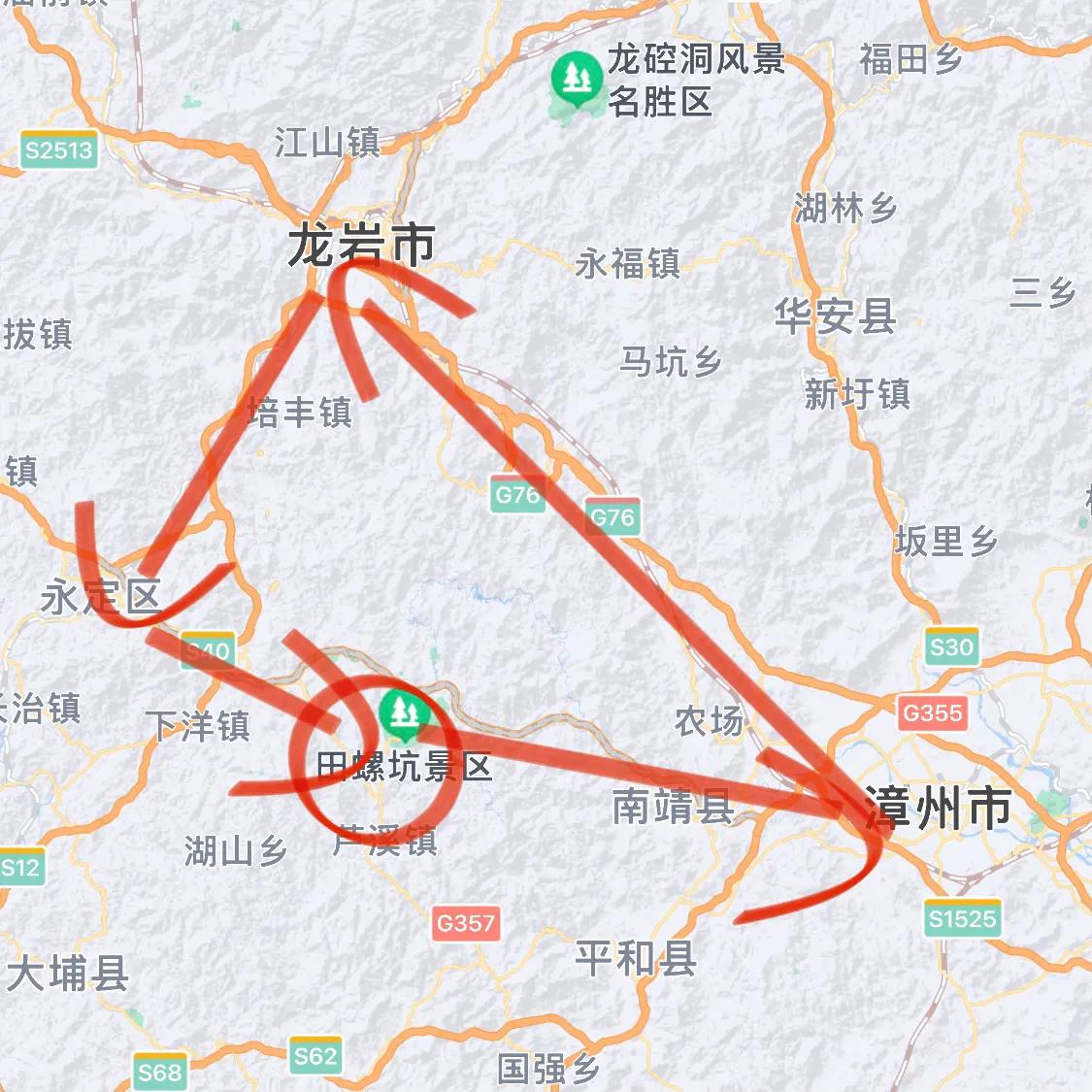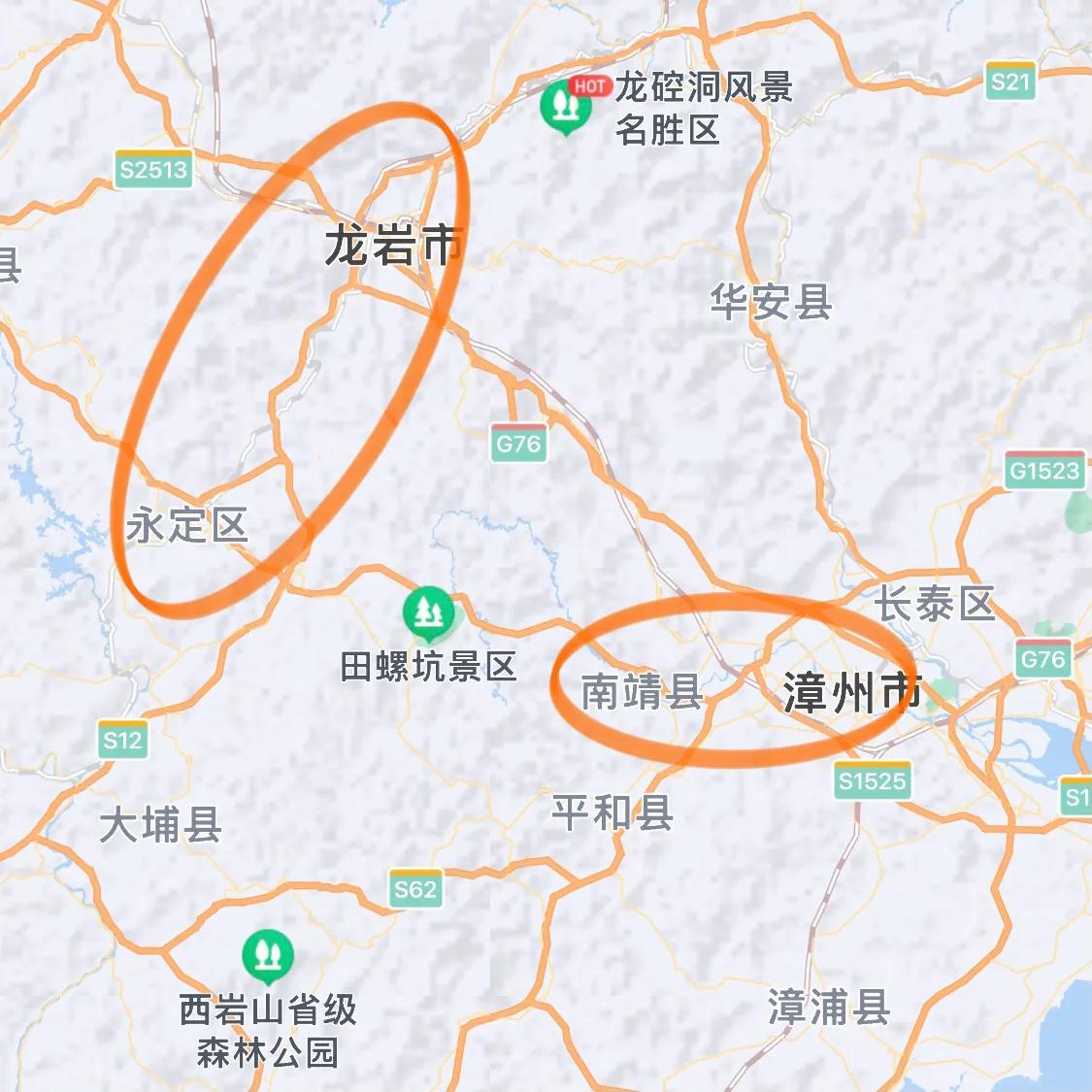 吐槽福建土楼南靖和永定之间的交通!真的是太麻烦了!而且很折腾! 虽然福建的几个土楼群是连在一块的(图1),但是南靖属于漳州,永定属于龙岩(图2),这就导致了南靖几个景区有自己的公共交通,龙岩几个景区也有自己的公共交通,但是两个区县之间的景区是互不相通的! 南靖田螺坑的塔下村到永定高北的承启楼之间距离只有8km(图3),却没有一个公共交通,游客只能打黑车,要么就是绕一大圈(图4),先去南靖县然后坐高铁到龙岩转巴士到永定再坐巴士去承启楼。 不知道是不是南靖和永定景区之间有竞争,都不希望游客去对方家的土楼,才没有通公共交通,还是有什么其他原因?大家知道吗? #福建土楼# #南靖土楼# #永定土楼#