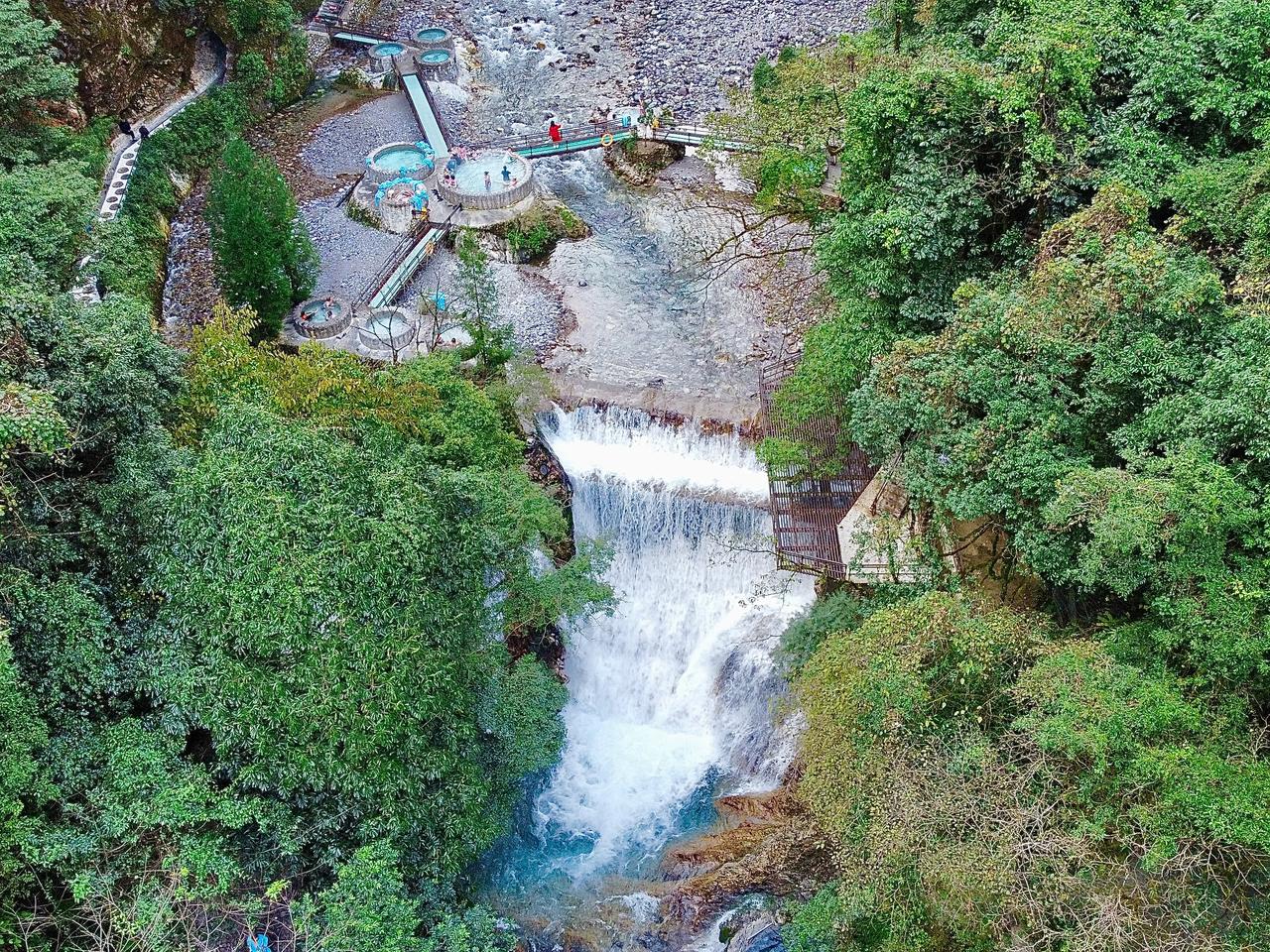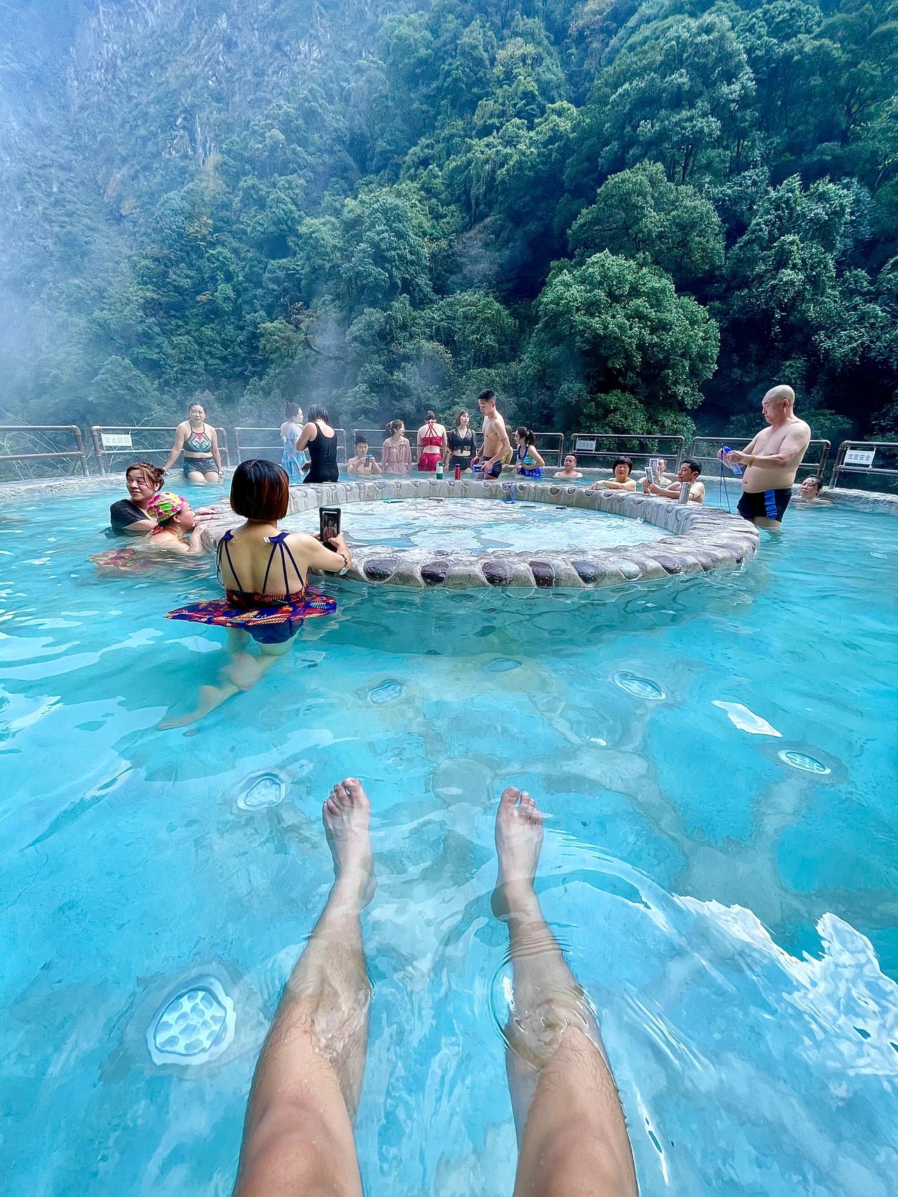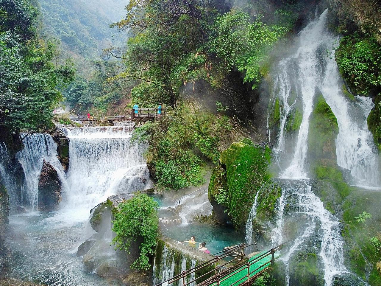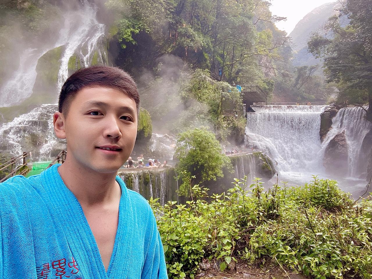 世界上最大的天然温泉瀑布 位于凉山州普格县螺髻山 就是这个天来稍微有些凉 但在瀑