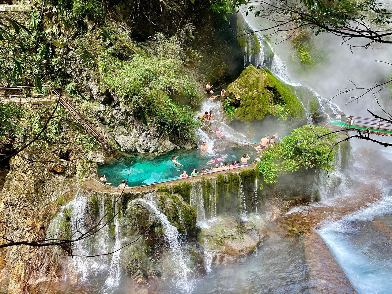 世界上最大的天然温泉瀑布 位于凉山州普格县螺髻山 就是这个天来稍微有些凉 但在瀑布下泡汤♨️真的太爽了 #螺髻山九十九里瀑布温泉#