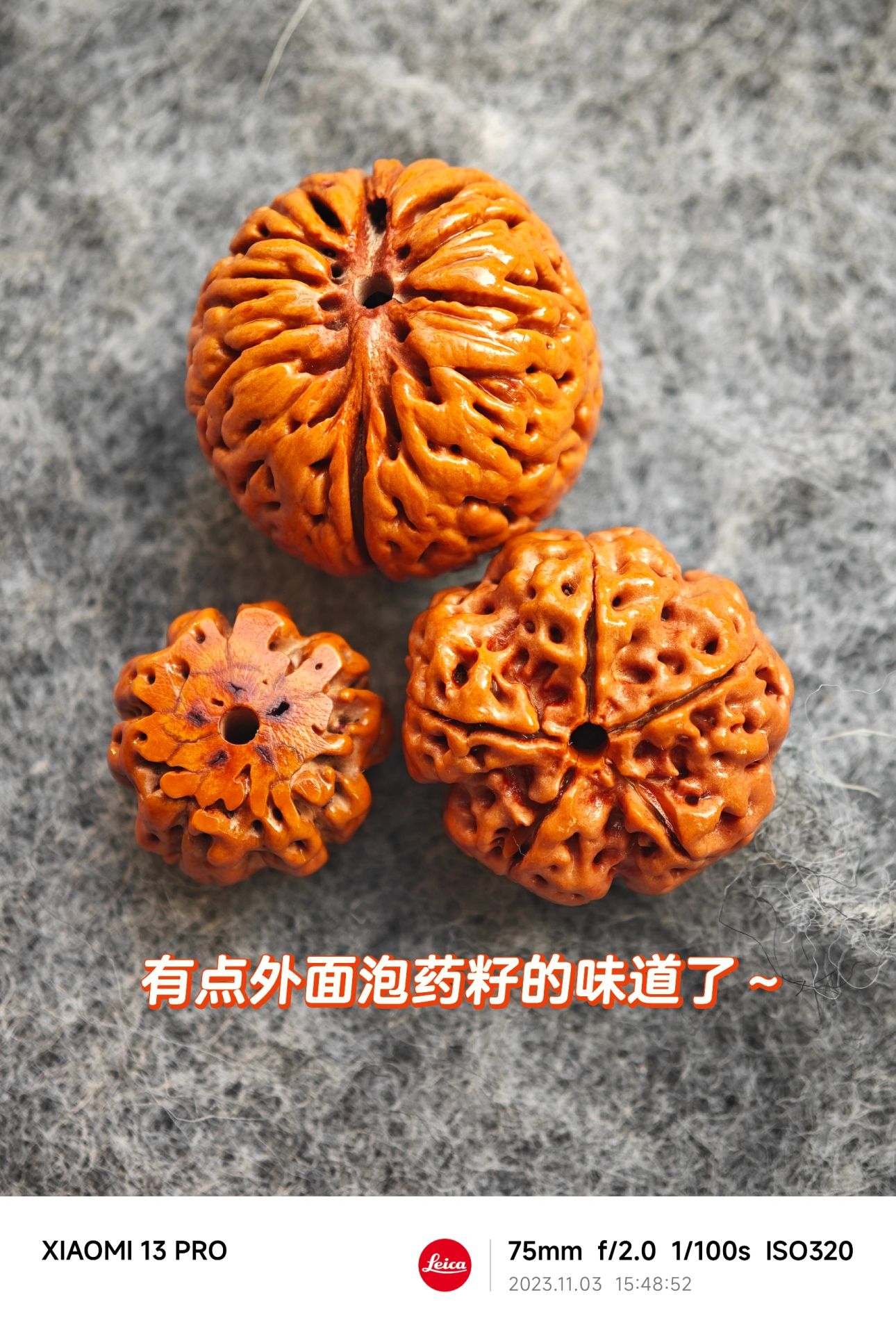 阴干以后,颜色已经褪掉了,当然和原籽比还是有点轻微的染红,可以看我的对比图,阳光下和室内都有。 然后用附带的“复色油”在密封袋里面揉搓,能看到颜色变成了橙色,特别像某些直播间卖的所谓“打好底”的籽。 说明书说要闷几天,那就再过几天看吧,目前和药煮后的颜色差距挺大的。 后续再更新。