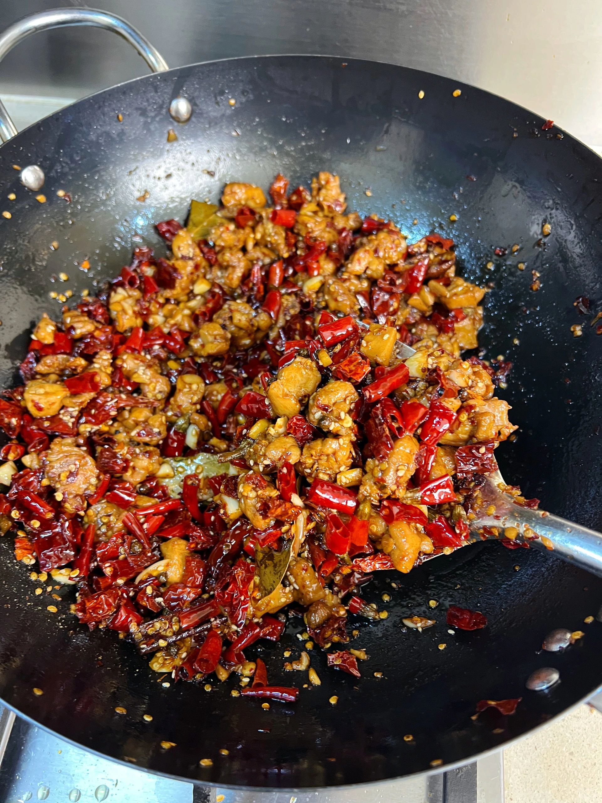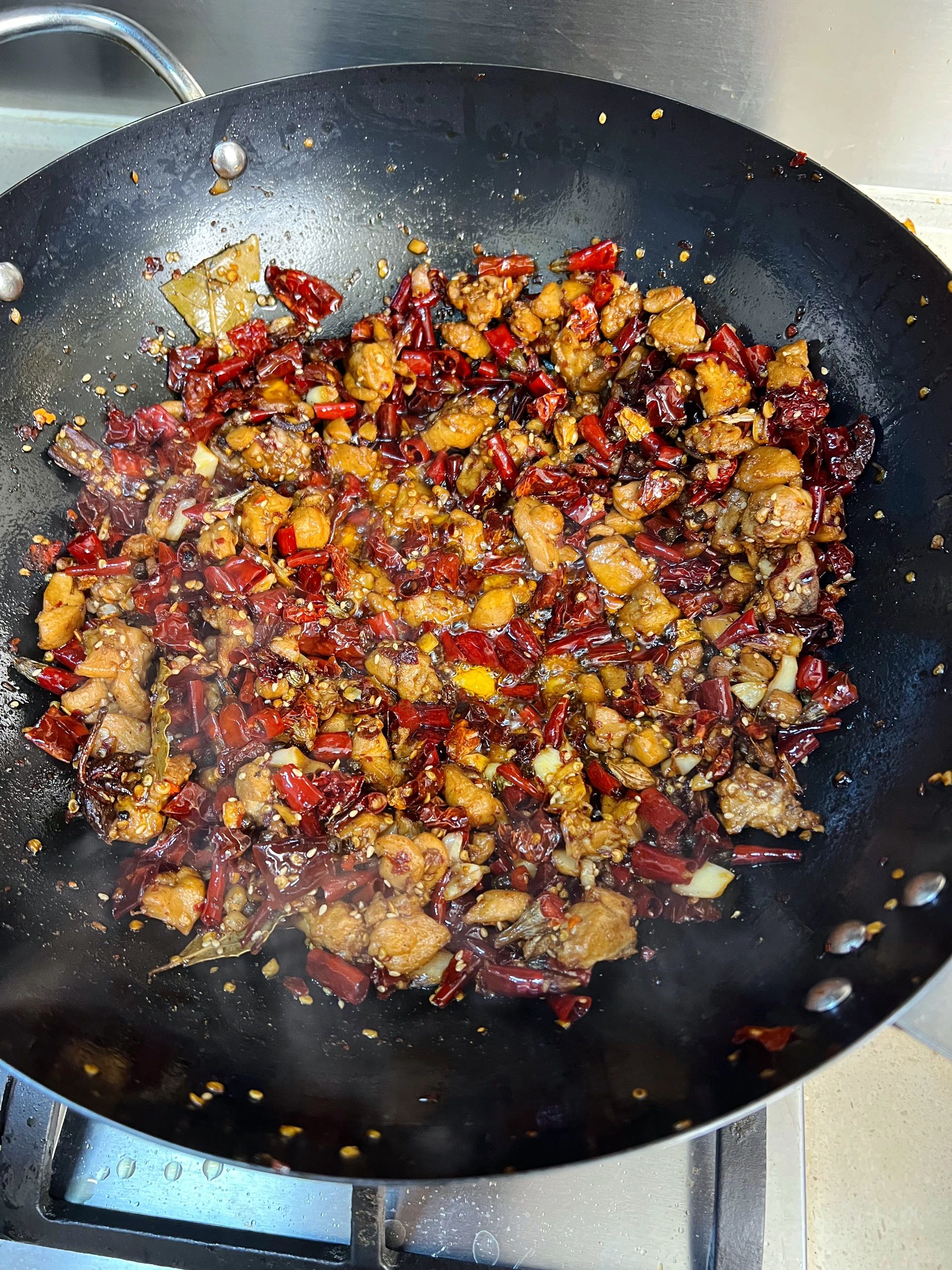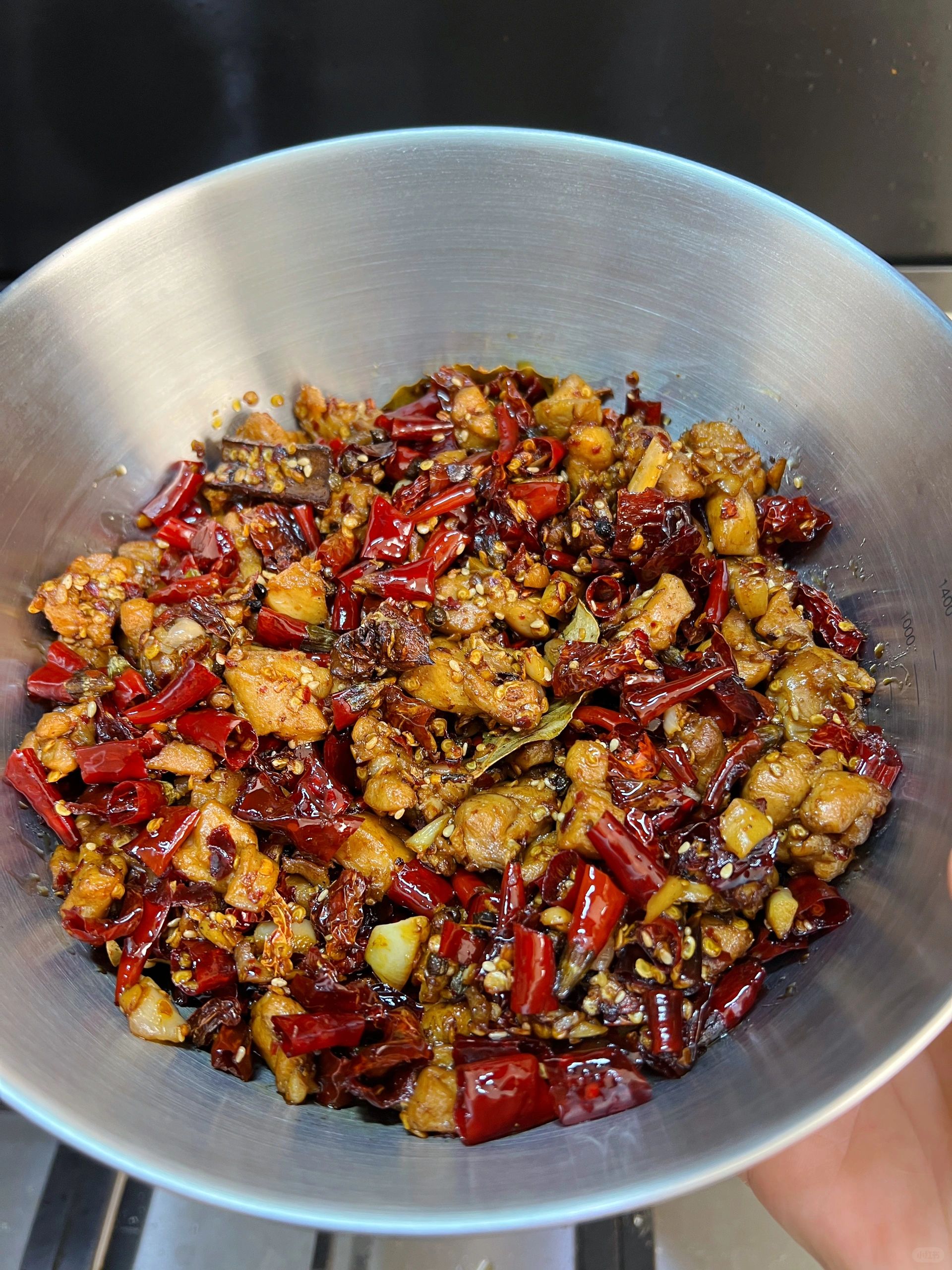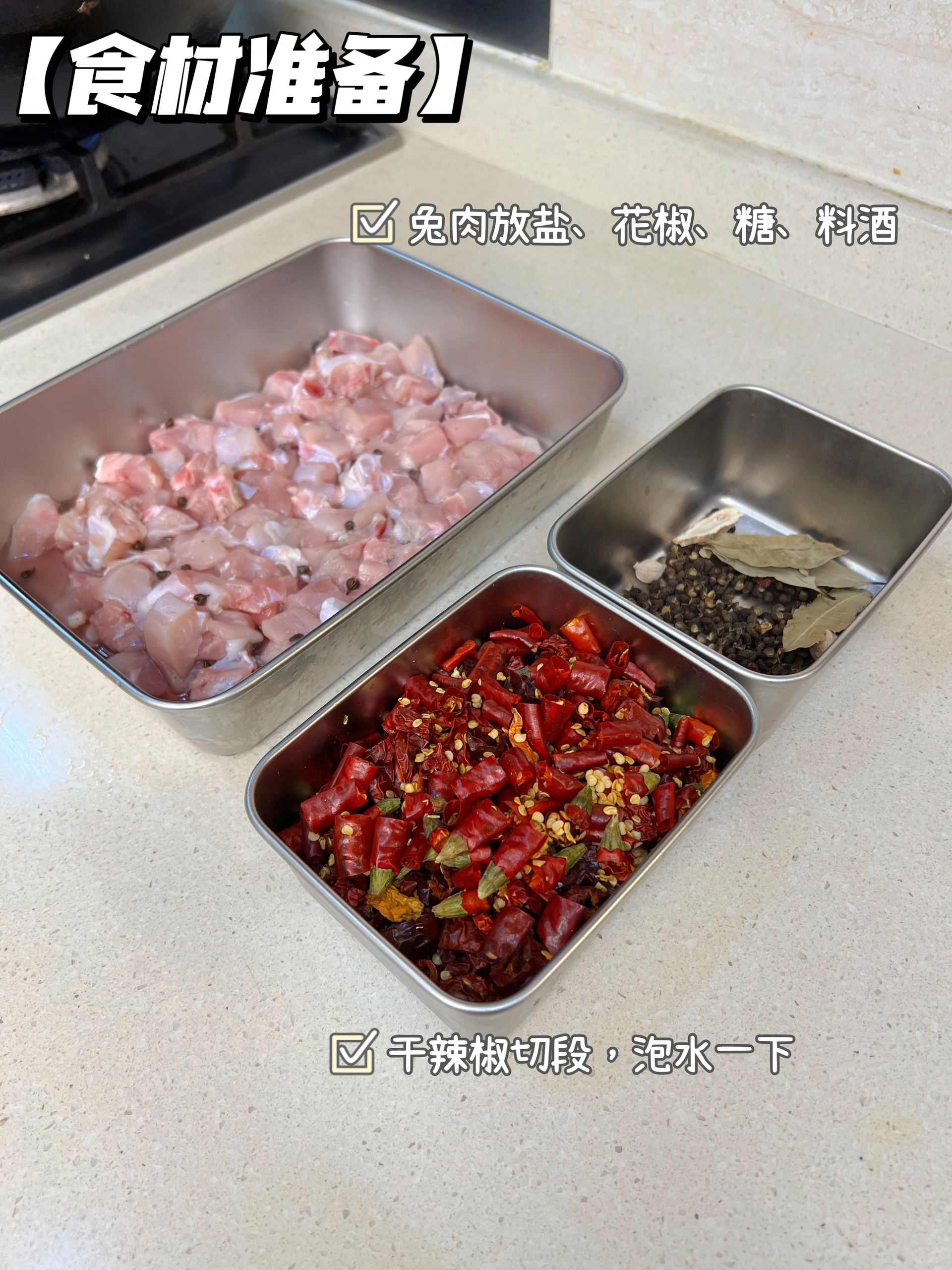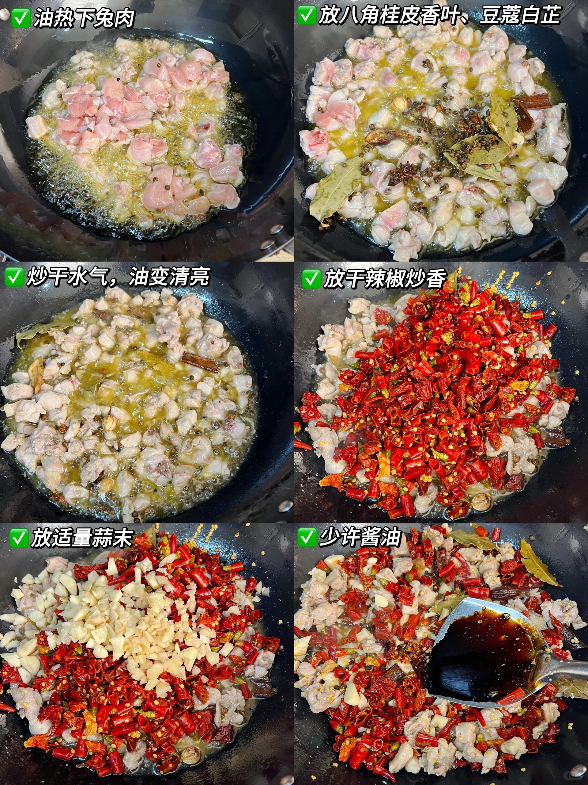 经常刷到冷吃兔,今天终于对他下手了,这个配方真的简单又好吃[色色R][色色R][色色R] 🍀做法:兔肉、蒜、干辣椒、八角香叶桂皮、花椒、豆蔻、白芷、熟芝麻; 👇做法: 1、兔肉切小块洗净,放适量盐、糖、料酒、花椒腌制20分钟,油热放兔肉炸干水气; 2、放八角桂皮香叶、花椒、豆蔻、白芷炒出香味,放洗过的干辣椒段、蒜末、酱油炒匀; 3、放适量辣椒面、花椒面、熟芝麻、鸡精炒3分钟左右即可;