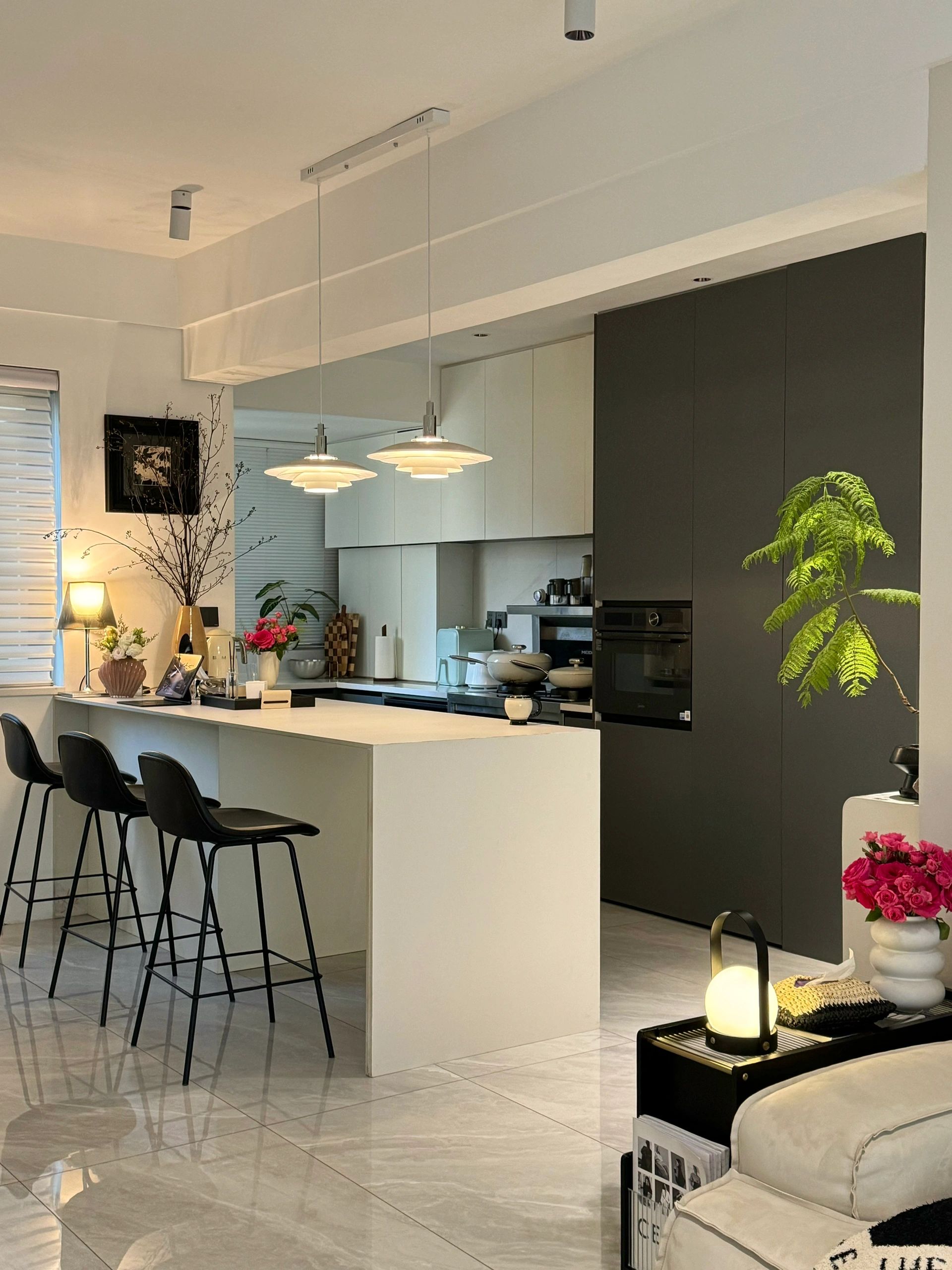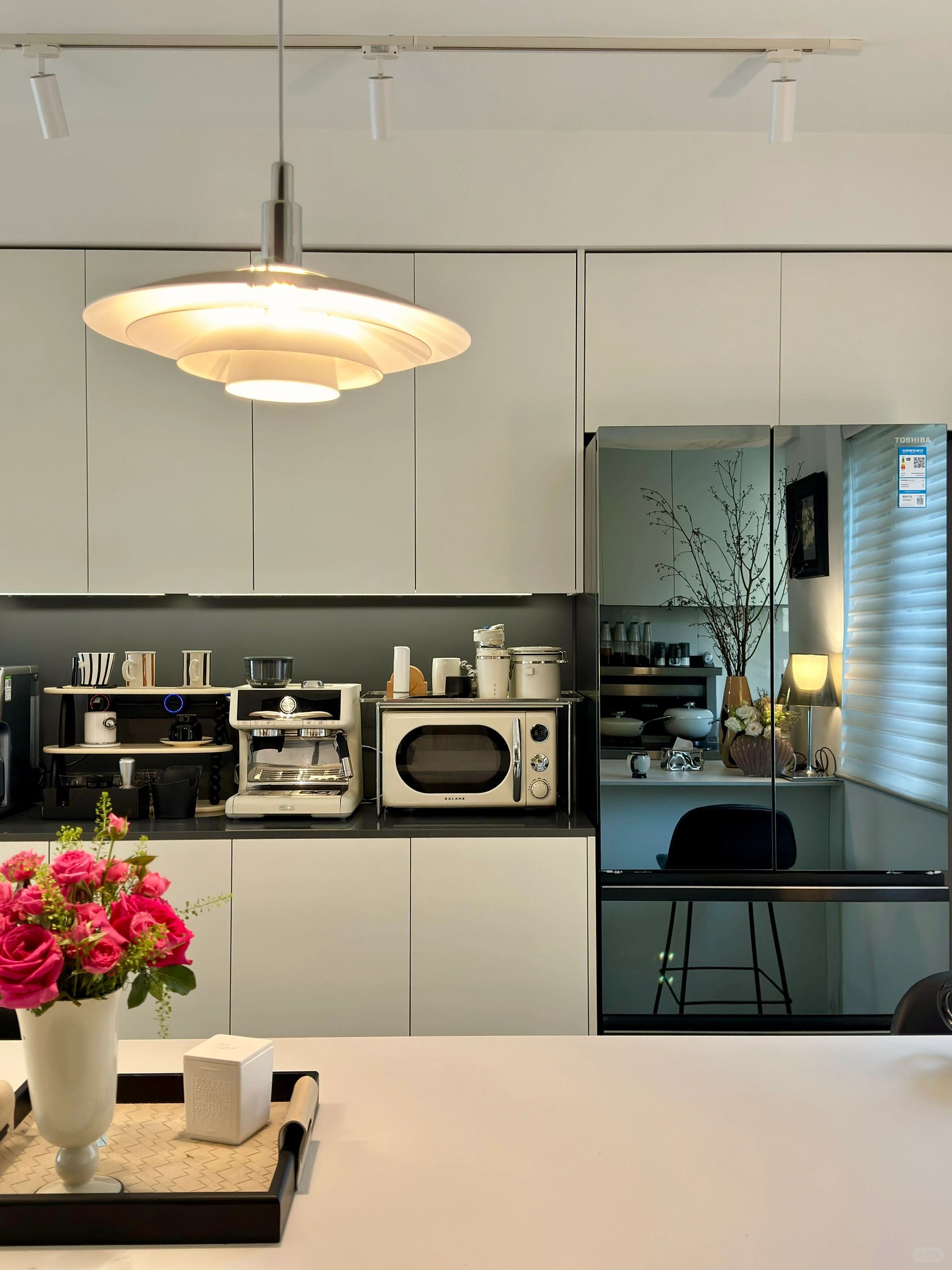 有我喜欢的岛台,咖啡看书插花我都可以在这里