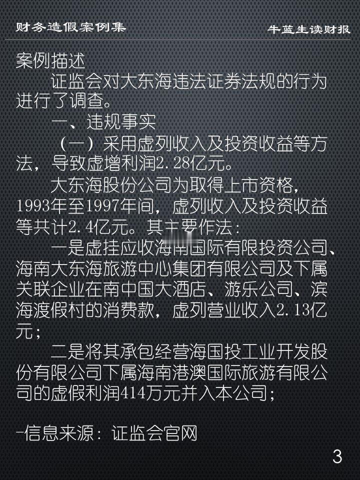 ✈大东海股份公司为取得上市资格,1993年至1997年间,虚列收入及投资收益等共计2.4亿元。其主要作法: