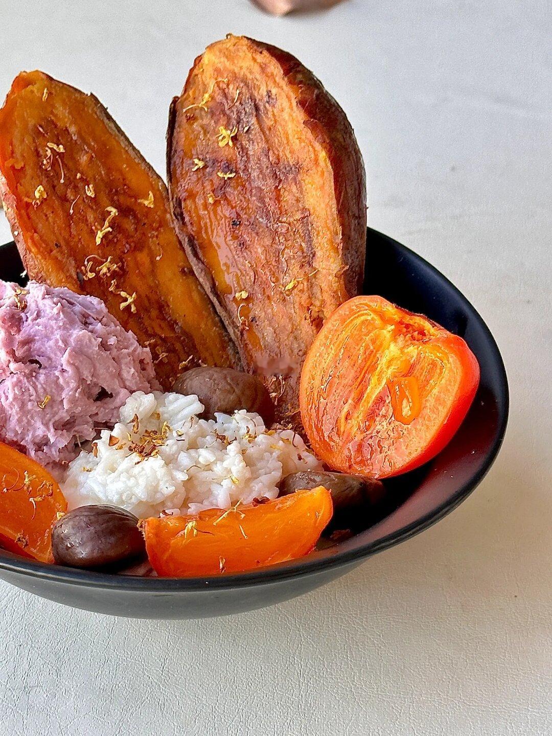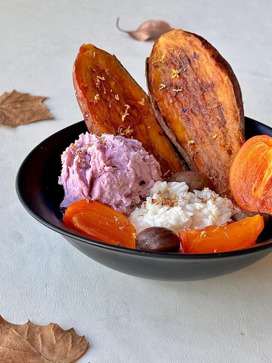 快手早餐|✨秋意浓红薯芋泥桂花酒酿酸奶碗