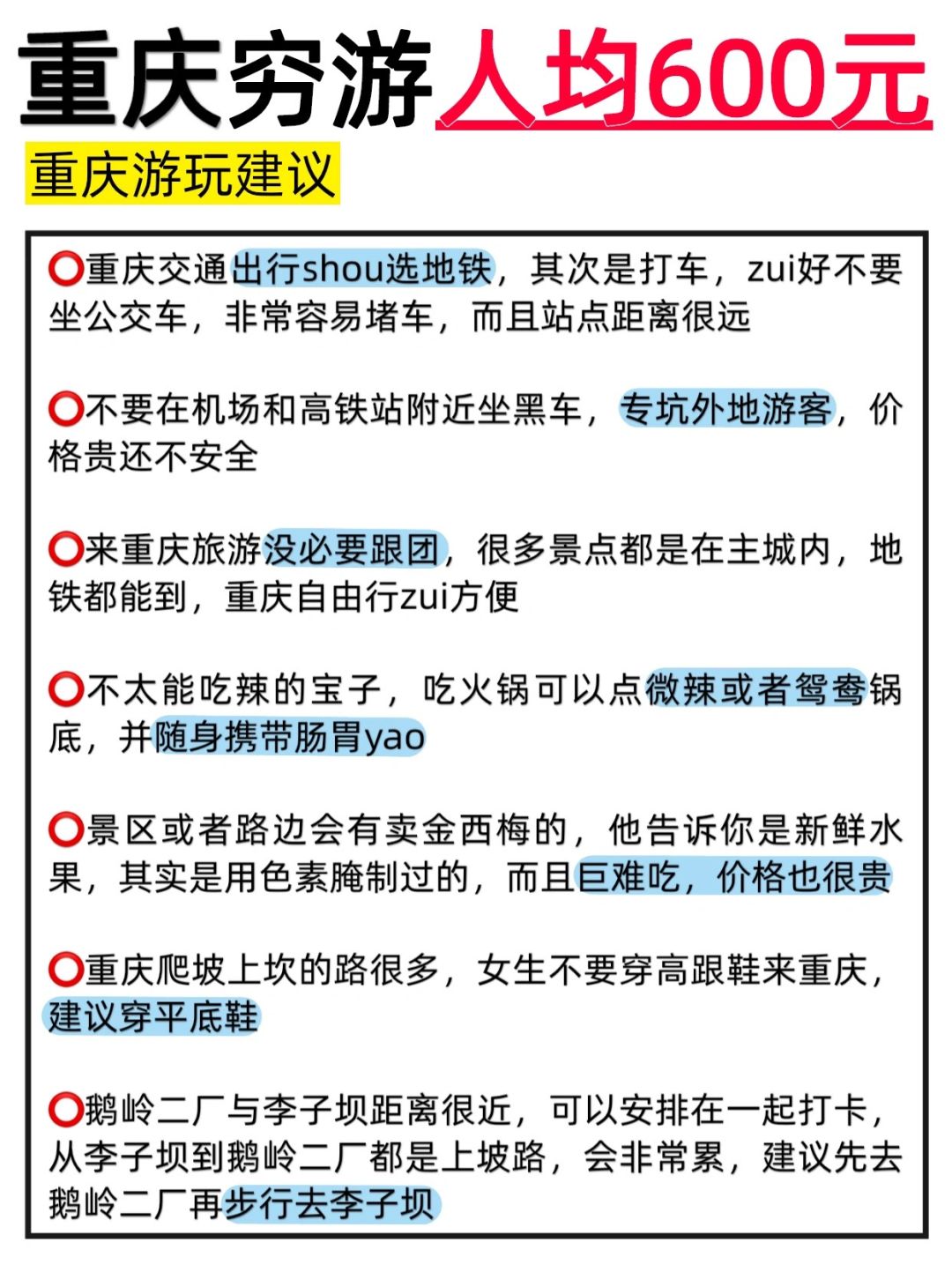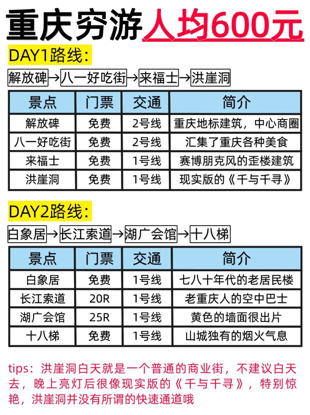 重庆是一座很适合穷游的城市,如果你的预算不多又想去旅游,那重庆一定是个不错的选择哦🥳