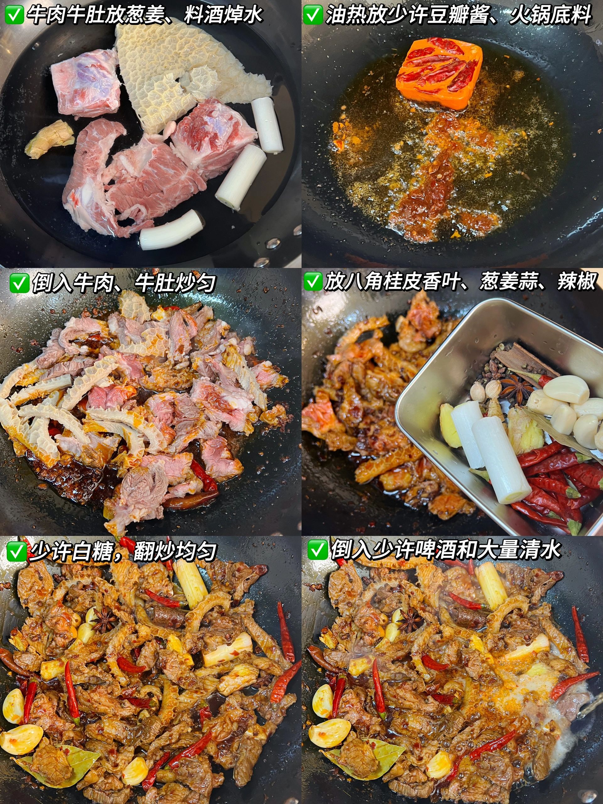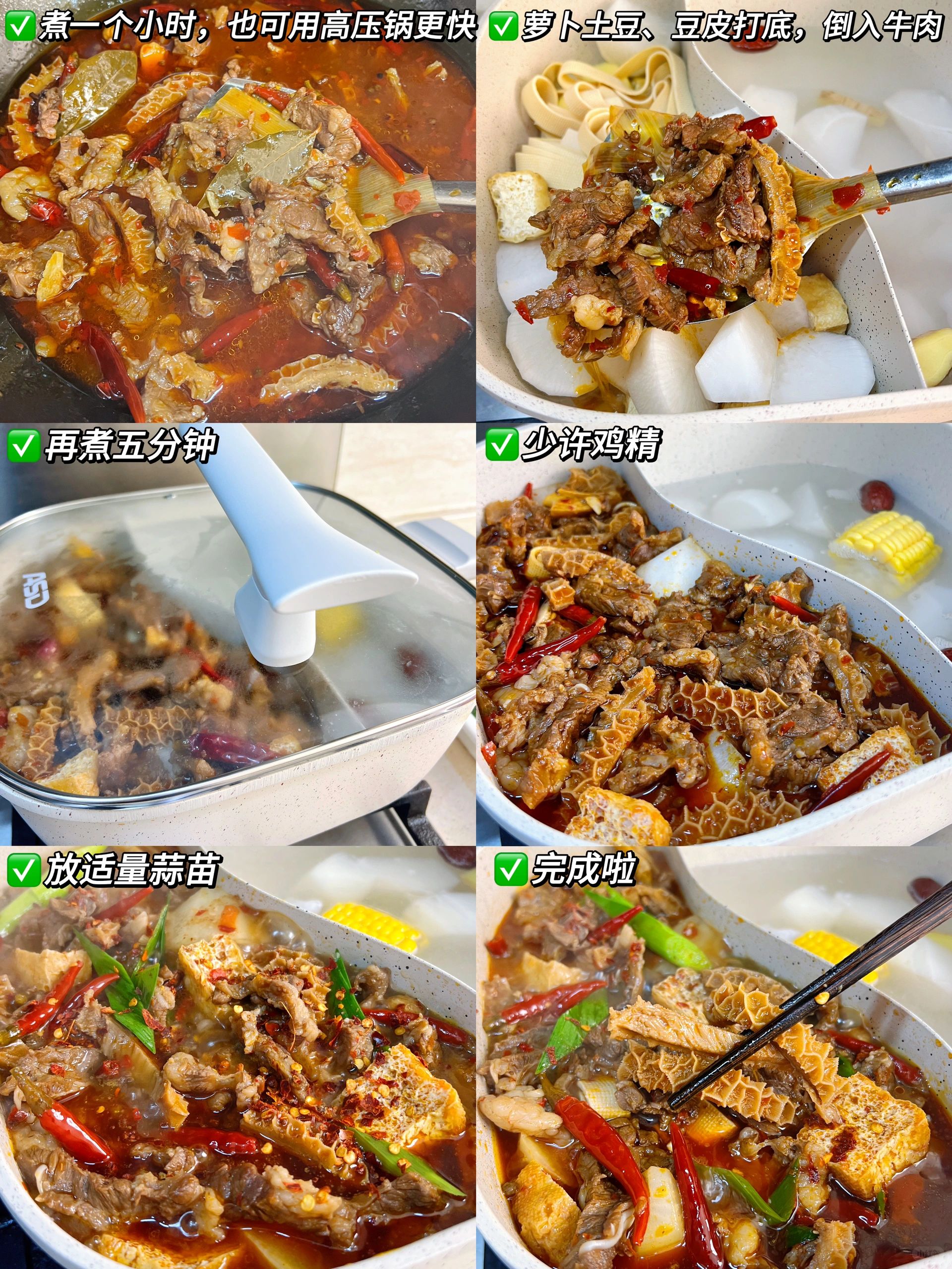 🍀食材:牛肉、牛腩、牛肚、火锅底料、八角桂皮香叶、葱姜蒜;