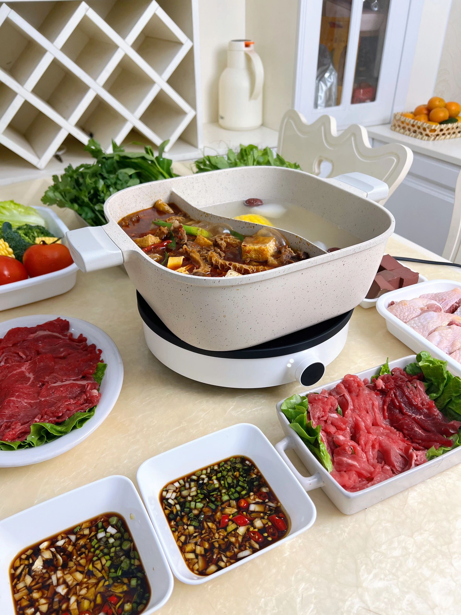 ⭕️无论是家庭日常还是朋友聚会,组个火锅局氛围感直接拉满!锅子我用的是速沸大容量的爱仕达方形鸳鸯锅,加大加深的大容量适合一家老小一起涮,一边涮肉一边喝上一口热气腾腾的鸡汤可太幸福了[哇R][哇R]关键这个锅子明火和电磁炉都能加热,也可以先在明火上快速加热,再用电小火保温,不得不说真的是太方便了!
