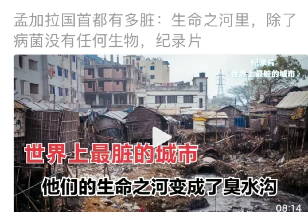 孟加拉地处恒河下游,经过时间垃圾厂阿三的霍霍,怎么干净得了?