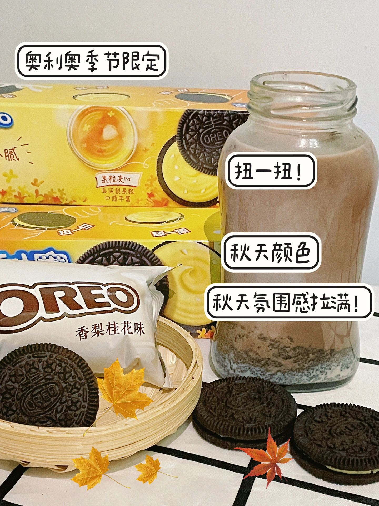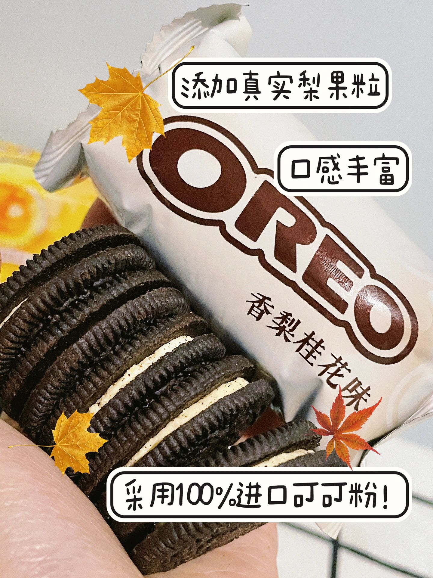 【我这里用的奥利奥季节限定-香梨桂花味!这个夹心添加了🍐梨粒!(闻着桂香~💗品着香梨),刚入口的感觉是香梨的清甜,中和了一下可可的微苦刚刚好,甜而不腻,慢慢会有淡淡的桂花香感充满口腔,口感真的好丰富呀!