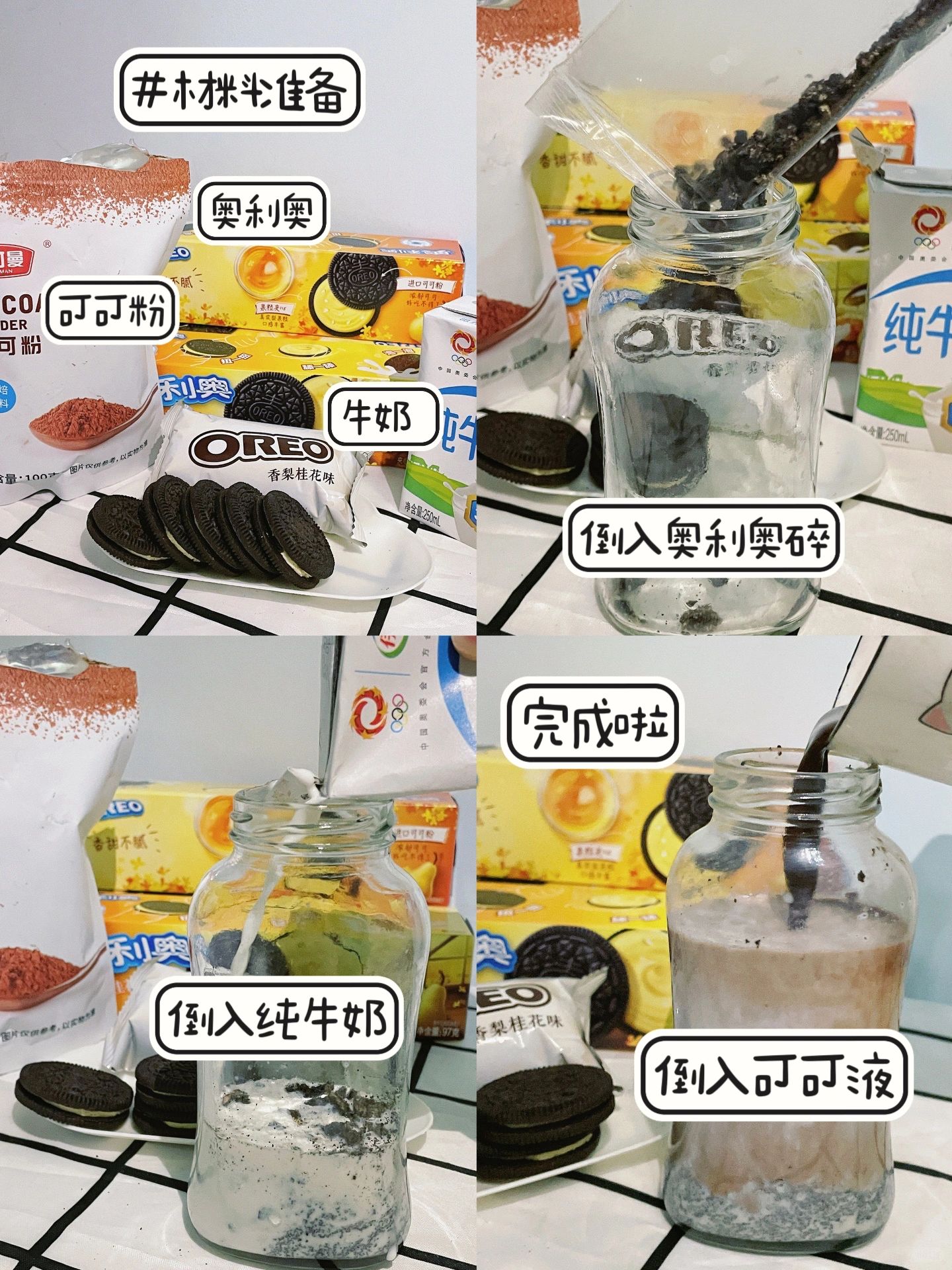 1⃣美味的香梨桂花味奥利奥捣碎捏碎,将碎碎倒入杯中!