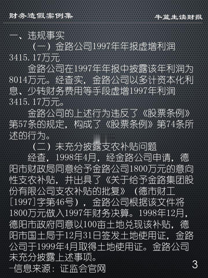 经查,1998年4月,经金路公司申请,德阳市财政局同意给予金路公司1800万元的意向性支农补贴,并出具了《关于给予金路集团股份有限公司支农补贴的批复》(德市财工[1997]字第46号),金路公司根据该文件将1800万元做入1997年财务决算。1998年12月,德阳市政府同意以100亩土地兑现该补贴,德阳市国土局于12月31日签发土地使用证,金路公司于1999年4月取得土地使用证。金路公司未充分披露上述事项。