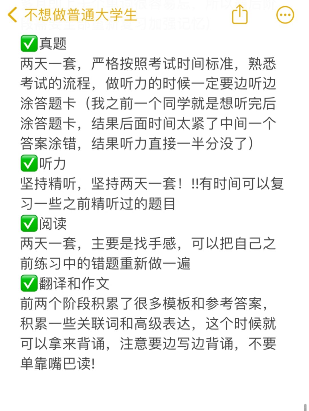 ⭕️这个时候只练真题,而且精刷,模拟题啥的都不用。