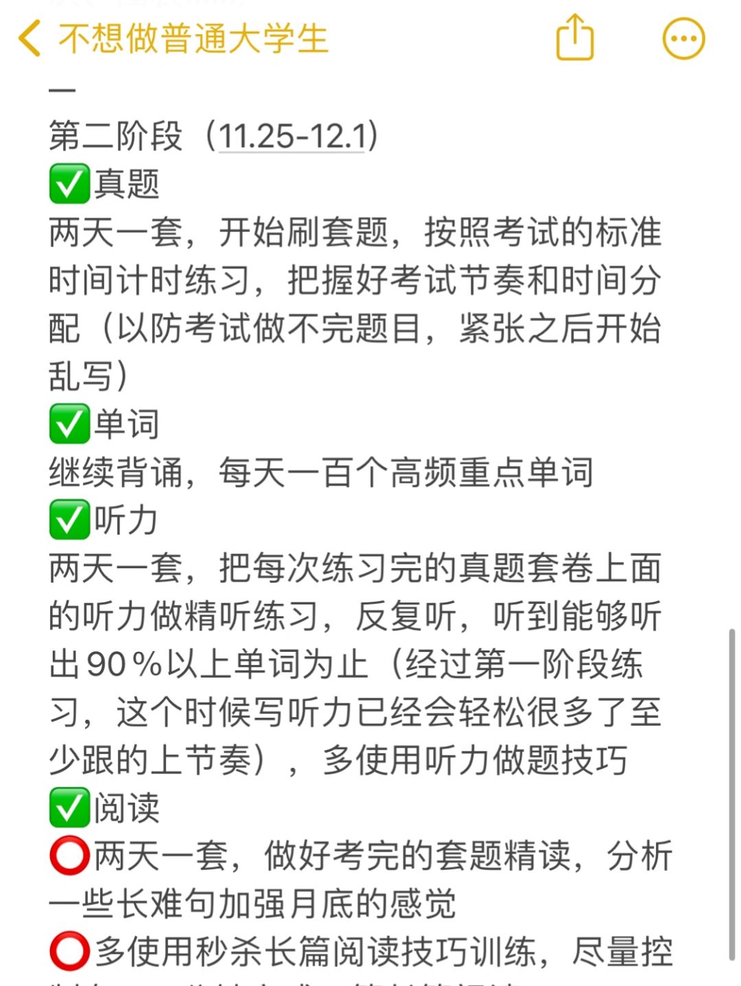 ⭕️两天一套题目,只做长篇阅读和仔细阅读,选词填空可以放弃。
