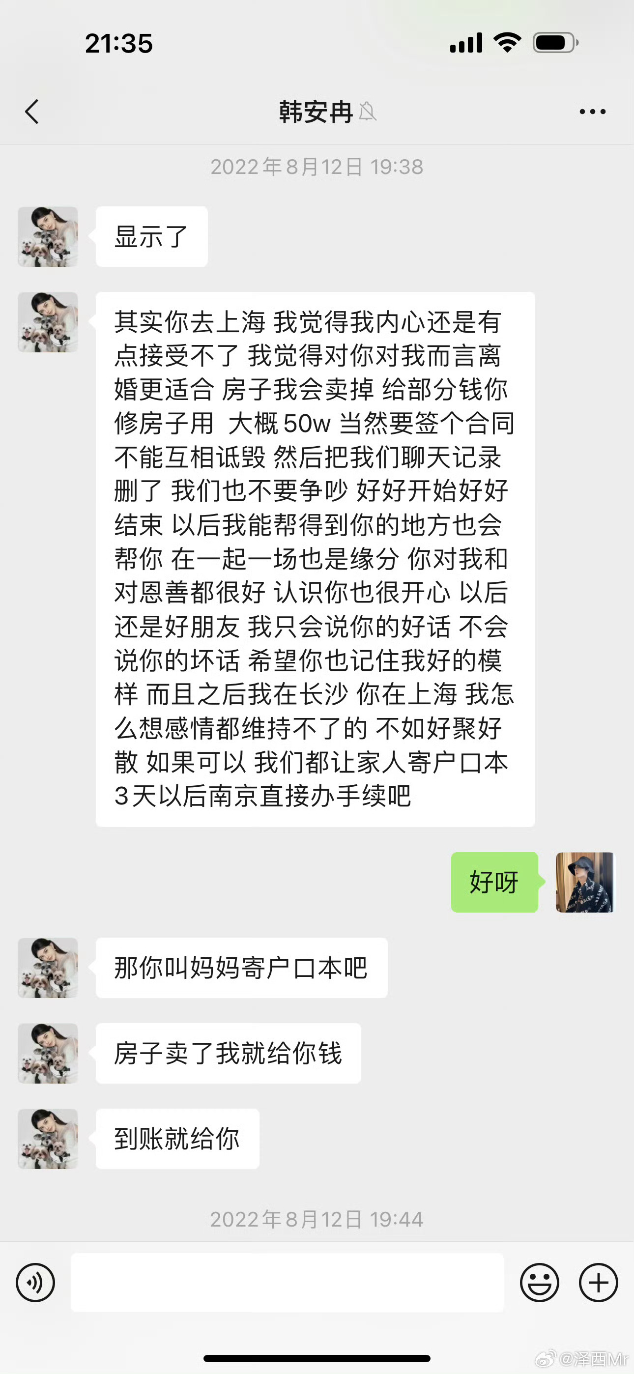 #泽西晒与韩安冉聊天记录#