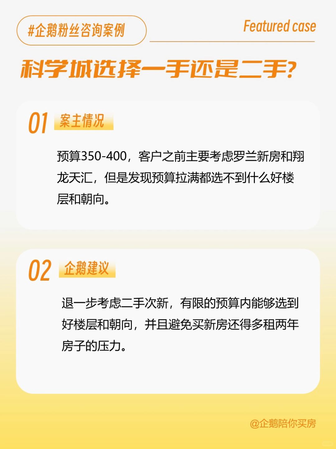 ①案主背景:预算350-400,客户之前主要考虑罗兰新房和翔龙天汇,但是发现预算拉满都选不到什么好楼层和朝向。
