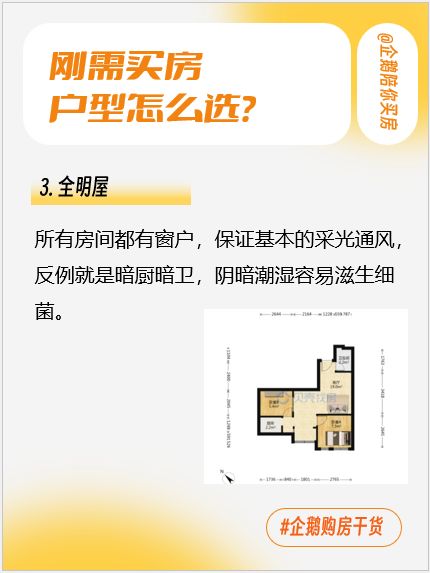 3.全明屋所有房间都有窗户,保证基本的采光通风,反例就是暗厨暗卫,阴暗潮湿容易滋生细菌。