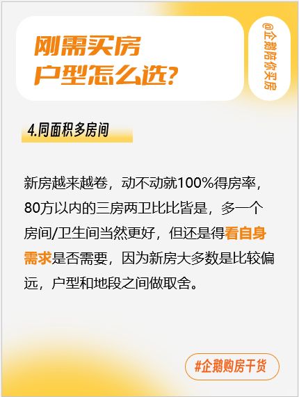 4.同面积多房间新房越来越卷,动不动就100%得房率,80方以内的三房两卫比比皆是,多一个房间/卫生间当然更好,但还是得看自身需求是否需要,因为新房大多数是比较偏远,户型和地段之间做取舍。