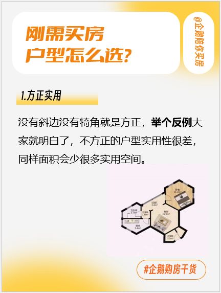 1.方正实用没有斜边没有犄角就是方正,举个反例大家就明白了,不方正的户型实用性很差,同样面积会少很多实用空间。
