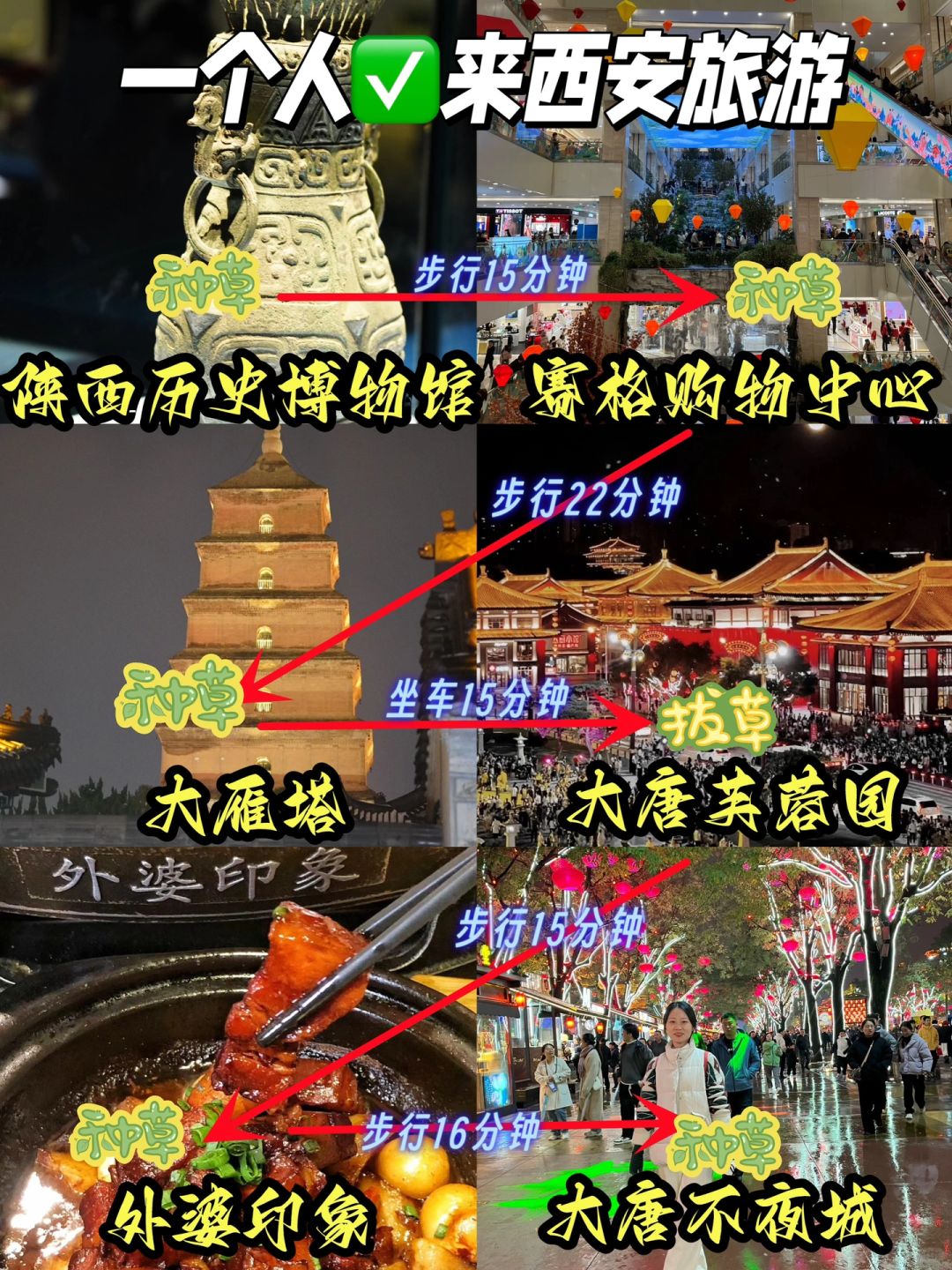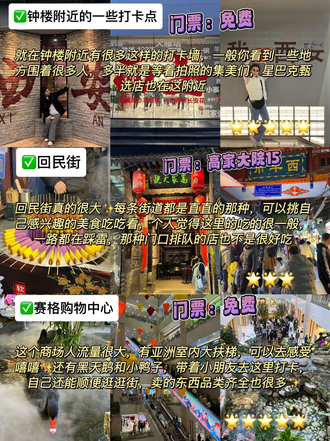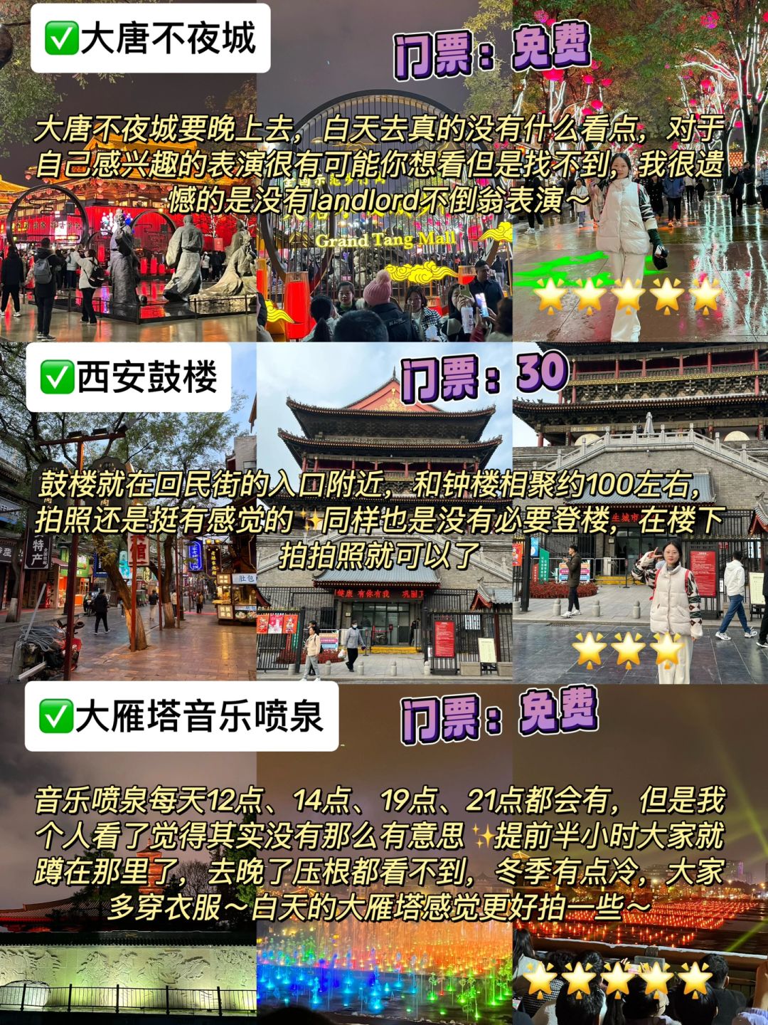🚄车站选择: ❤️重庆西站-西安北站:车程5小时左右 ✔️到了北站直接坐地铁去钟楼附近的住宿,约半小时左右,我们选择📍如家精选钟楼店 · 最近西安逐渐变冷,建议大家穿羽绒服,晚上吹风很冷的~ · ✅西安自由行 Day1⃣️:西安北站—酒店放行李—回民街—高家大院—钟楼—古城墙 Day2⃣️:洒金桥—碑林博物馆—秦始皇陵兵马俑—华清宫—老版火锅(含光总店) Day3⃣️:陕西历史博物馆—赛格购物中心—大雁塔—大唐芙蓉园—外婆印象(大唐不夜城店)—大唐不夜城 ·