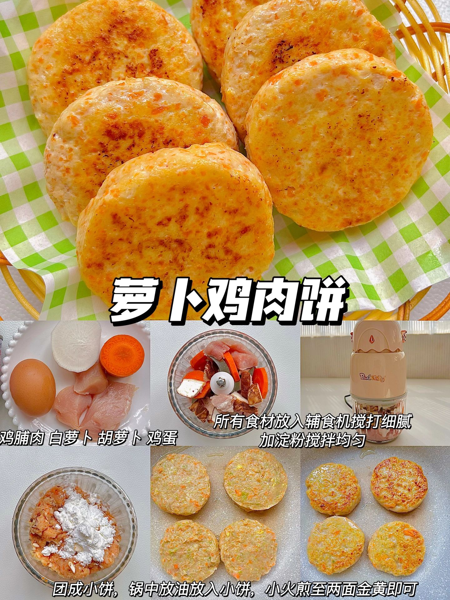 ✅做法非常简单,只需要把需要的食材处理干净,放入辅食机,搅打细腻,加适量淀粉,1岁以上加调味品,团成小饼,小火煎熟即可哦~