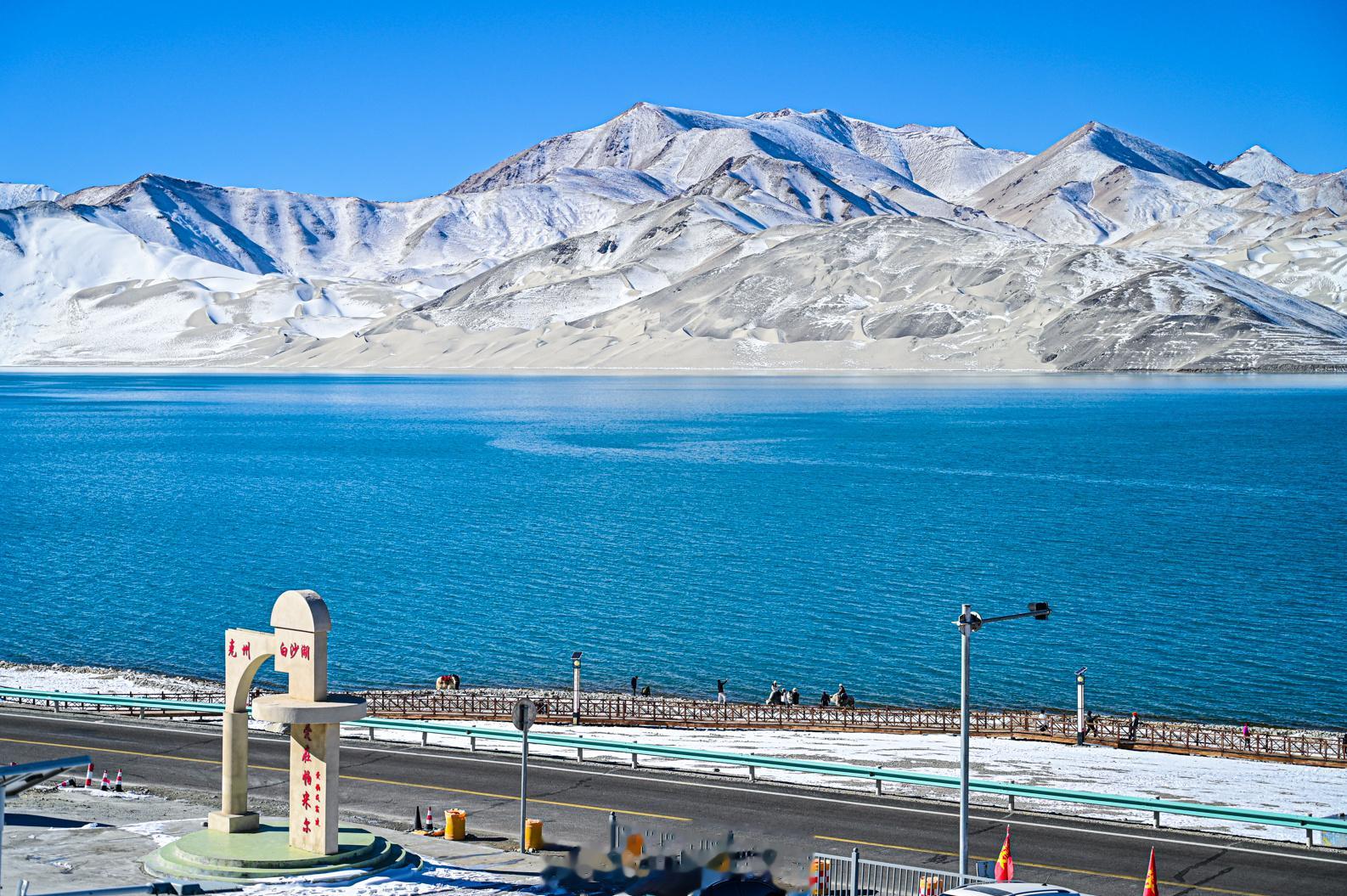 从喀什往塔县的中巴友谊公路约200公里左右的公路边,有一个海拔3300米的蓝色湖泊,四周被雪花一样的白色沙山环绕,被称为白沙湖,传说这就是西游记里的流沙河。