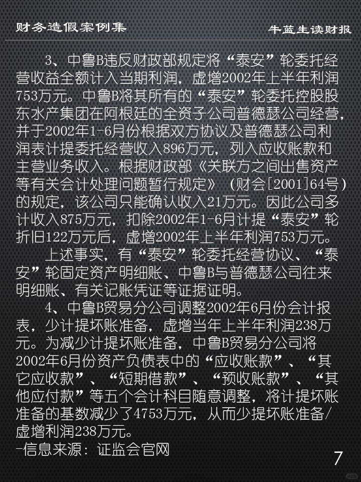 ✈公司:远洋渔业 造假金额:2001-2002年虚增利润3259万元 主要手段:提前确认销售收入、少提减值准备等 证监会处罚文号:[2004]10号