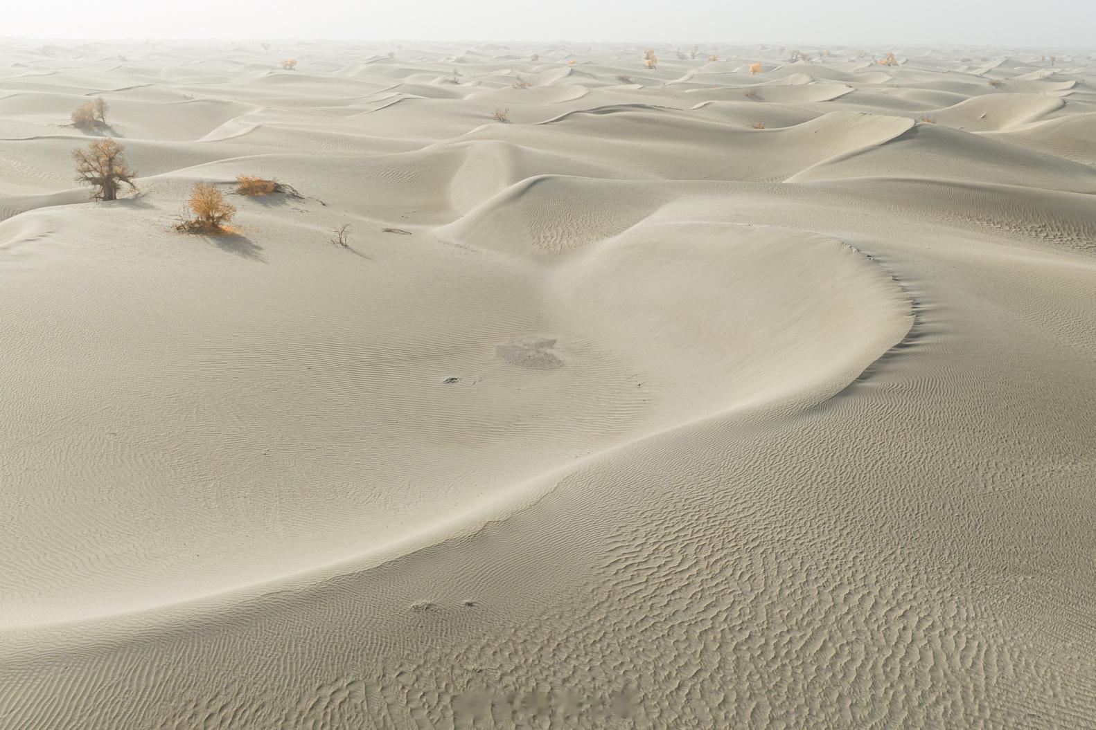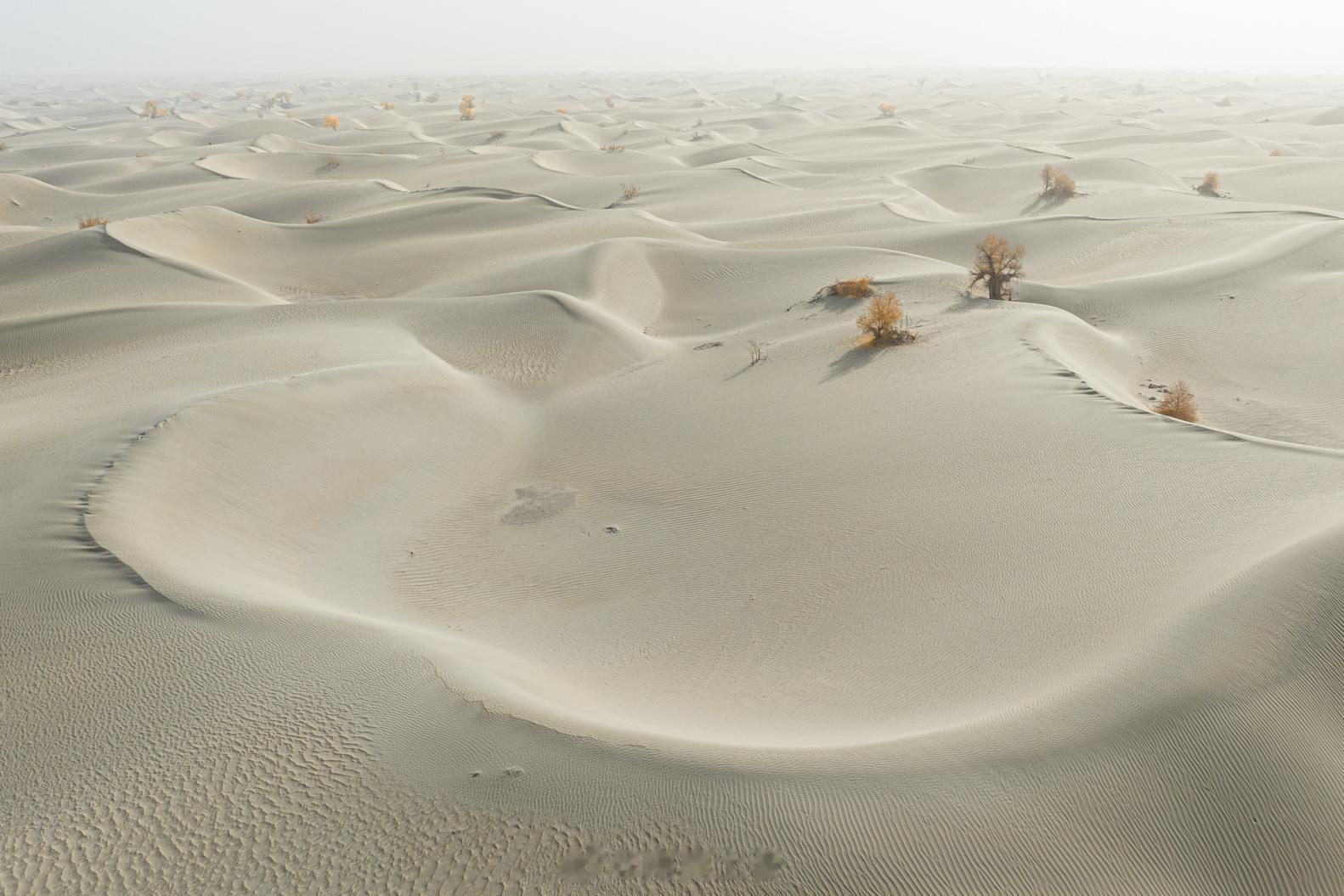 一早起来遇见很大的雾霾,于是在阿拉尔多待了一天,担心穿越阿拉尔-和田沙漠公路时看不清方向,看不远沙漠,看不见胡杨。其实第二天还是有一些雾,没有想象的不测,只是,平添了些许苍茫感。