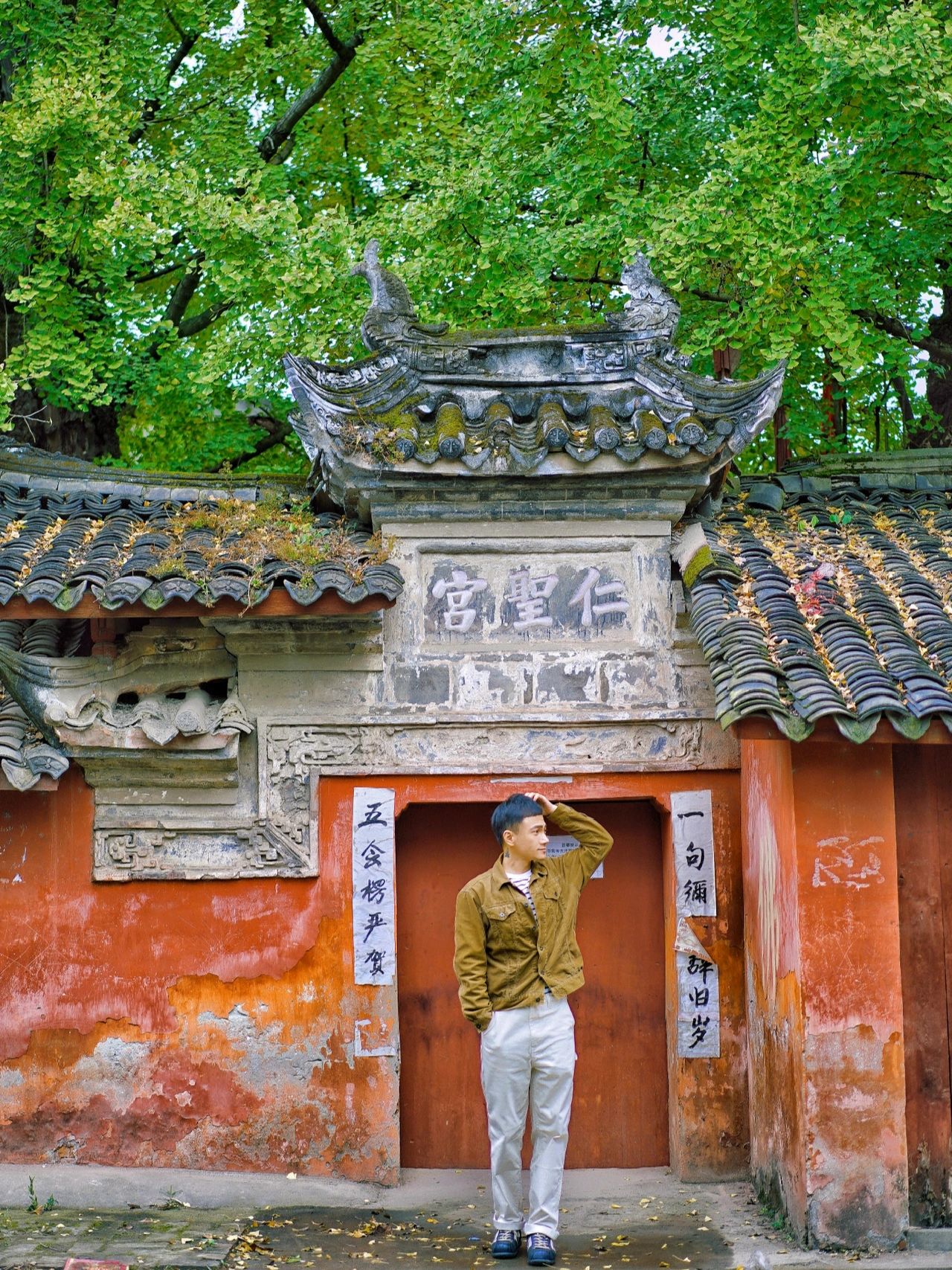 √寺庙不大,红墙黑瓦,秋天寺内两颗百年银杏极其壮观
