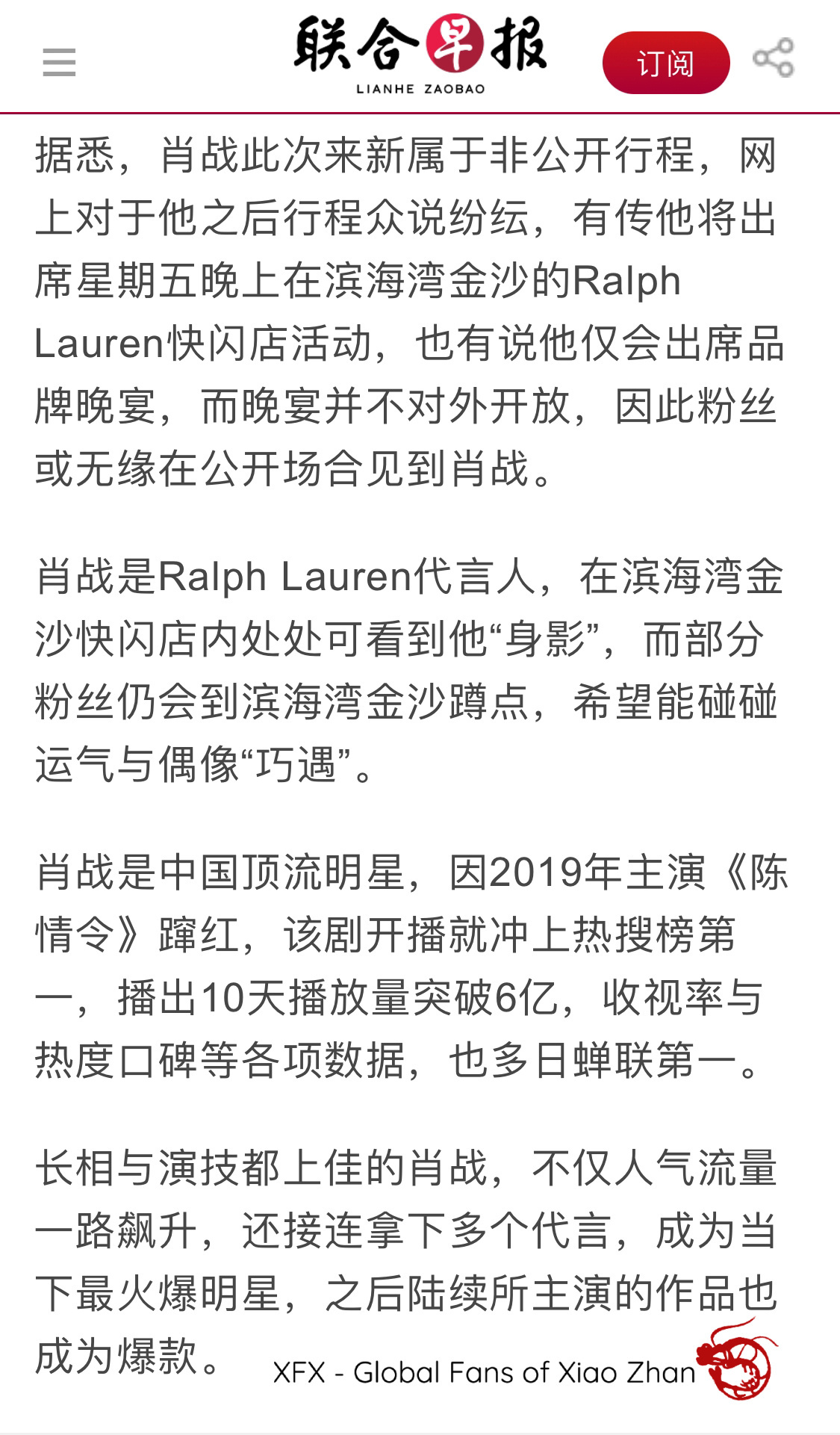 新加坡当地媒体报道肖战称肖战为中国顶流明星,还报道了小飞侠接机场景,肖战是真的火