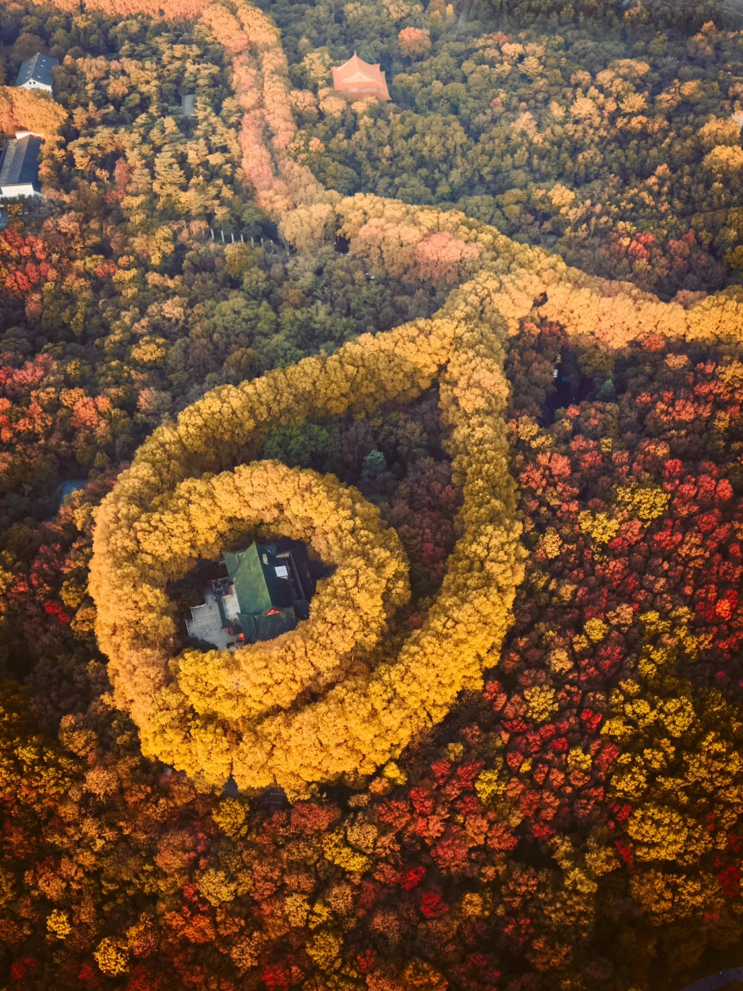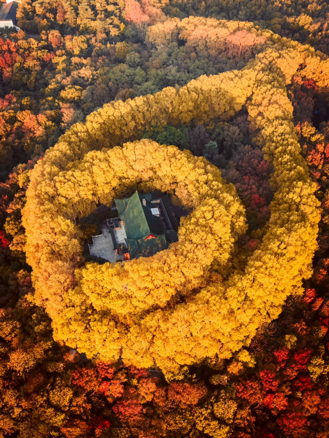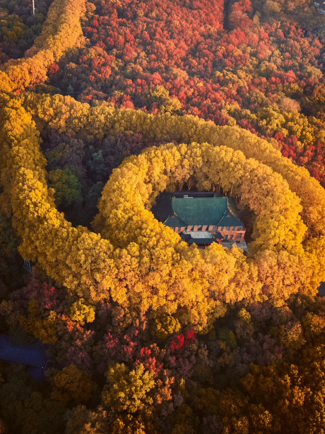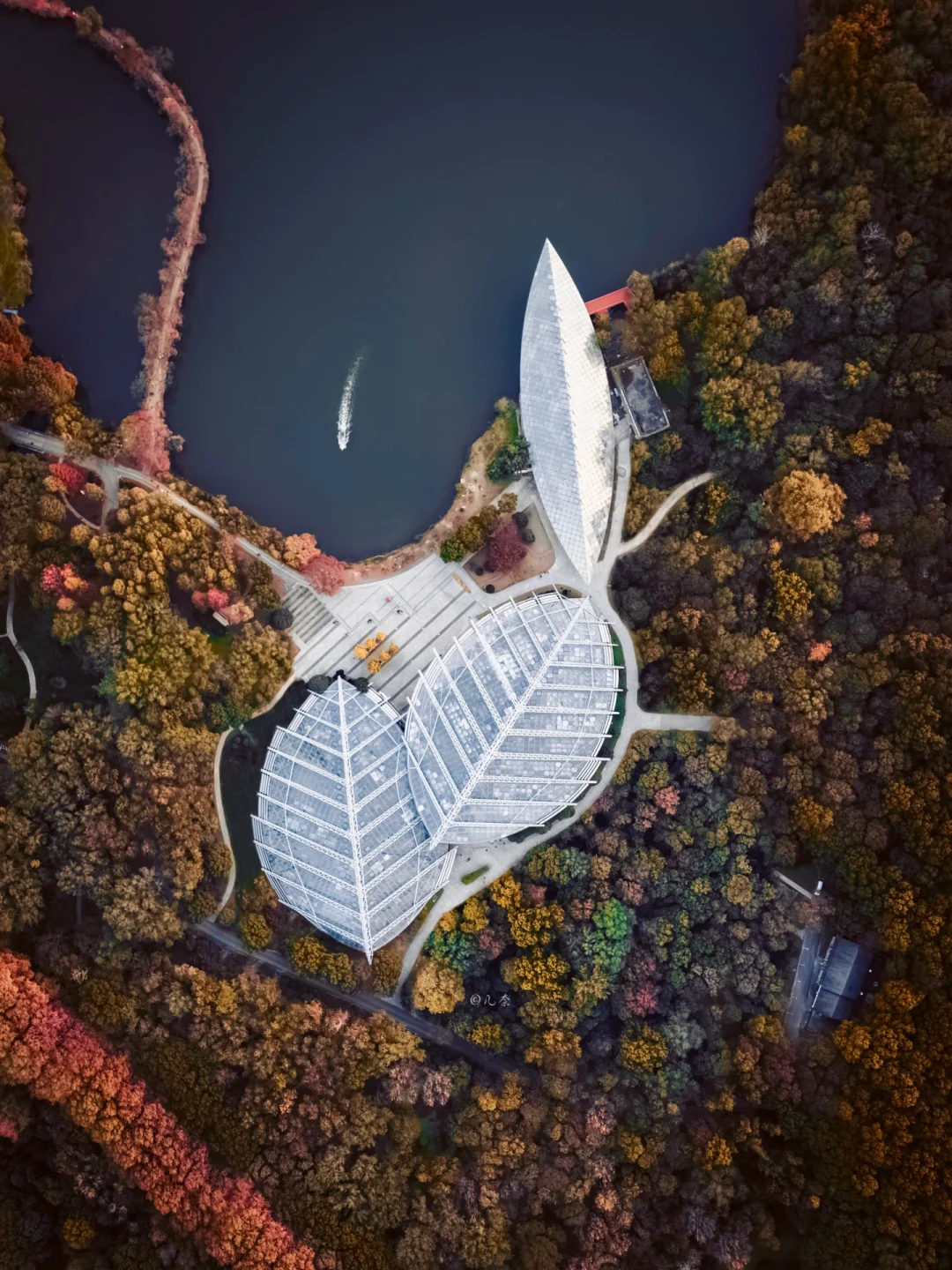 我是几奈,坐标上海 的90后摄影博主 南京的唯美项链“美龄宫” 在12月迎来了最浪漫的时刻 全部的树叶由绿转红和黄 色彩缤纷艳丽的金秋时刻 · “一句梧桐美,种满金陵城” 是多少人对于爱情的浪漫憧憬 南京也因梧桐大道在秋天变得浪漫 航拍下的美龄宫色彩艳丽迷人 附近的明孝陵,梧桐大道也到了最佳时间 图3是美龄宫隔壁的植物园 造型也是落叶的设计非常应景秋天 · 🍂美龄宫 📍江苏省南京市玄武区中山陵9号 🕤07:00-18:30 📸使用无人机航拍效果最佳 ✈️起飞点T80科技园的停车场视野开阔 ·