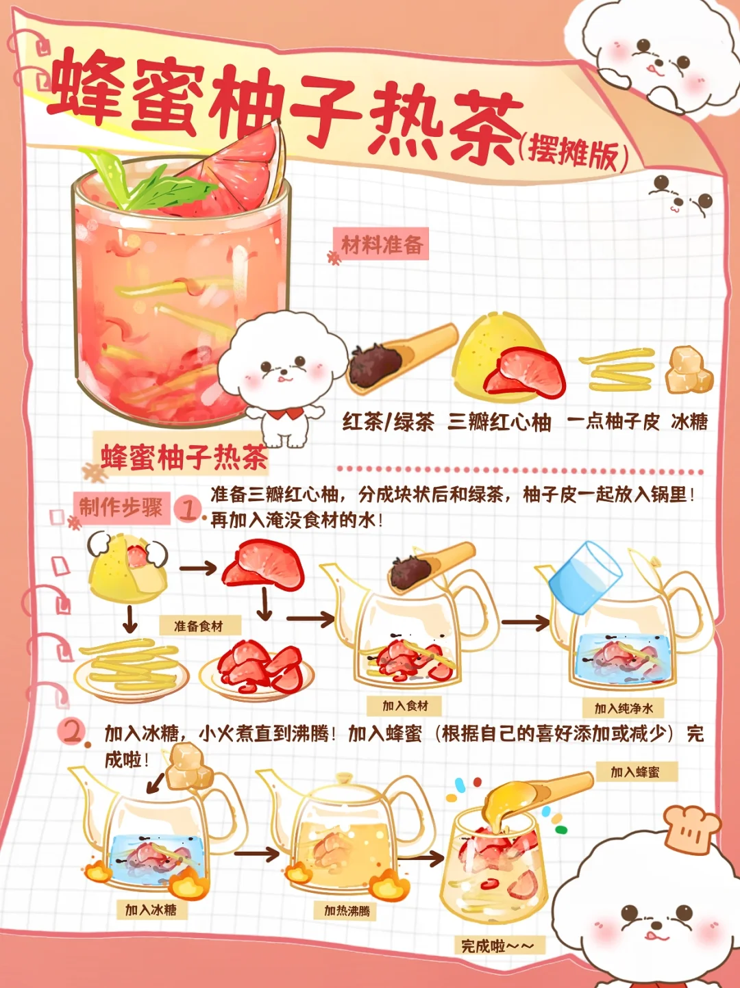 红茶/绿茶➕三瓣红心柚➕一点柚子皮➕冰糖