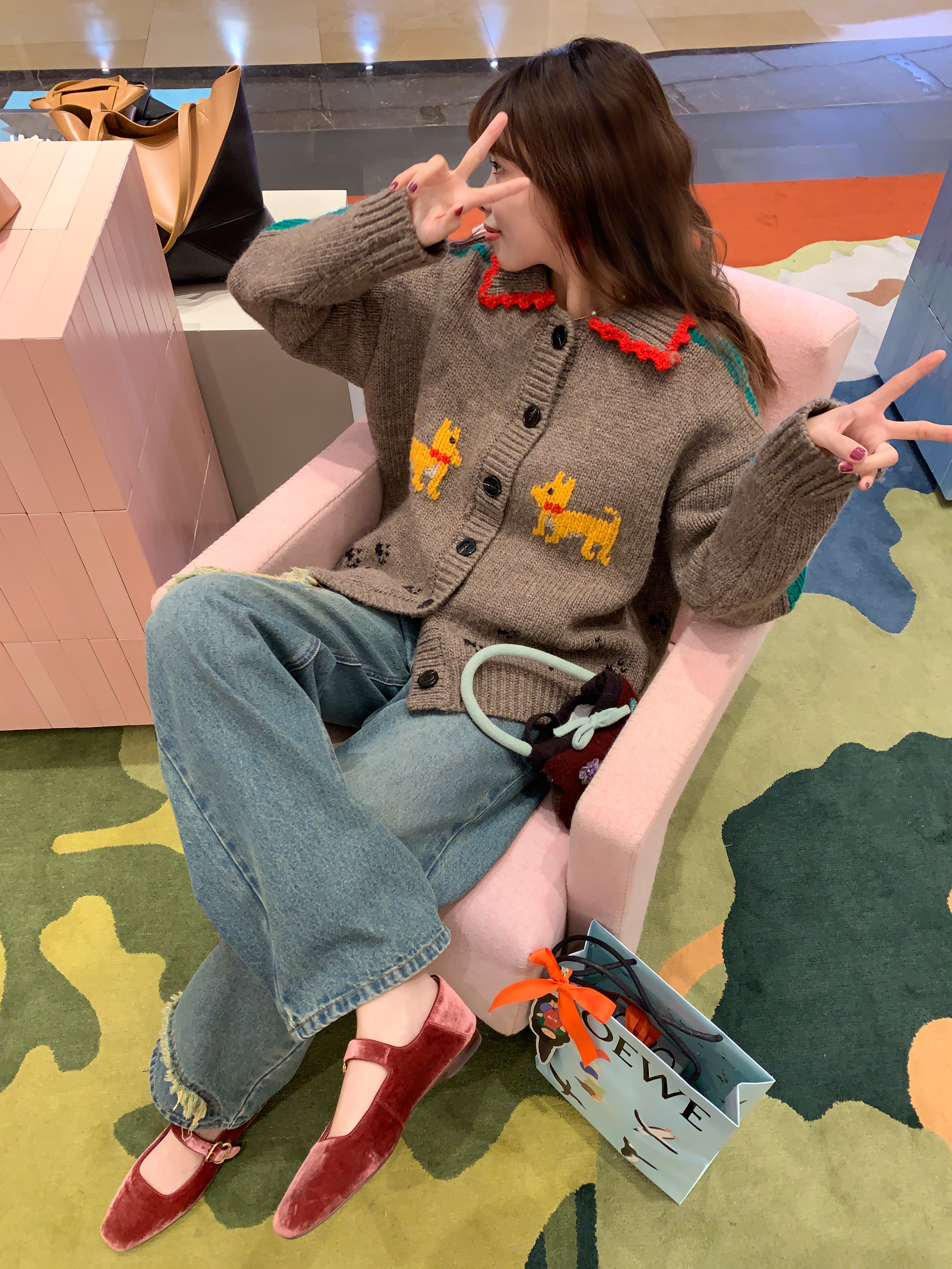 有次我穿这件在香港就有一个阿姨拍拍我问我是手织的吗真好看💗 很有童趣感的圣诞小狗毛衣 这件是真的超级重工系列 一件克重都有1000多克 是做过毛衣里最难做的一件 滑2位无门槛!