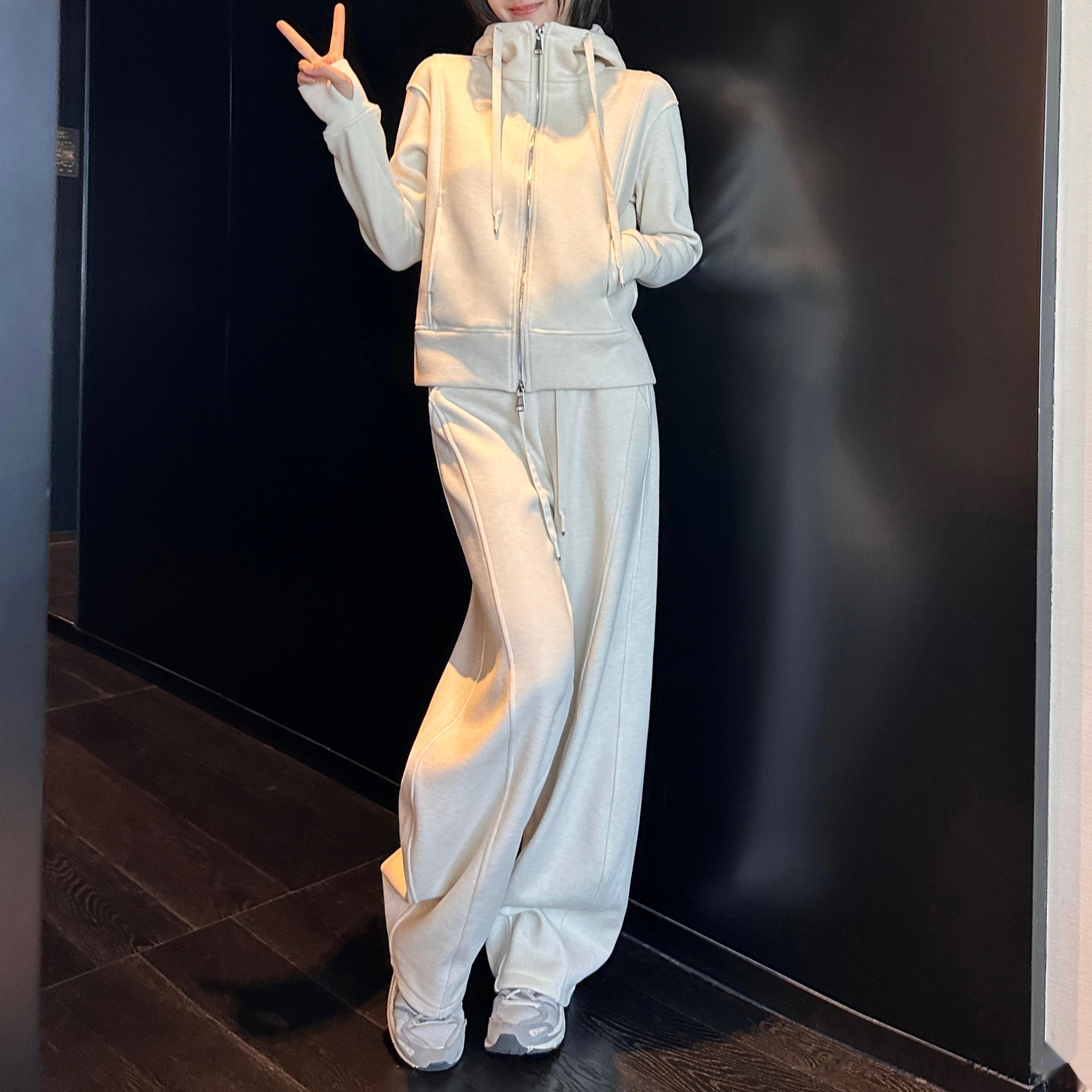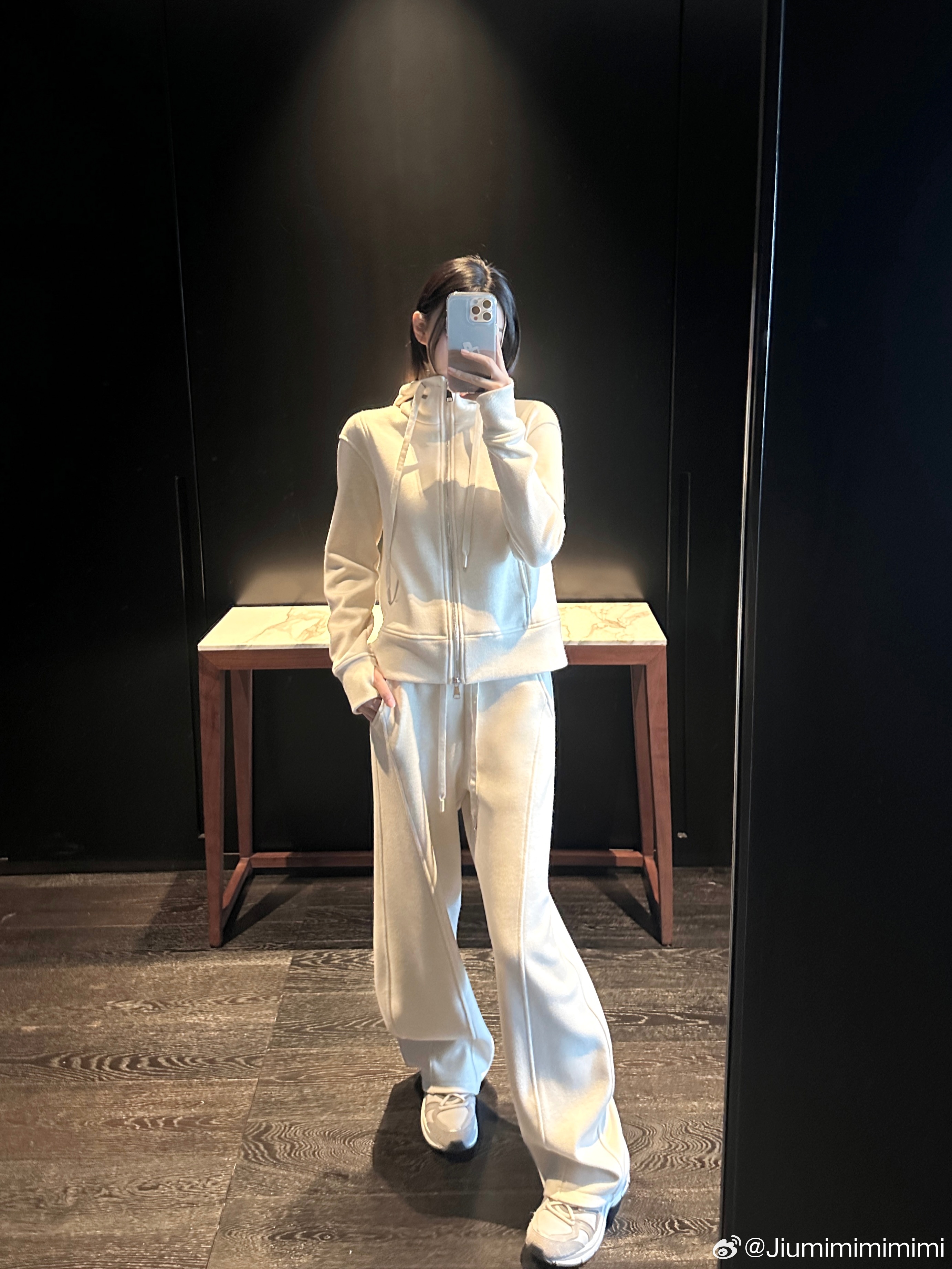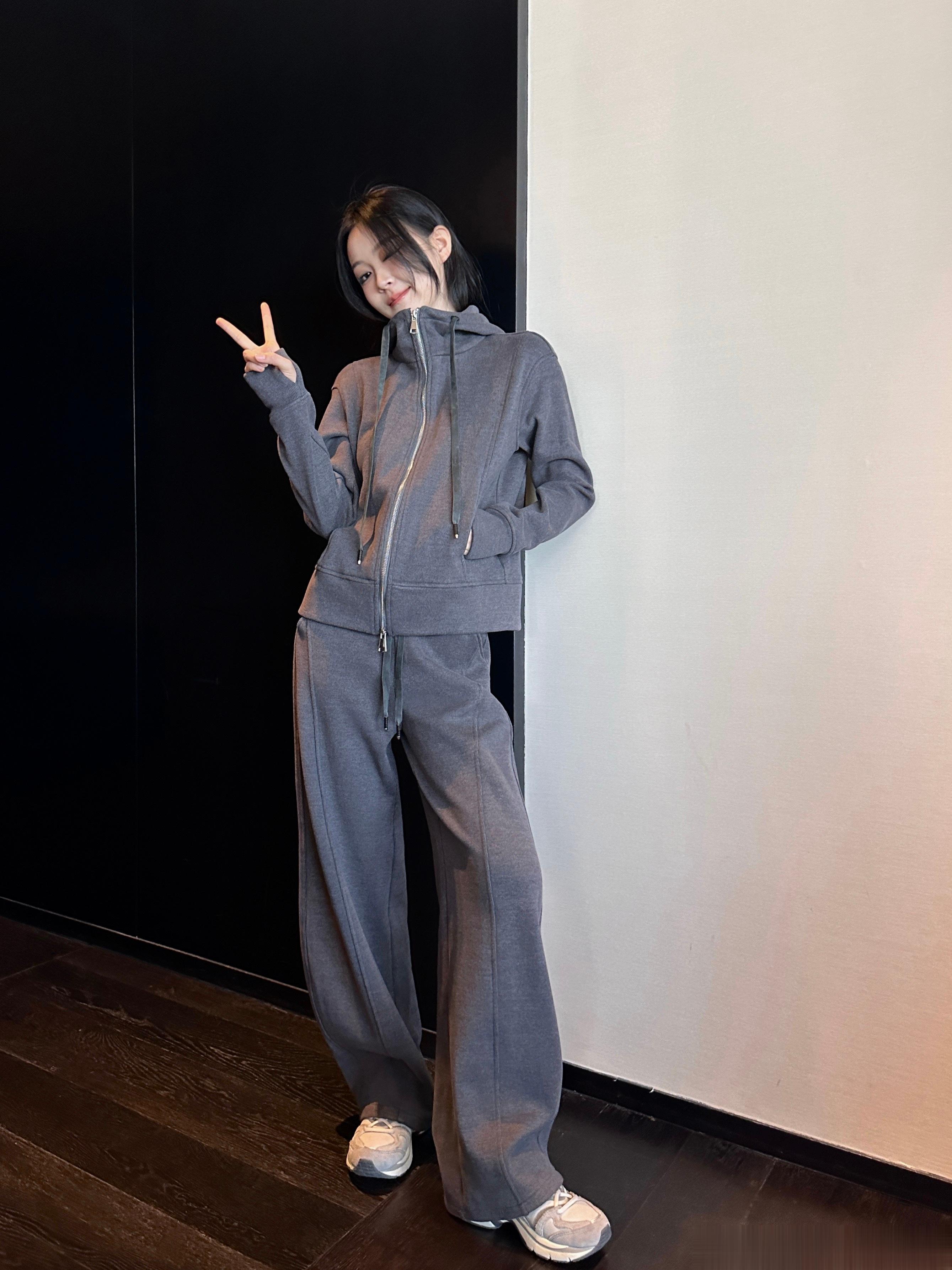 版型也是最刚刚好的 常规肩宽小上衣外套 但不完全紧身 宽松阔腿裤版型 特别显瘦