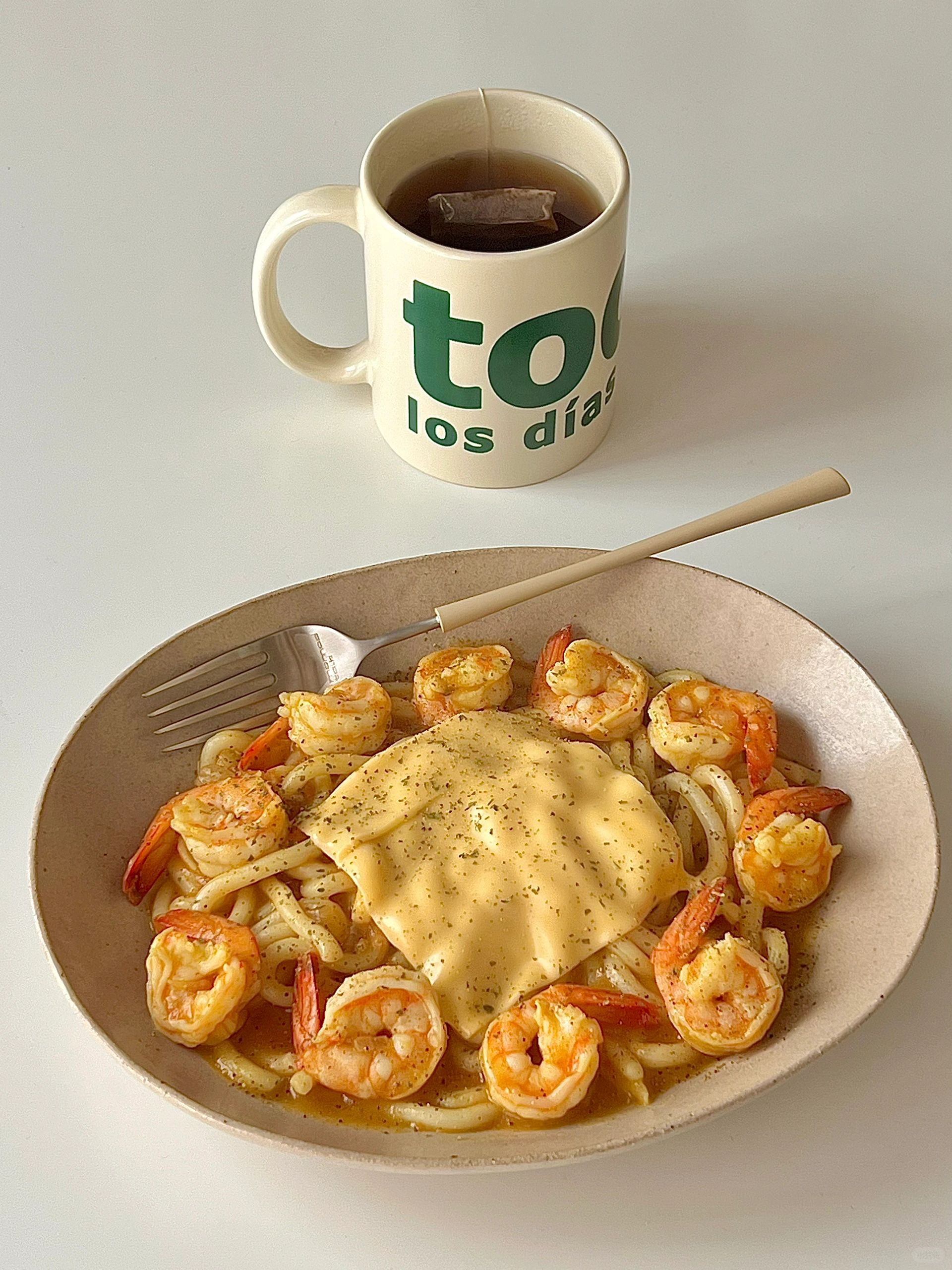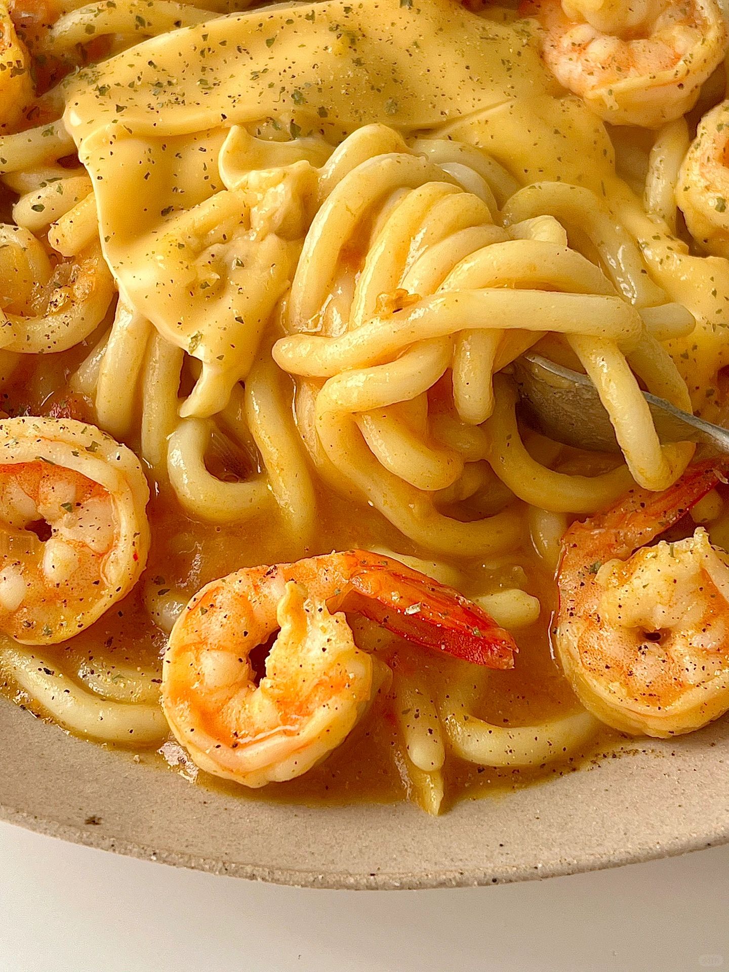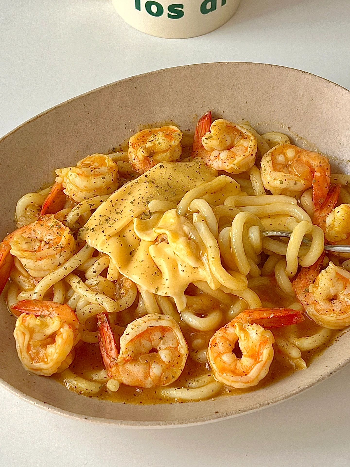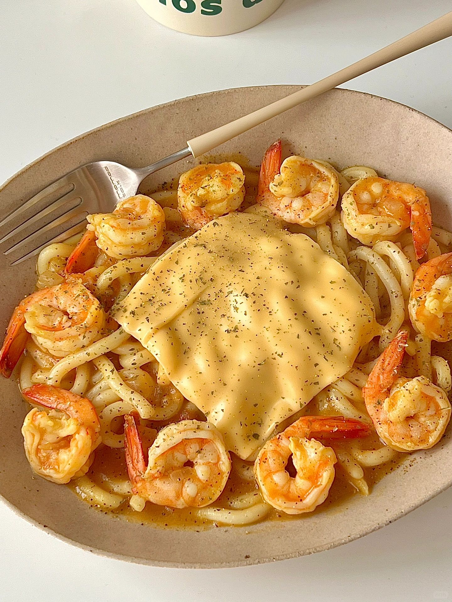 一人食🍴芝士咖喱虾仁乌冬面🍝好吃到舔盘😋