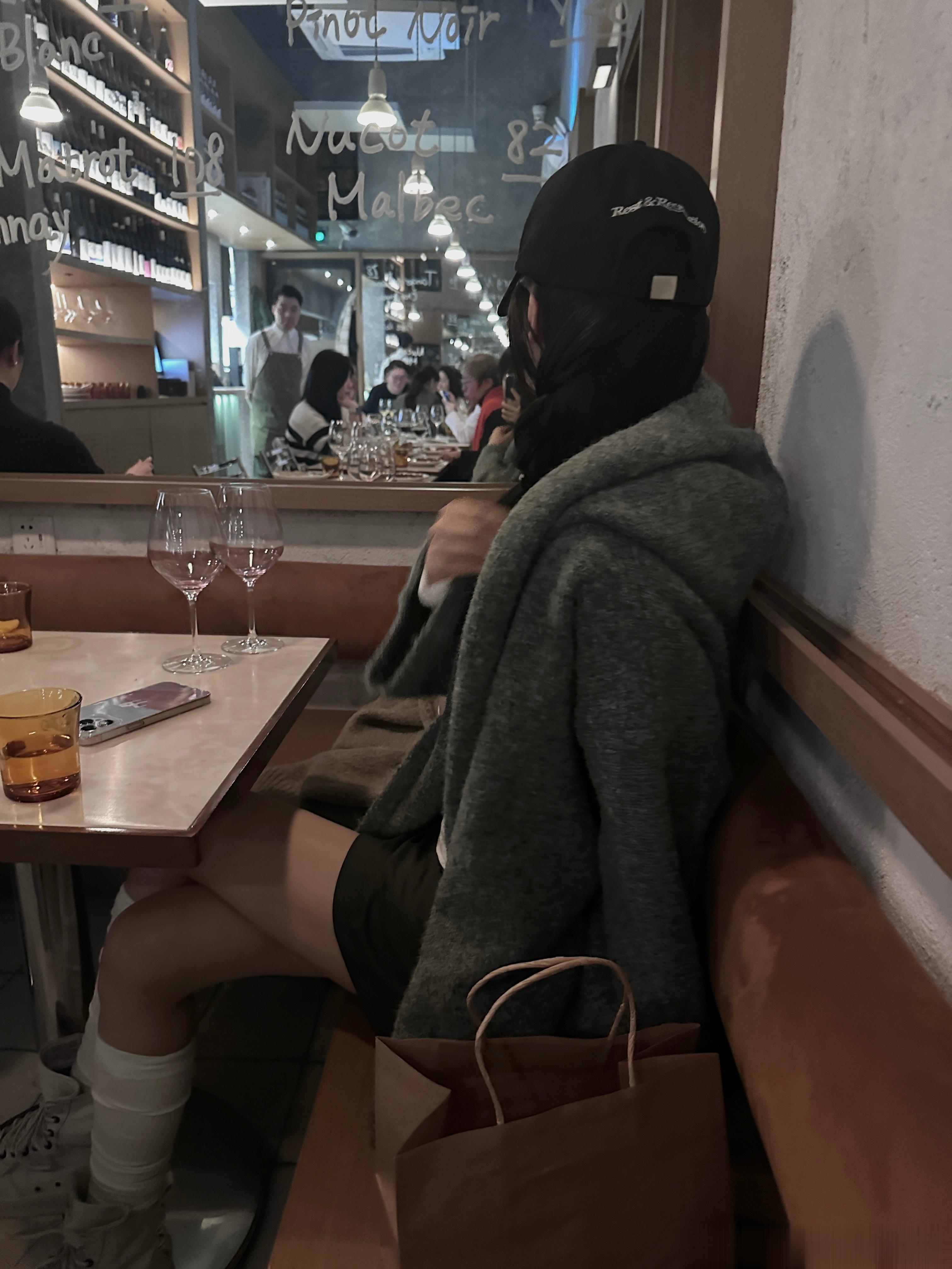 至于现在 可以配合深蓝色牛仔裤 搭配薄薄的t恤或羊绒打底衫 加上轻巧舒适的软鞋子 再拎个麻布袋子 清清爽爽逛街去吧。