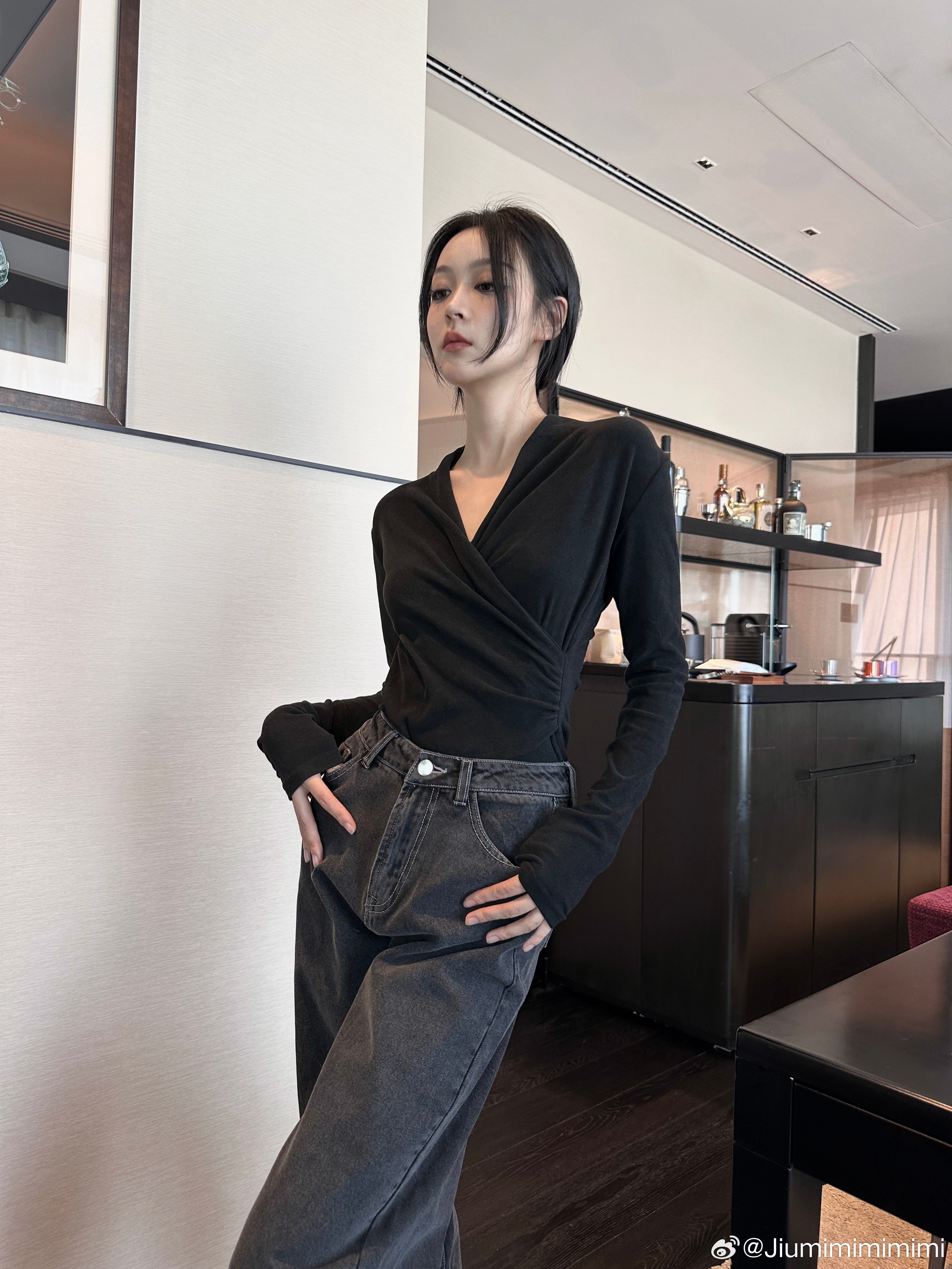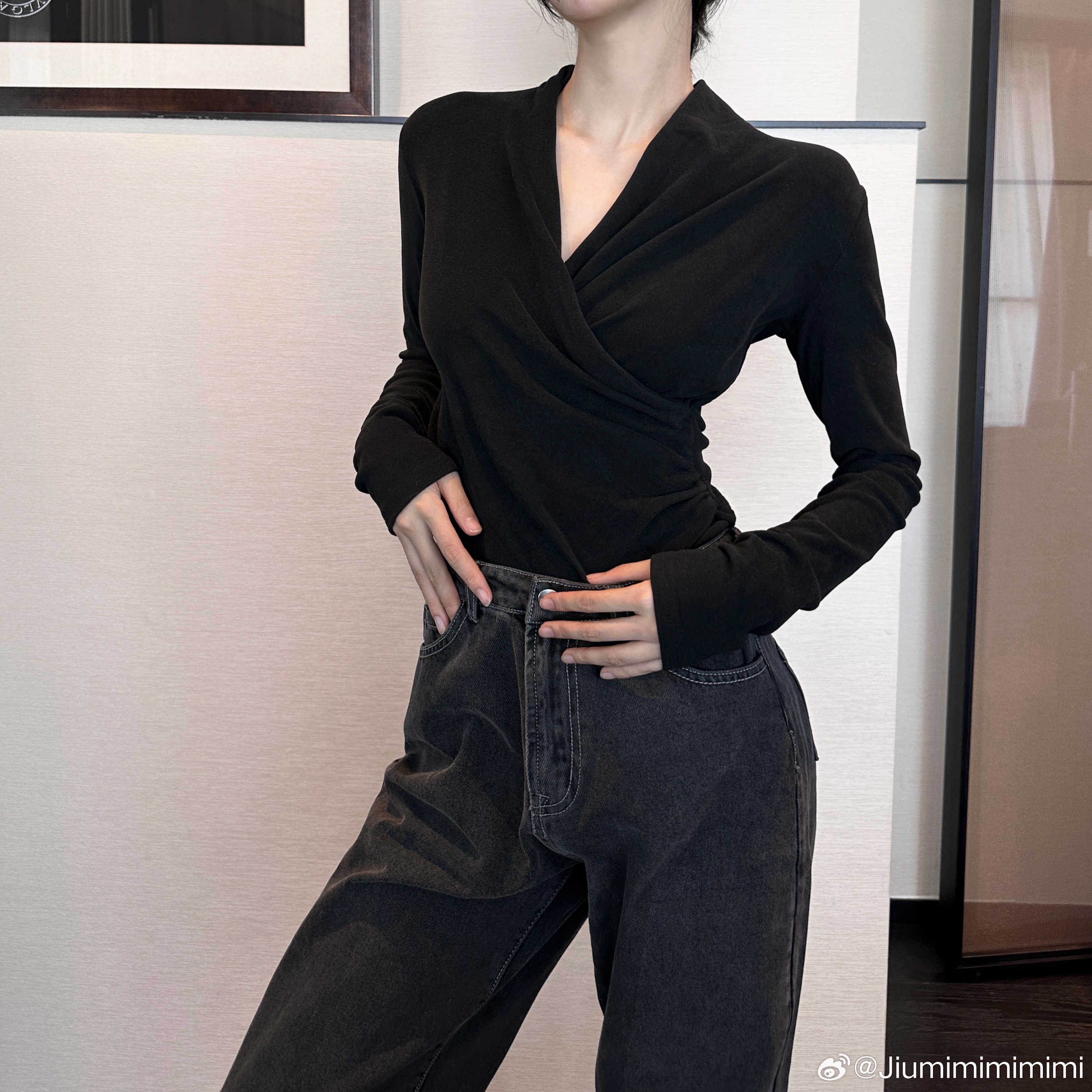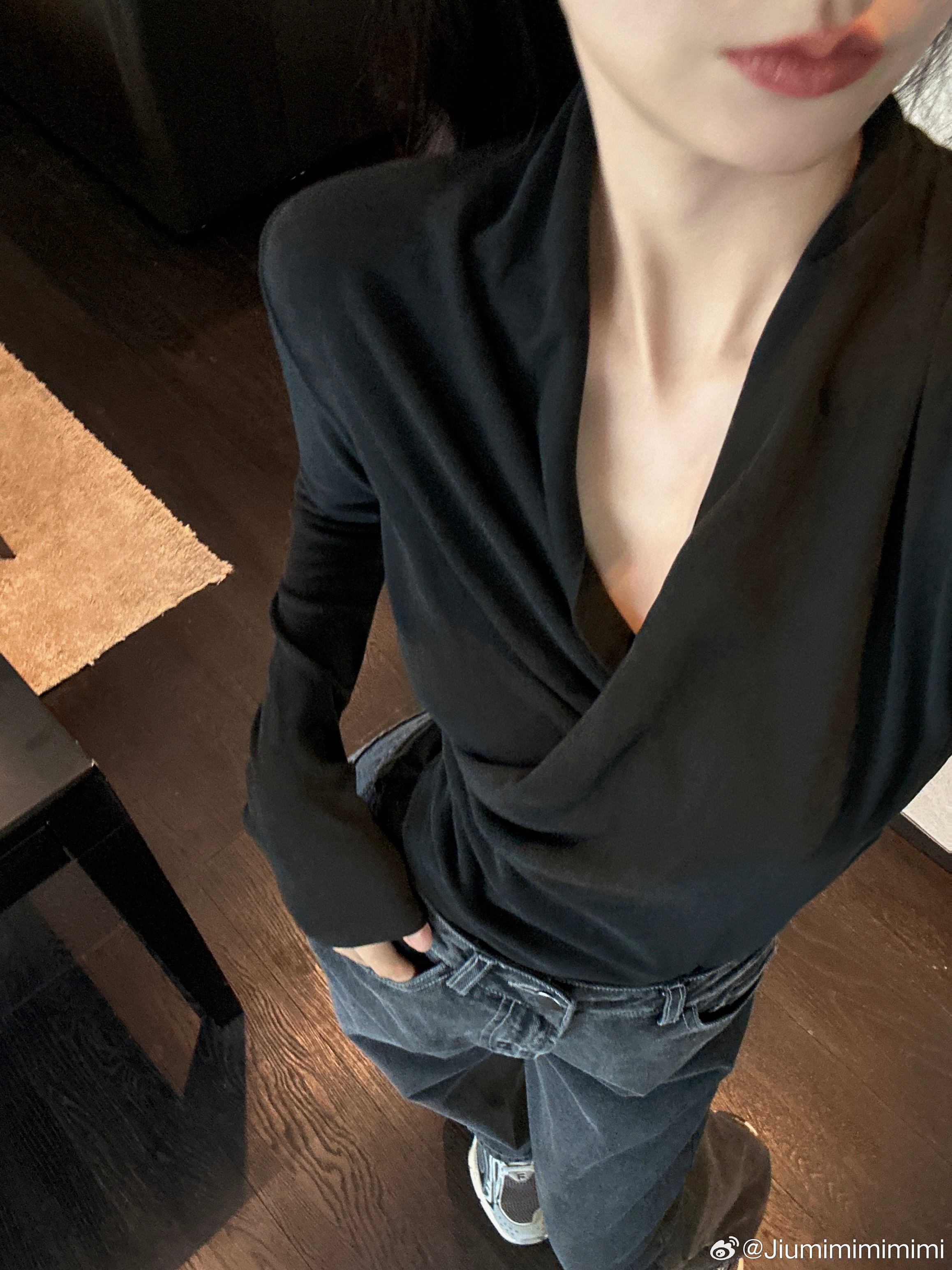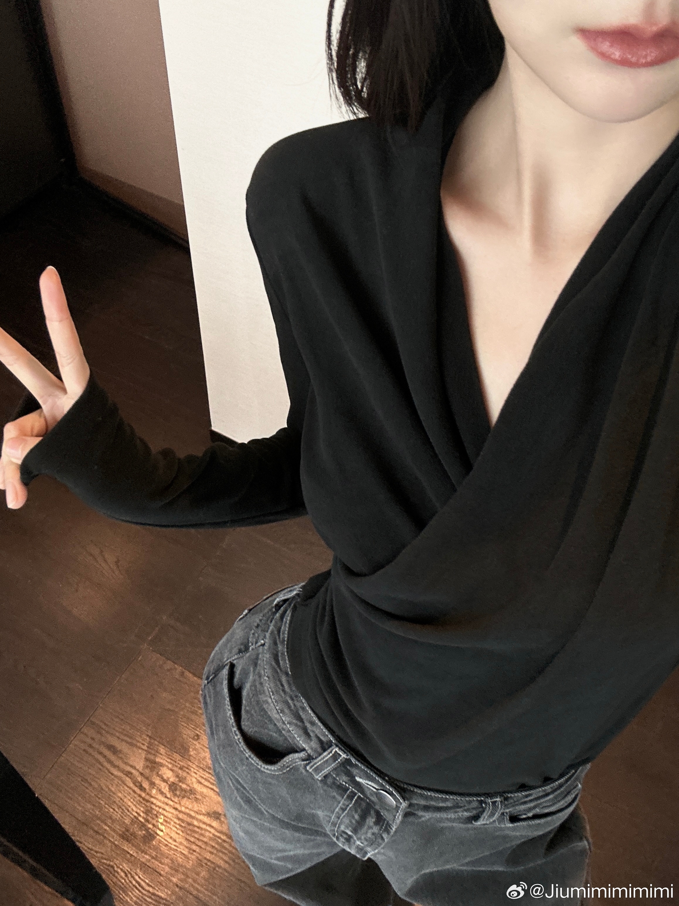 交叉门襟 打造出堆堆领的立体层次感 同时叠加出小v领的造型感 而v领总是不挑人的 比常规领口更显瘦显气质