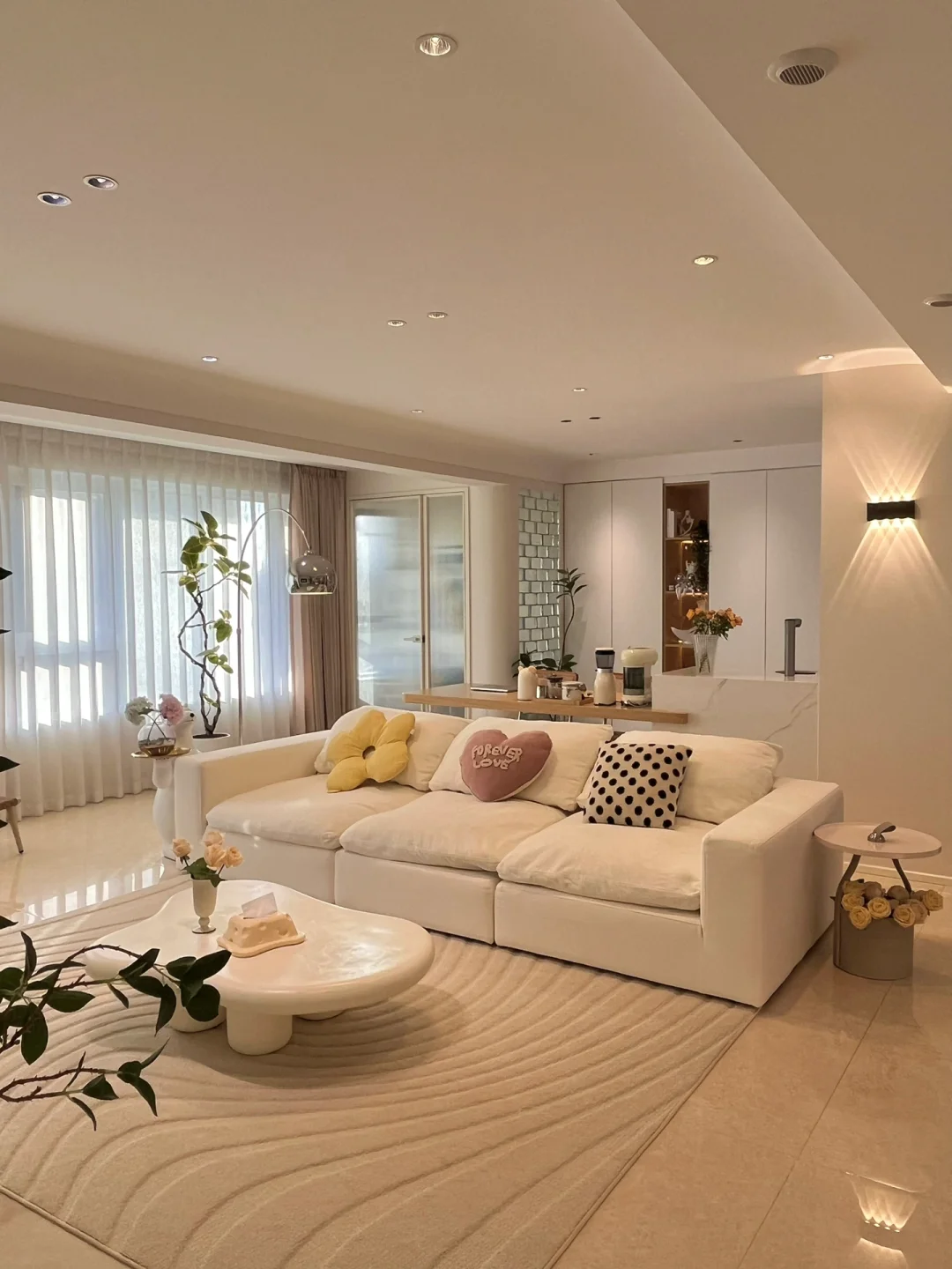 建筑140平,套内120平 好多人说我家不止120平 显大的原因可能是通铺了地砖 没有过多装饰,无主灯无复杂吊顶 是我简约又不简单的家呀|