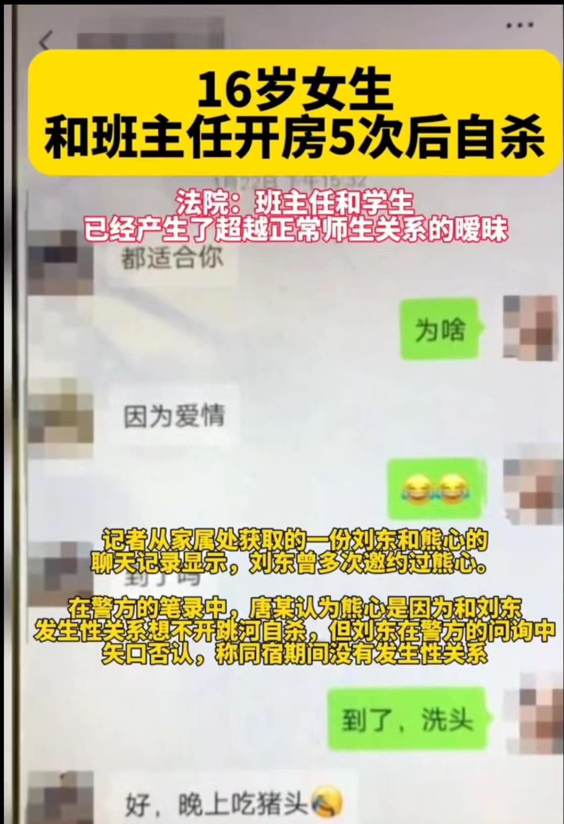 “让人痛心!”重庆,一16岁女生与班主任男老师同宿5次后,女学生自杀跳水溺亡。事