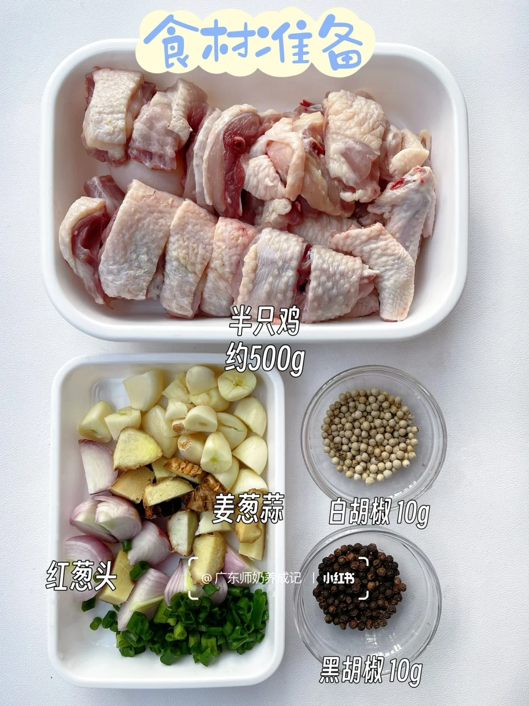📝【食材】:鸡,黑胡椒,白胡椒,姜葱蒜,红葱头