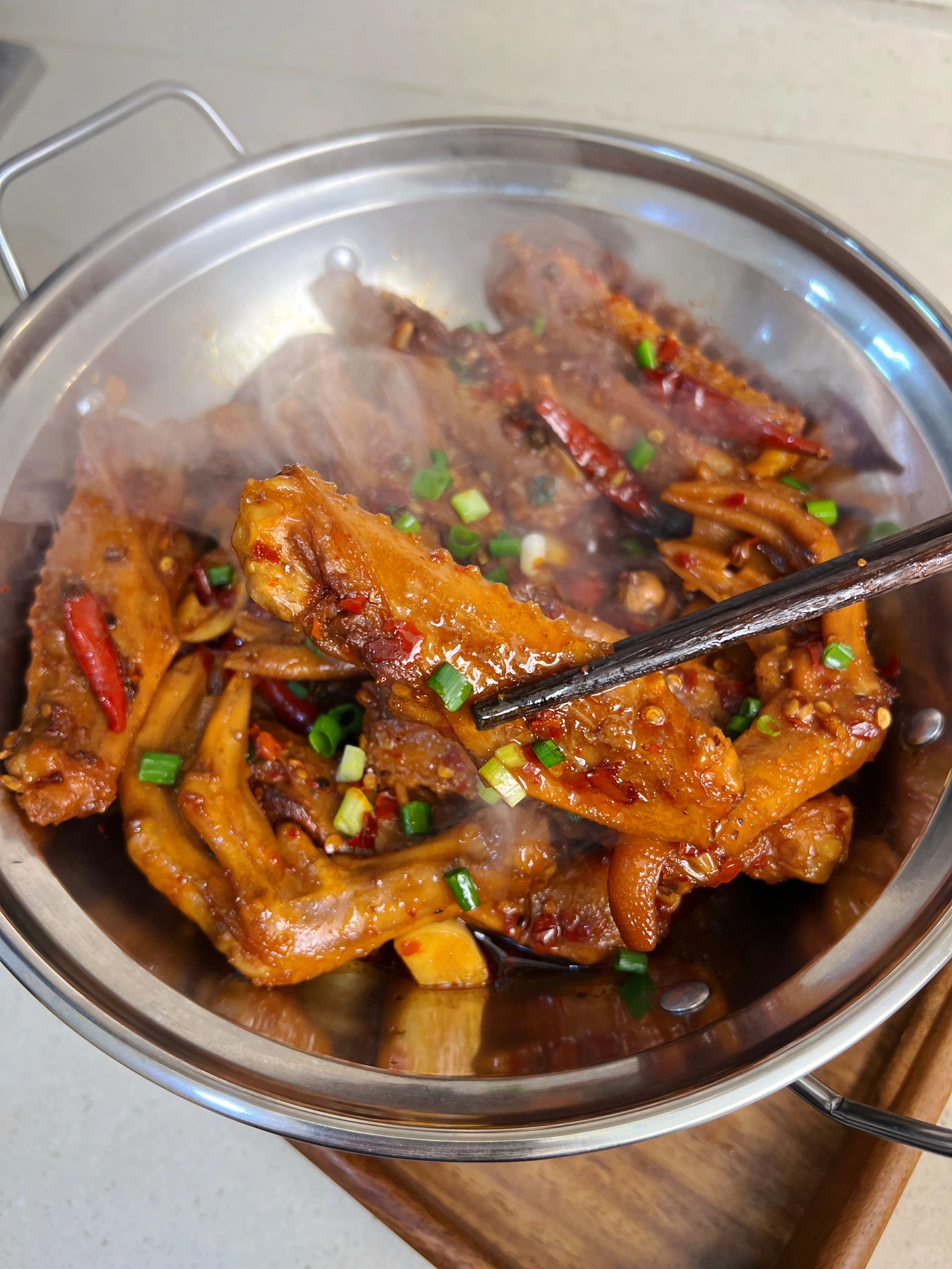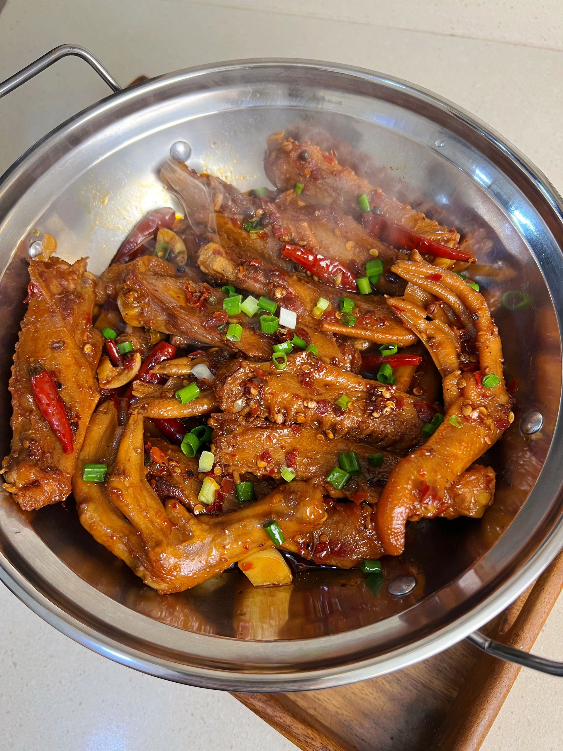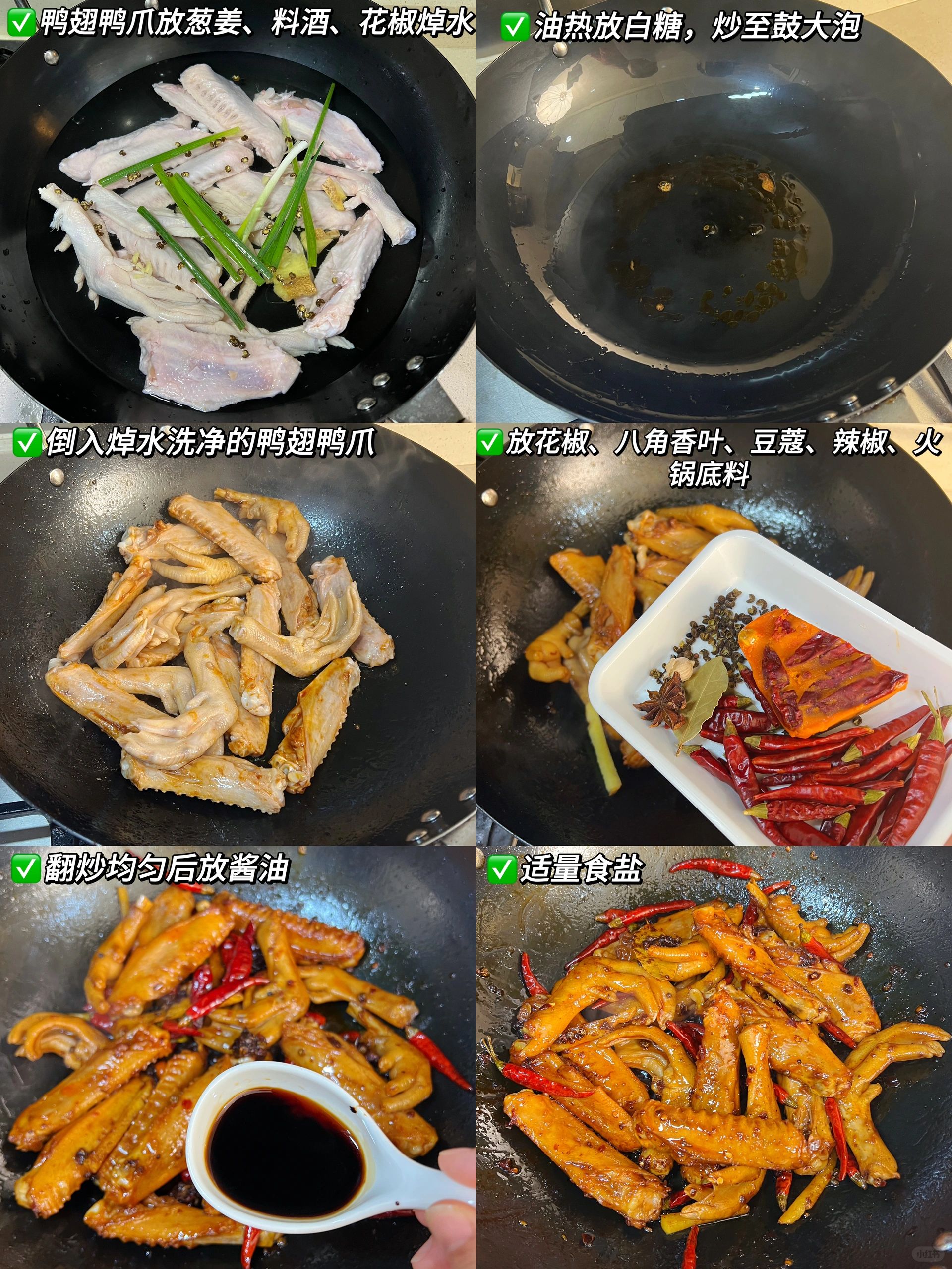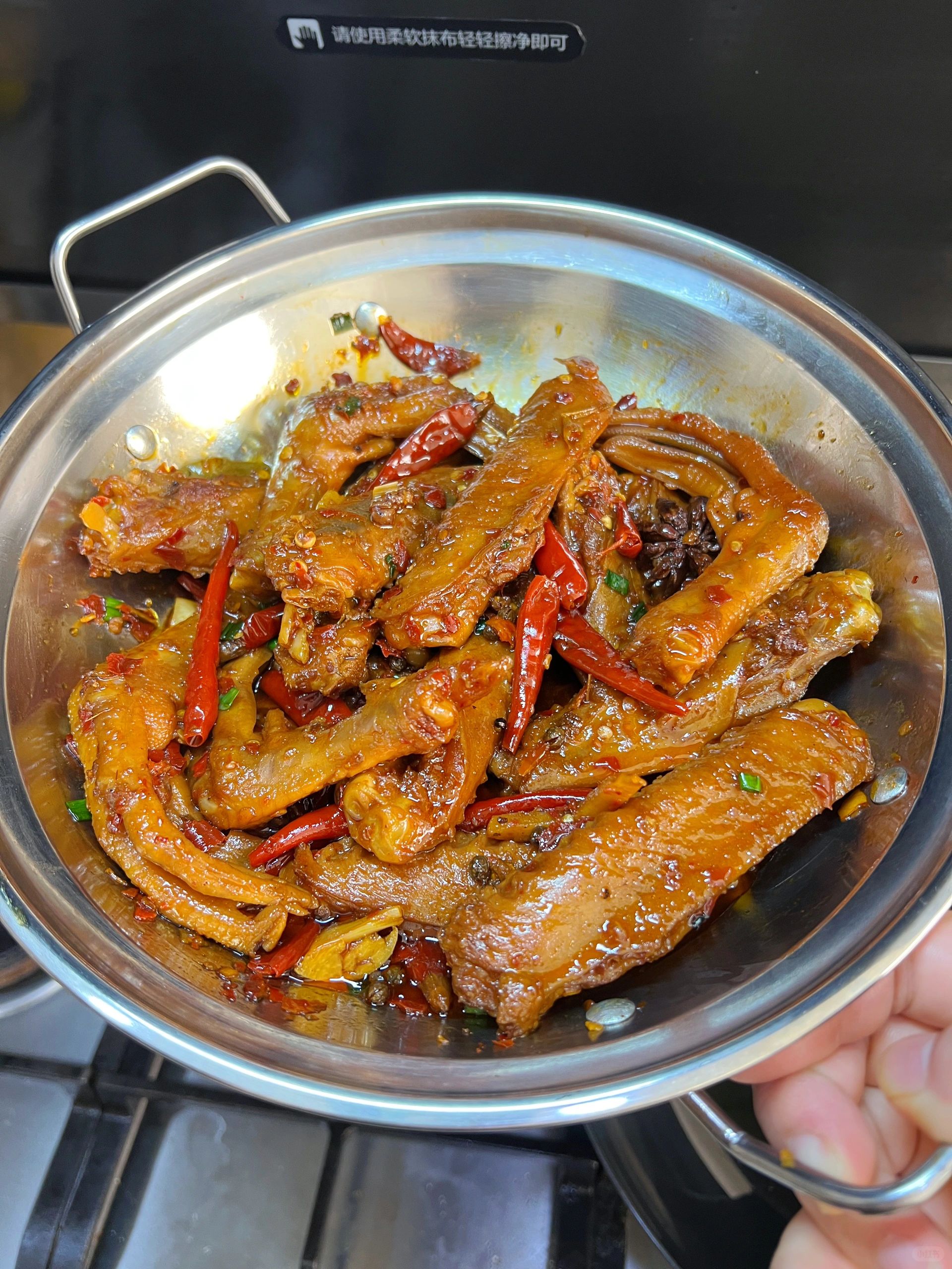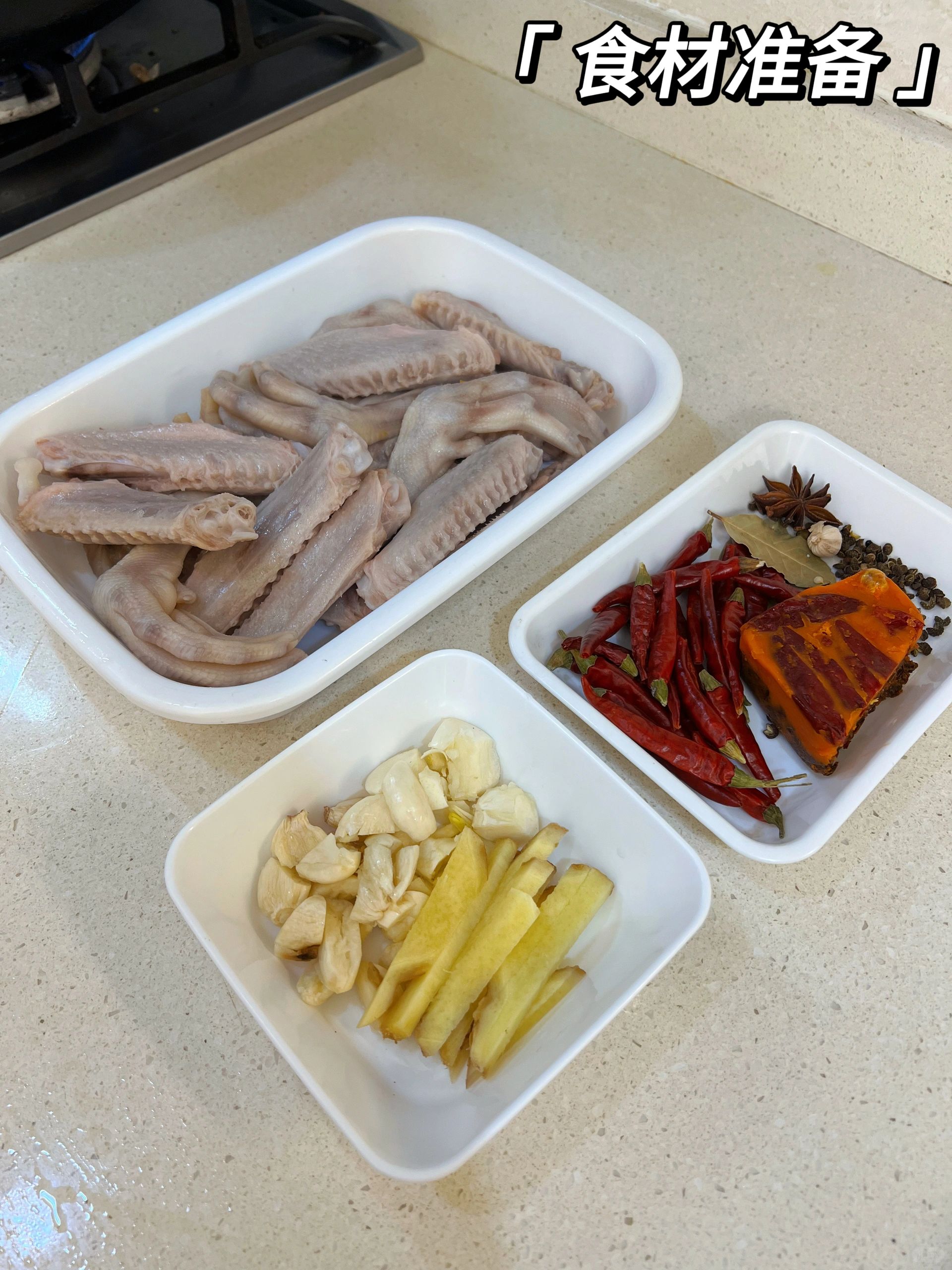 🍀食材:鸭翅、鸭爪、八角香叶花椒、豆蔻、葱姜蒜、干辣椒;