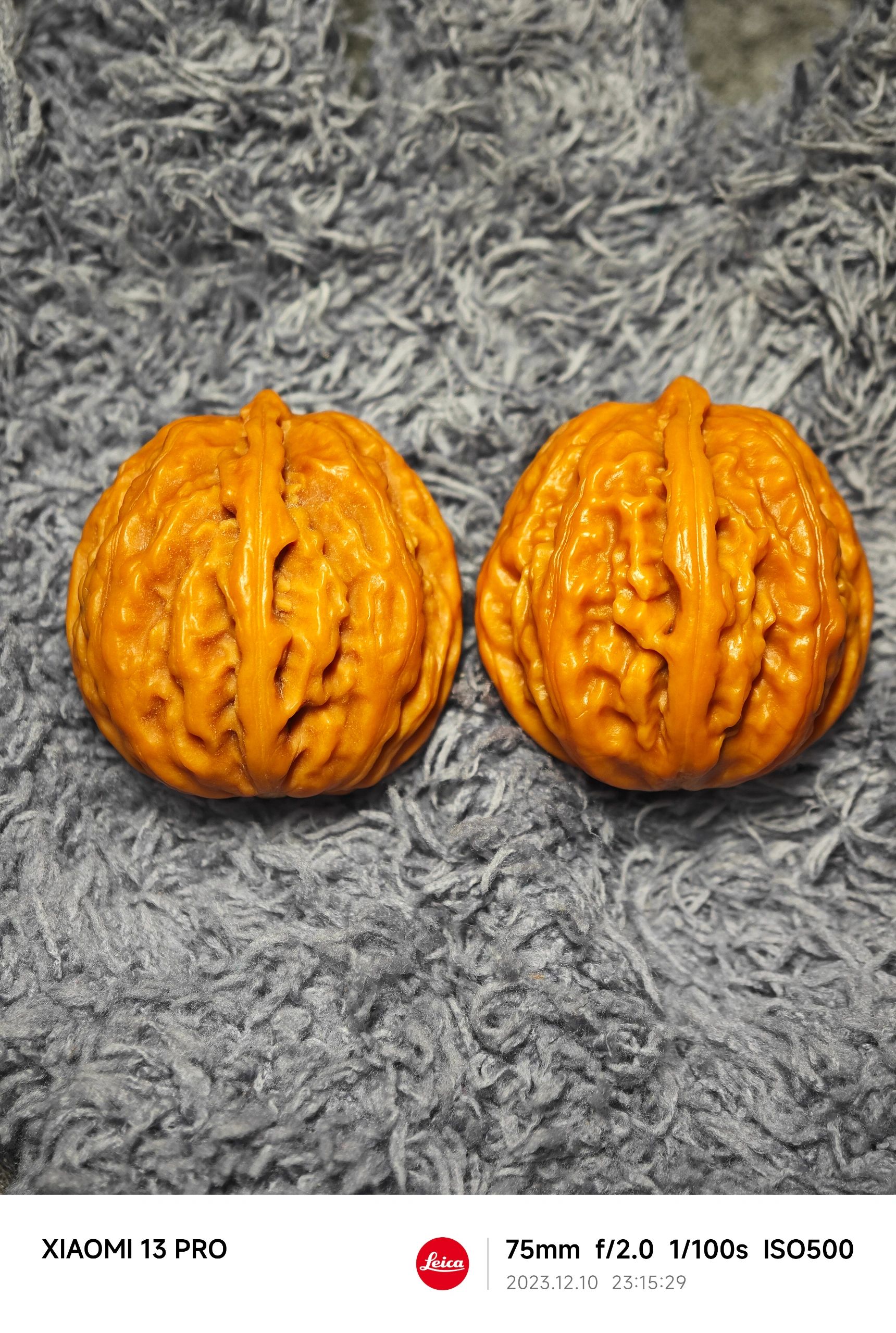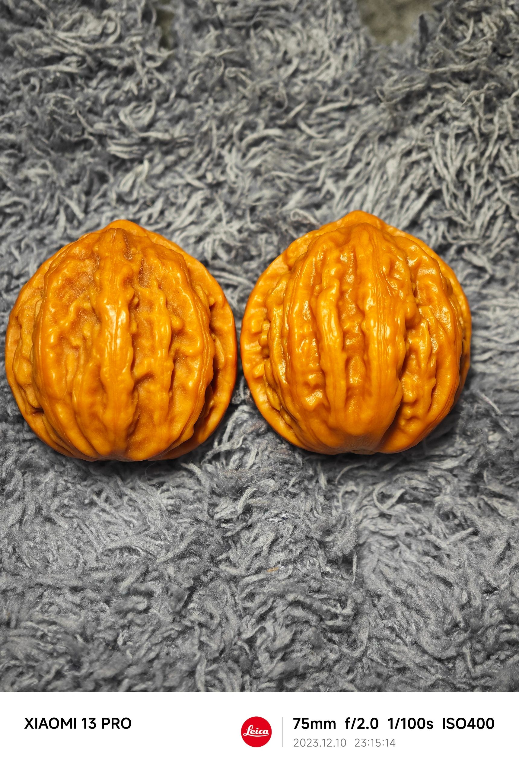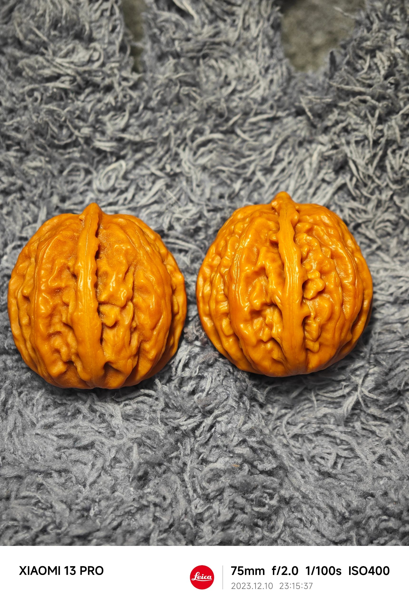 一对小核桃,配对尺寸还行,差0.2内,价格倒是不高,所以尺寸精不精,不一定和价格正相关,差0.2mm内,也完全不能作为工作室吹捧的标准,谁都能做到,只看愿不愿意而已。