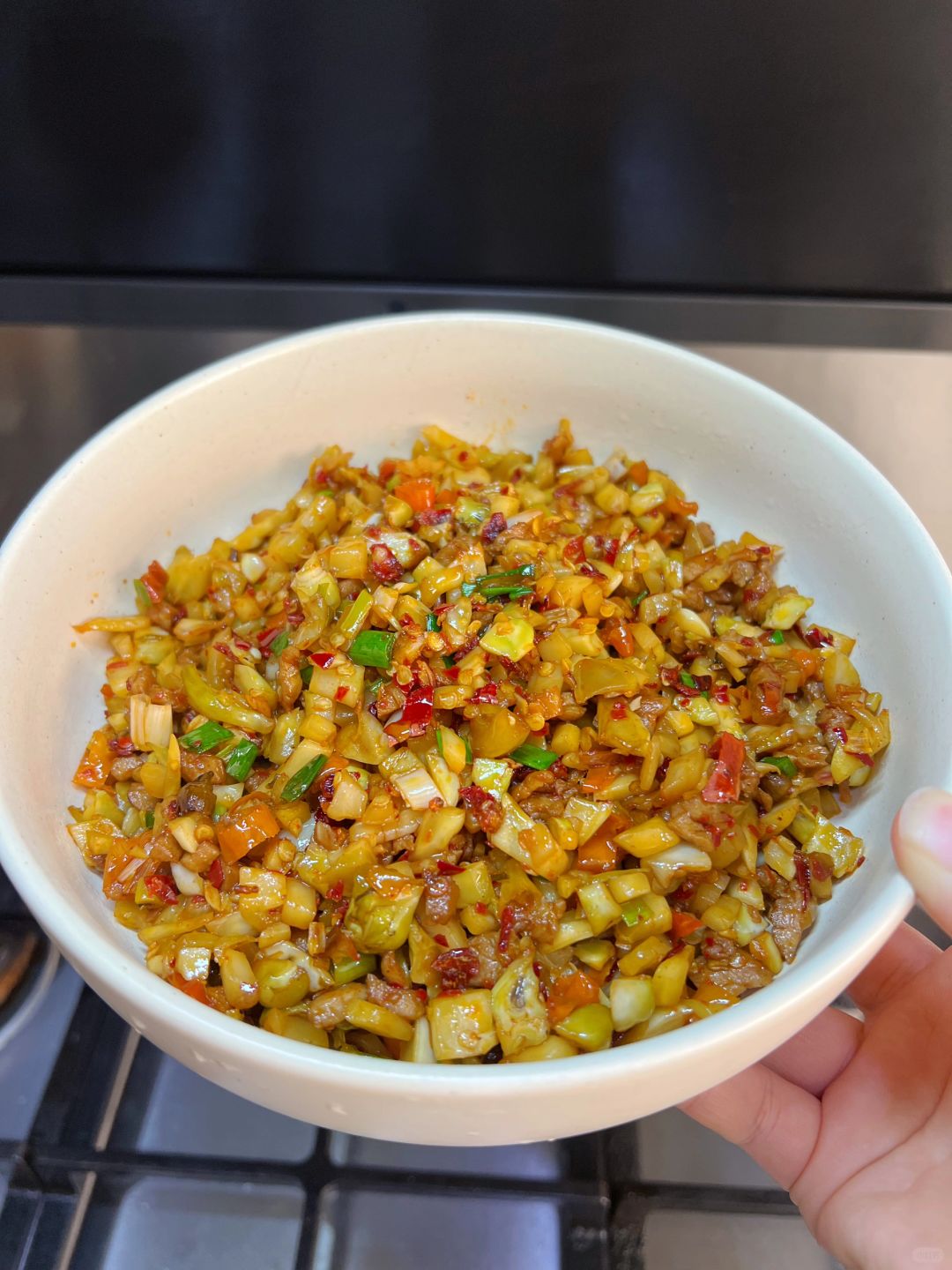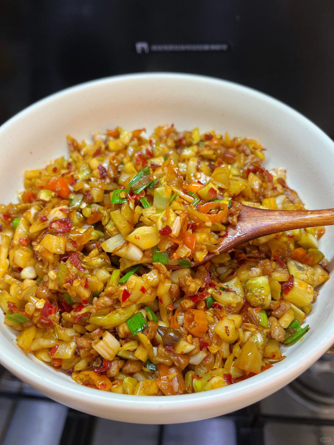 到吃儿菜的季节啦,除了炒着吃,做成泡菜,再和肉末一起炒,直接炫了两大碗米饭[色色R][色色R] 🍀食材:儿菜、泡椒、猪肉、蒜头、蒜苗; 👇做法: 1、猪肉放酱油、白胡椒粉拌匀腌制,油热放猪肉炒香,再放蒜头炒下; 2、倒入儿菜炒匀,放适量盐、生抽、酱油、蚝油、辣椒面、白糖炒一分钟,放适量蒜苗、鸡精炒15秒即可;