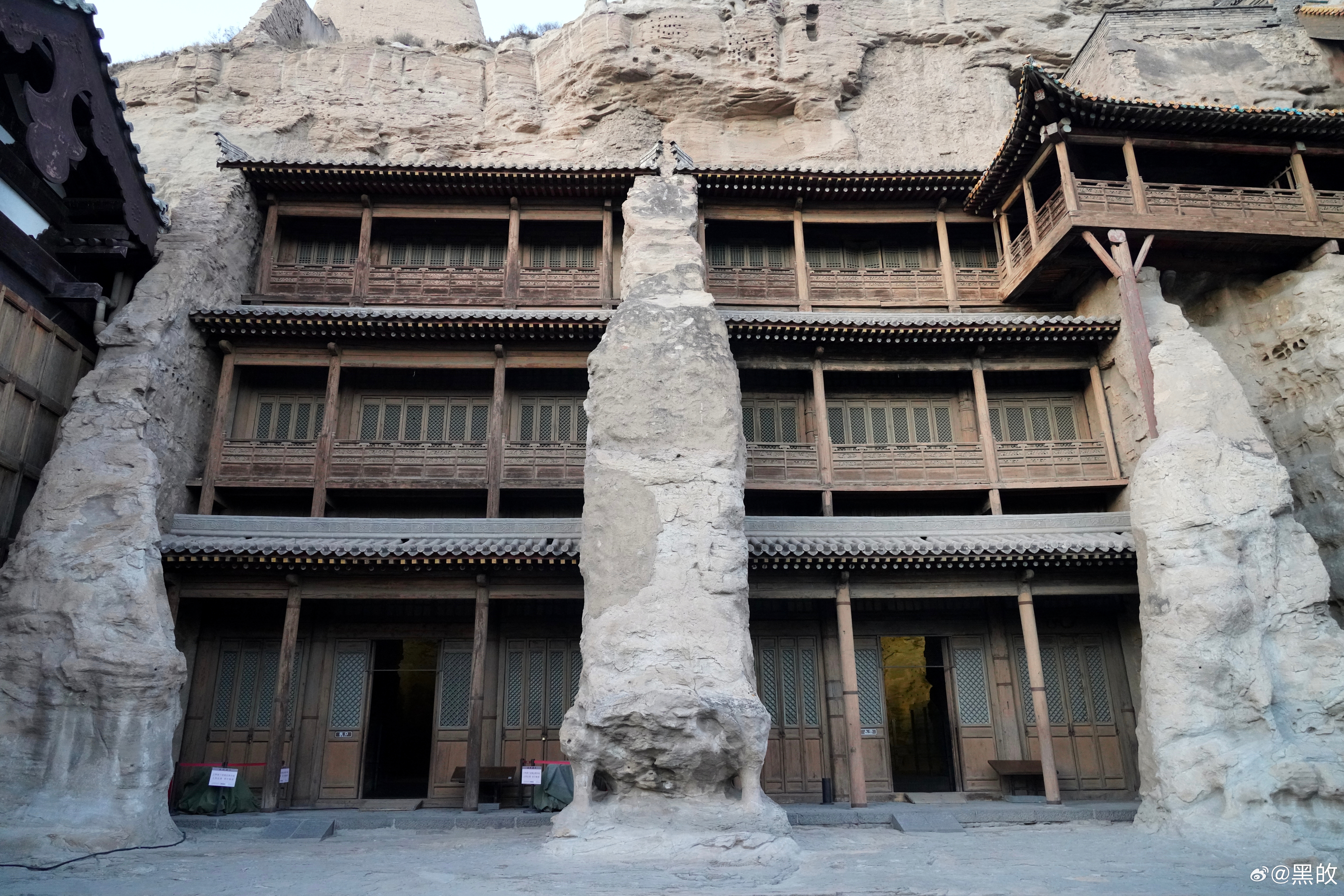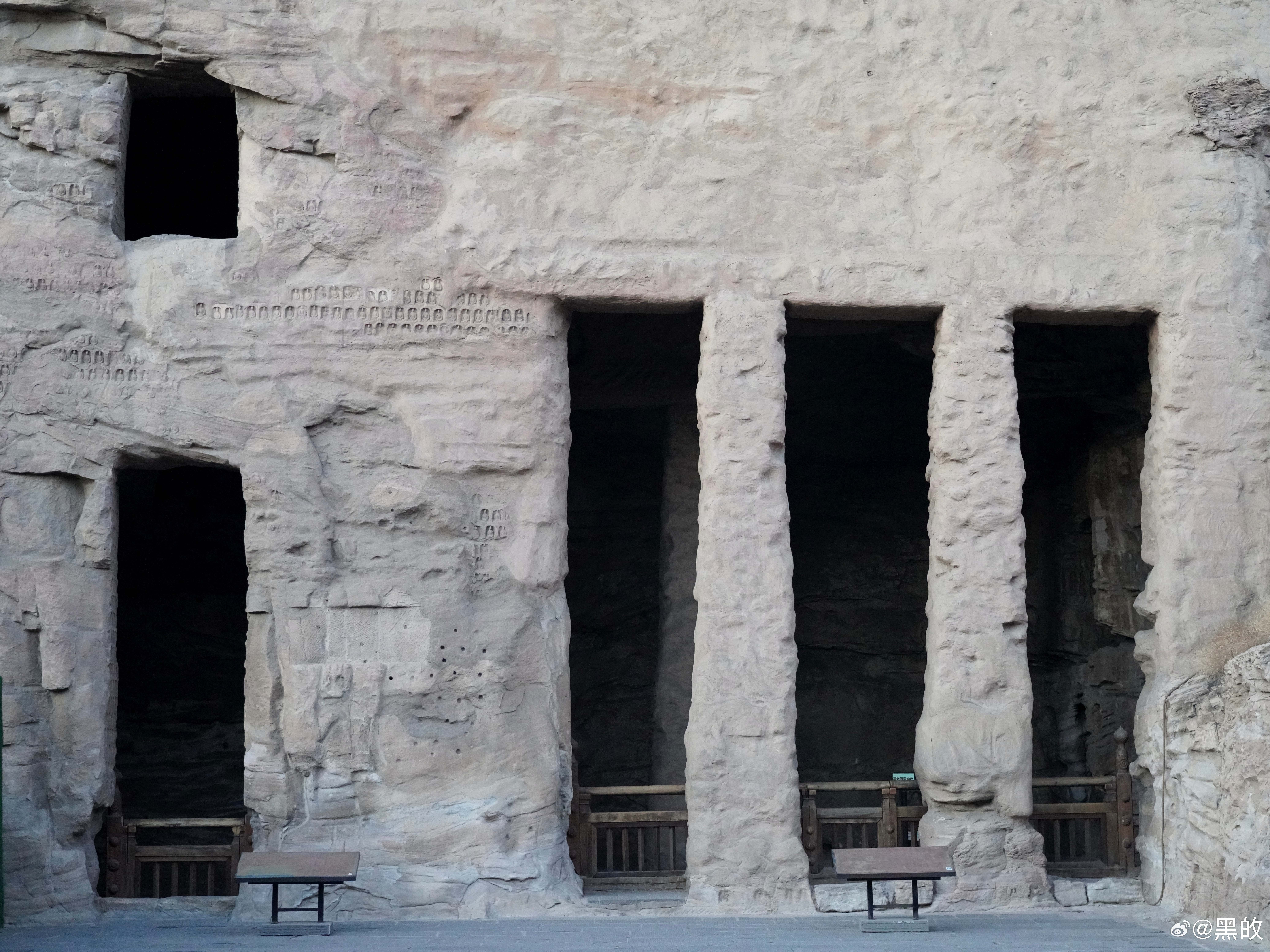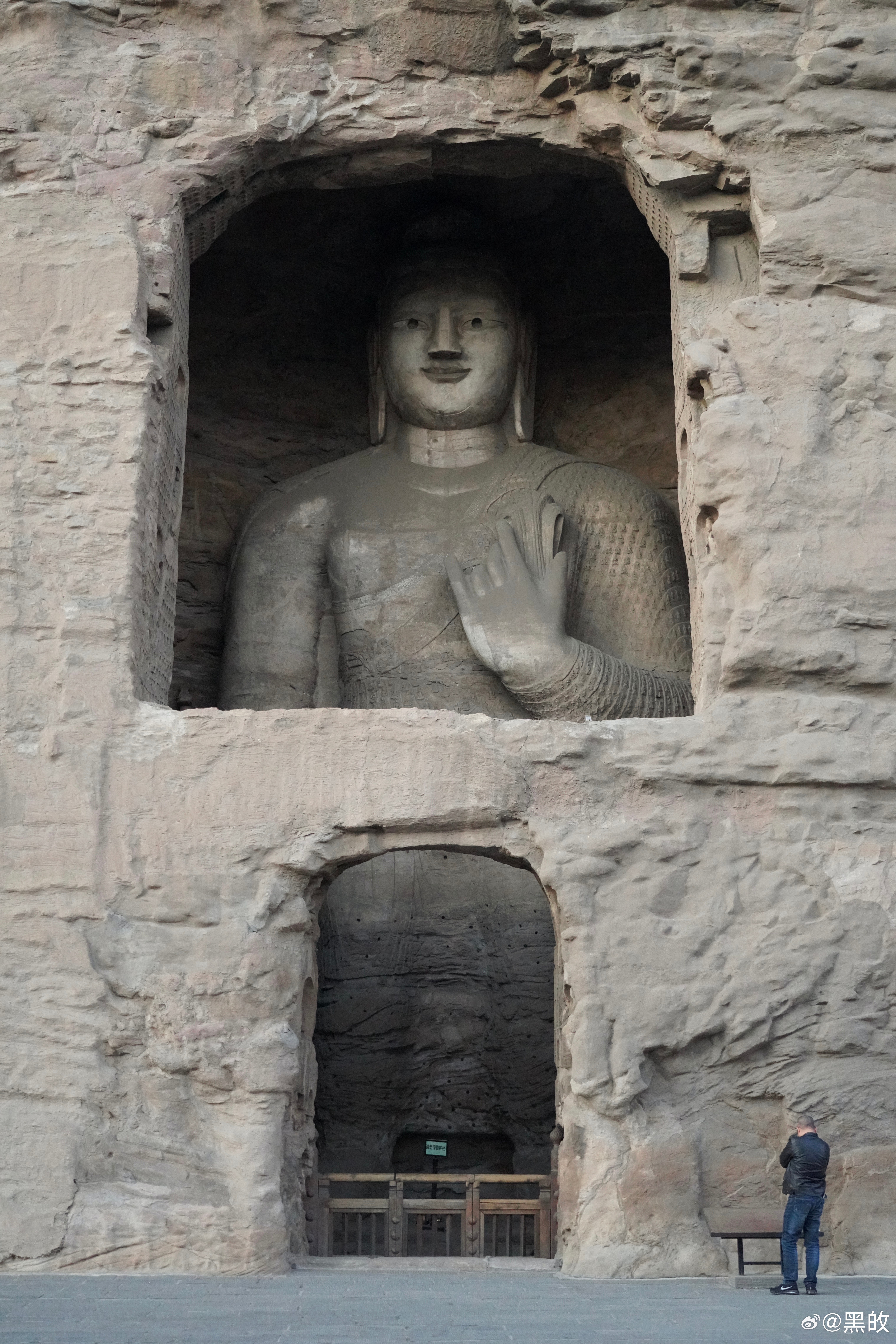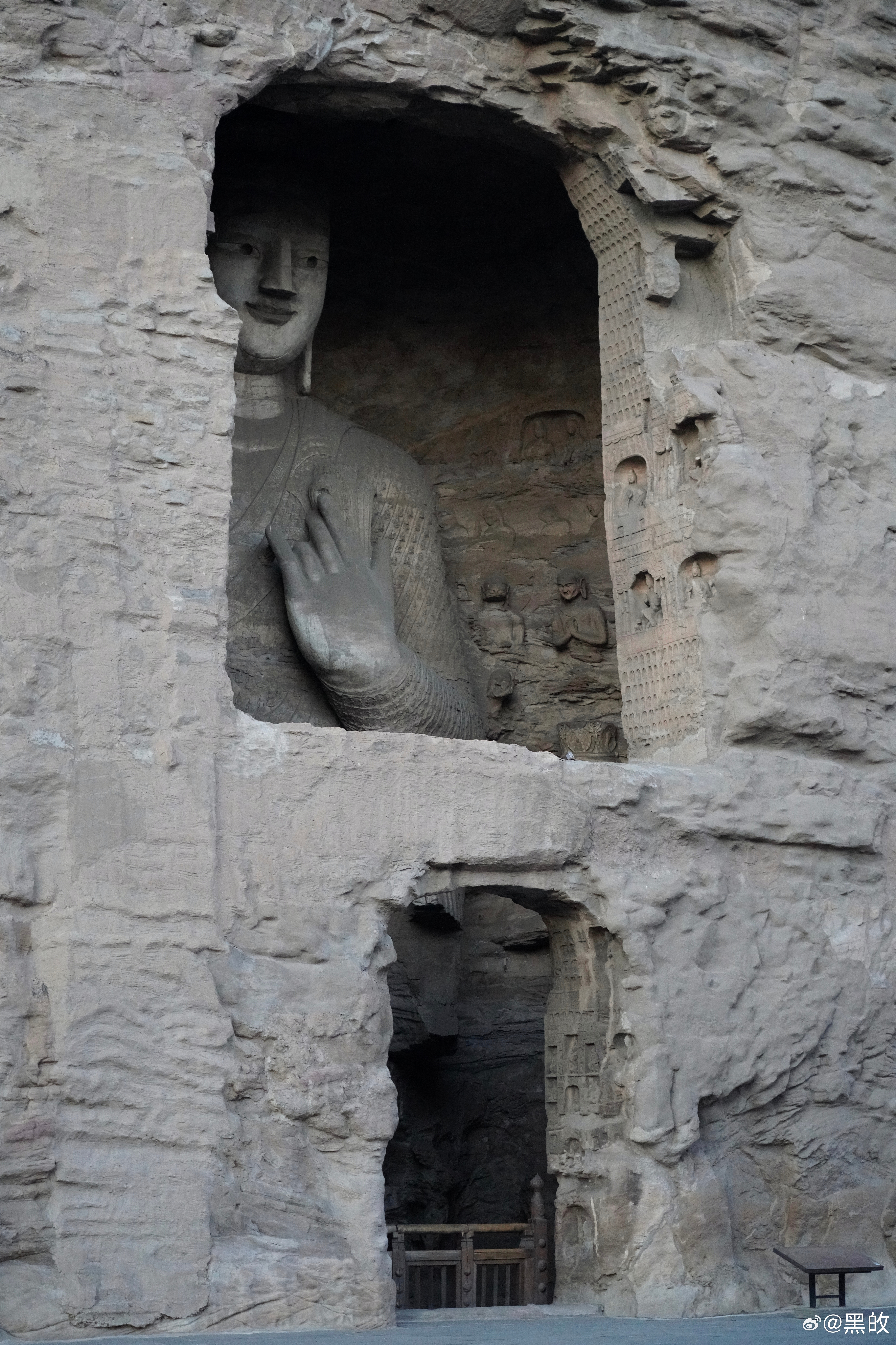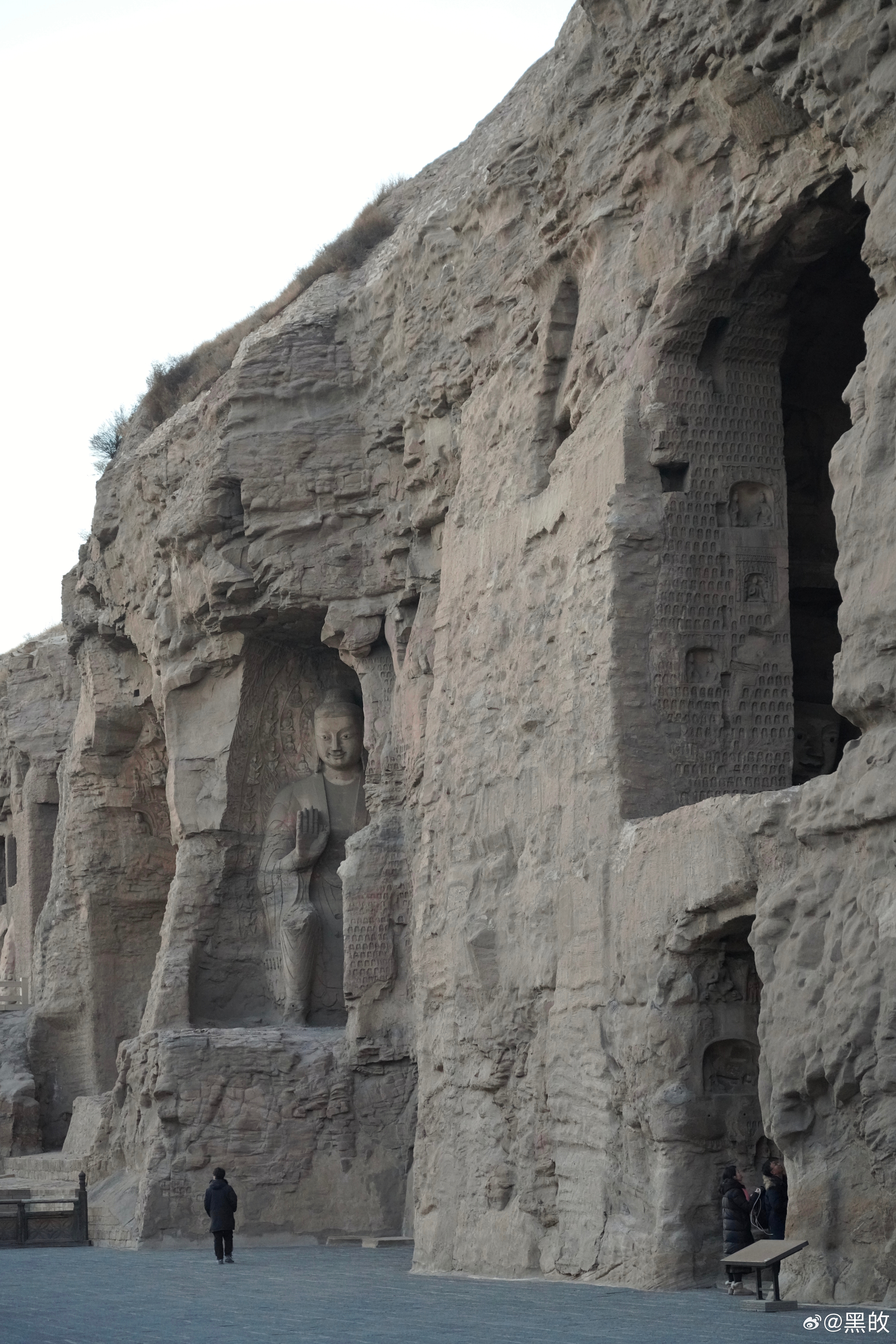 冬天的黄昏很是短暂,却非常浪漫,从五号窟出来的一瞬光景,绕到昙曜五窟又随手拍了几张,有一种亘古山河犹在的震撼之感,反复回响