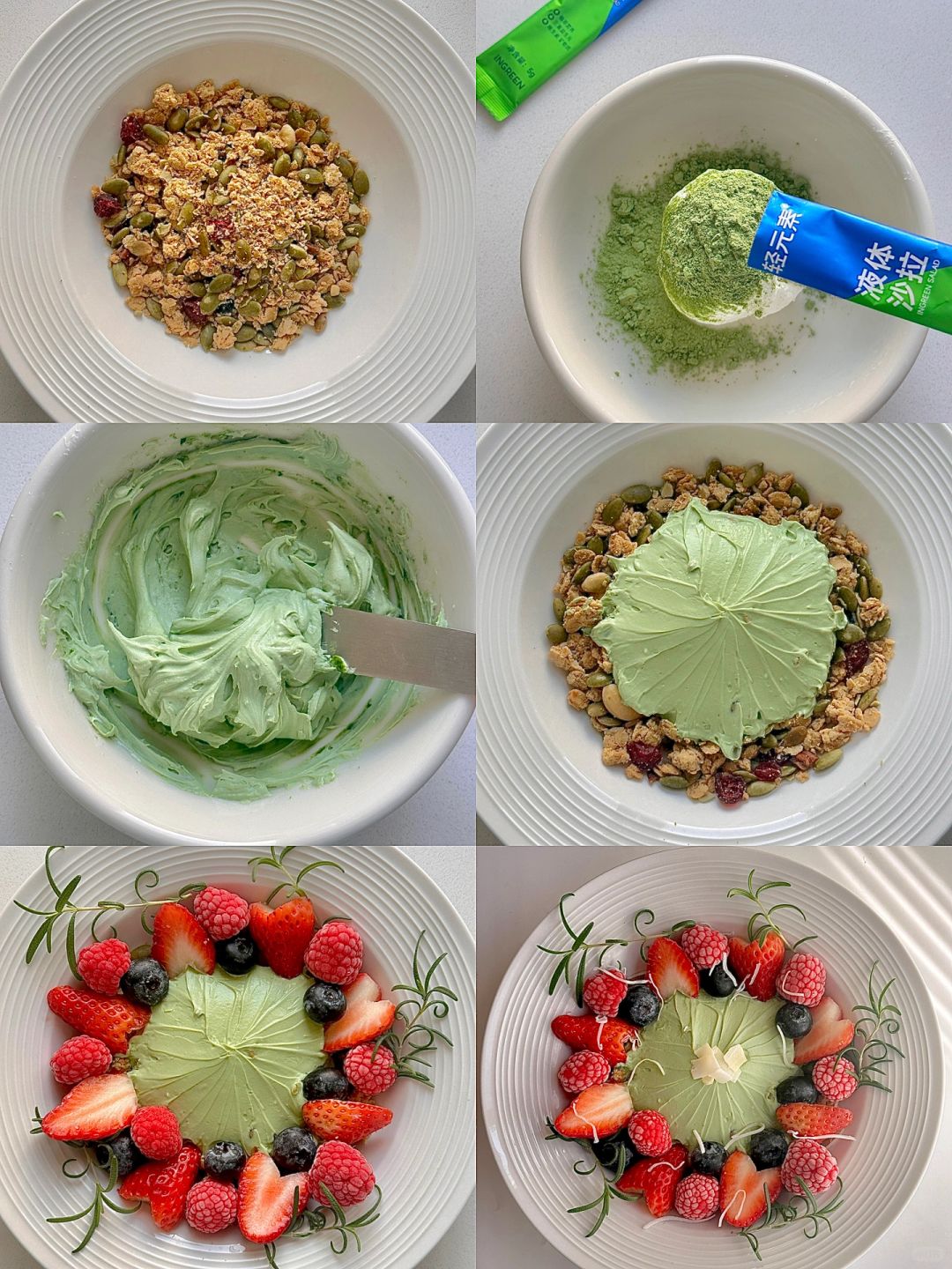 今日份快手早餐是不用开火的高营养酸奶碗哦 最近每天都会喝一杯蔬菜汁清理身体 没时间榨汁的时候我会用液体沙拉替代 这个沙拉是上周被朋友种草的 最近每天起床一杯,据说是专为身材管理人群和缺乏蔬菜人群定制,配料表营养很在线,淡淡抹茶味 液体沙拉膳食纤维清新的绿色搭配红色的莓果依然是🎄圣诞氛围满满哦 🌟所需食材 轻元素液体沙拉 希腊酸奶 烘焙燕麦 草莓🍓 蓝莓🫐 树莓 椰子碎 做法如下⬇ 烘焙燕麦铺底 希腊酸奶+轻元素液体沙拉搅匀铺在燕麦上 周围摆上莓果迷迭香装饰
