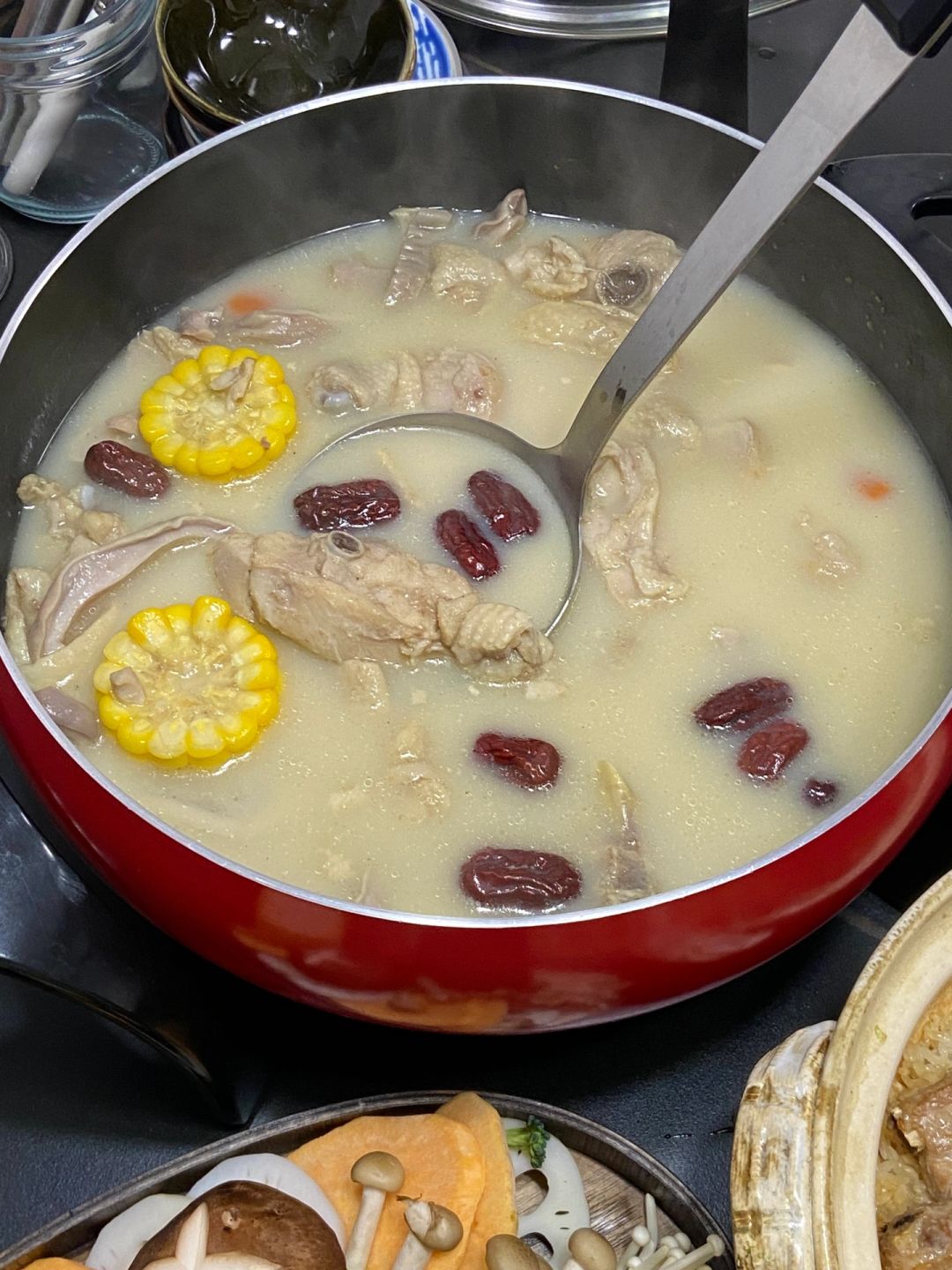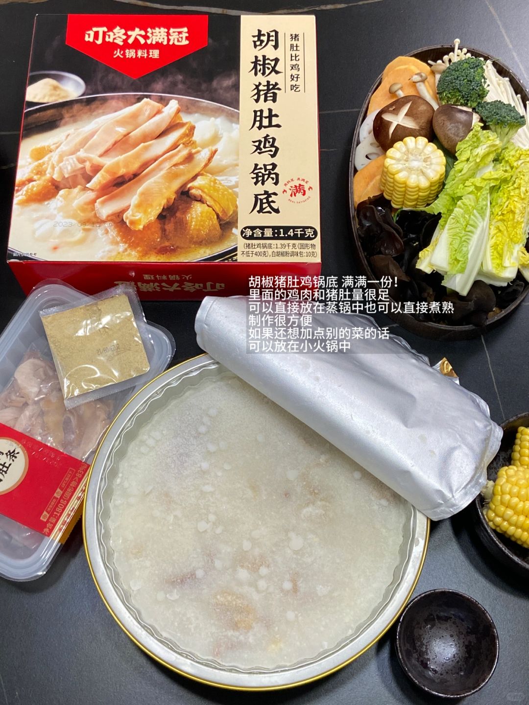 还有美味的猪肚鸡火锅!很方便,这样一份2个人吃刚刚好,还有专门的胡椒包,量可以自己加,里面的鸡肉和猪肚味道也很完美,我外加了一点枸杞和红枣,又准备了好些素菜,大冷天的喝上一碗猪肚鸡汤,别提多满足了!