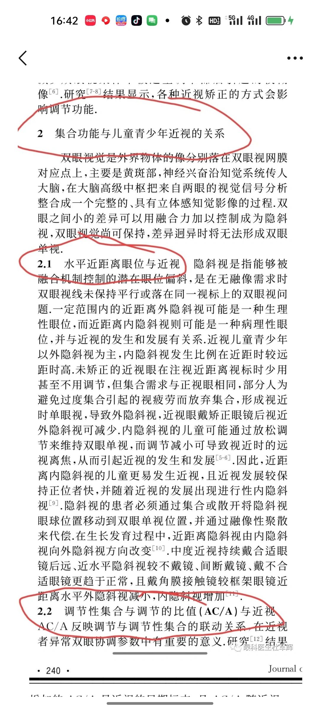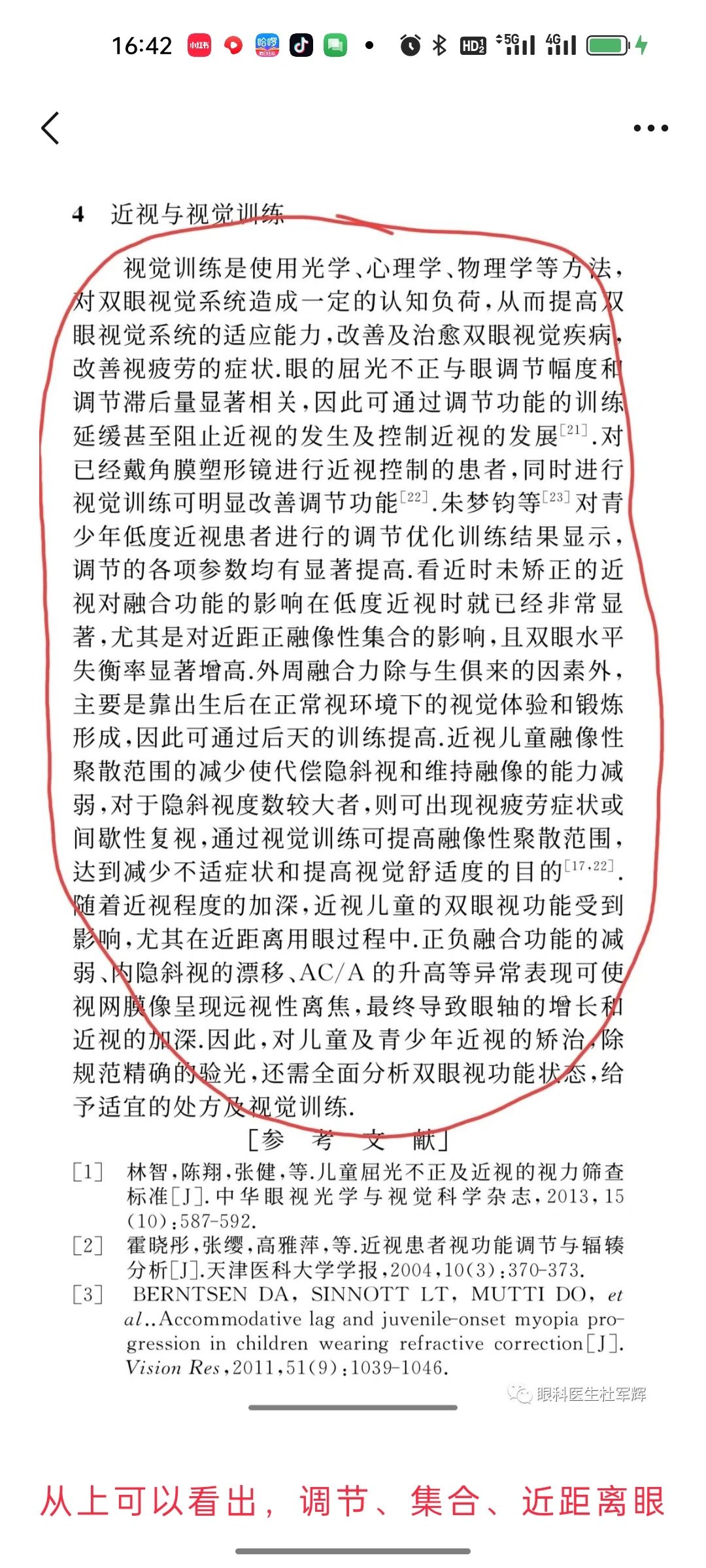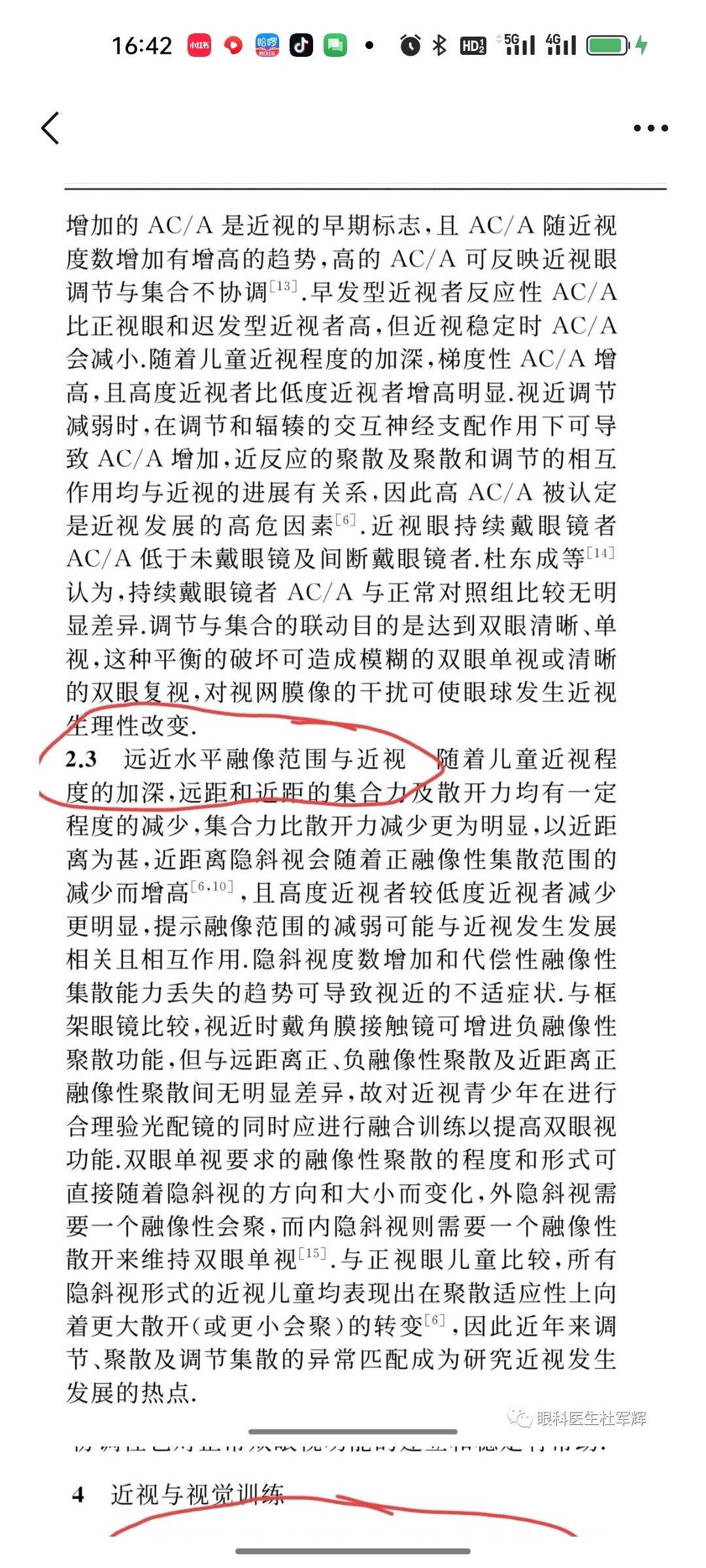 从上可以看出,调节、集合、近距离眼位、AC/A、融像范围与近视进展密切相关,这些都是已经证实的,至少把这些检查必须要完善。