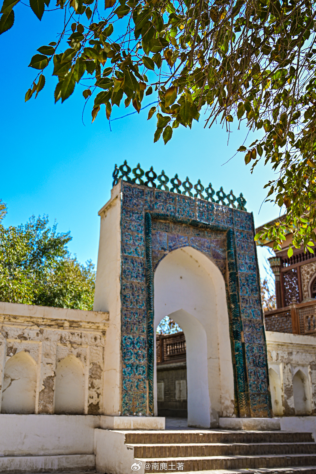 入口最精美的建筑是为纪念第二代汗王王妃,著名的女诗人阿曼尼莎汗,维吾尔古典音乐“十二木卡姆”的搜集整理者。