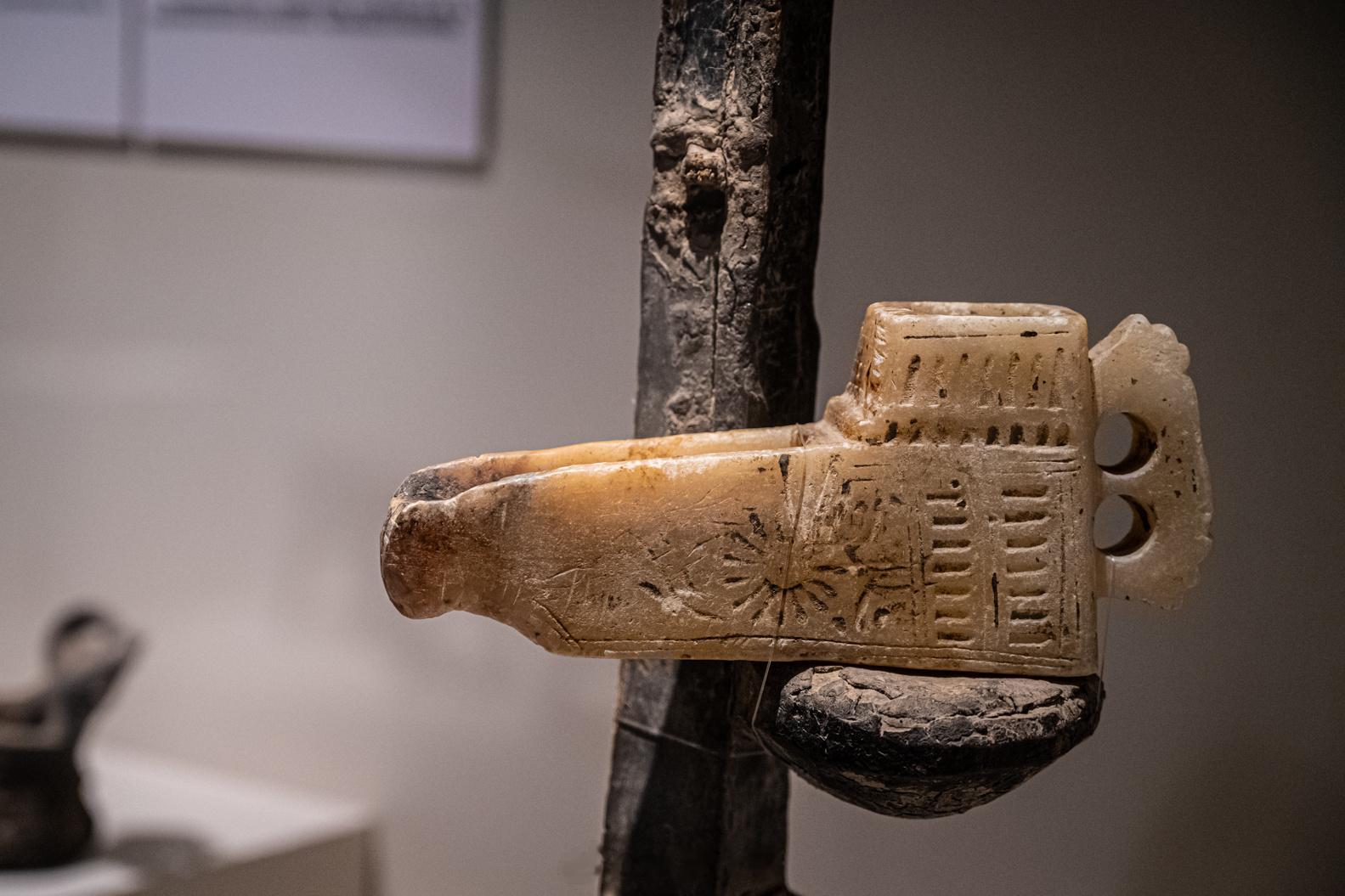 参观和田地区博物馆,从夏至商、周、汉、唐等朝代出土的文物,看历史上中原文化和西域的交流过程。和田地区,古称“于阗”,藏话意思为“产玉石的地方”,出土的这几块玉石,一定是最好的玉石。