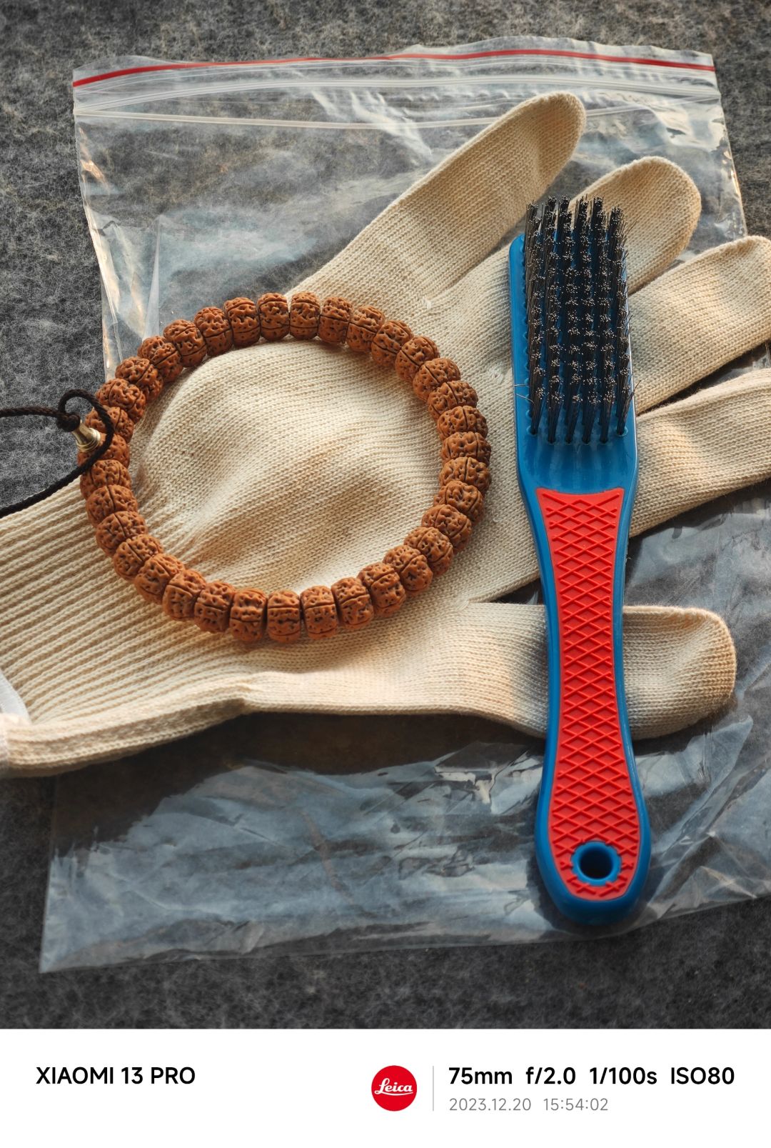 2、配密封袋、手套、钢丝刷,手套很厚实