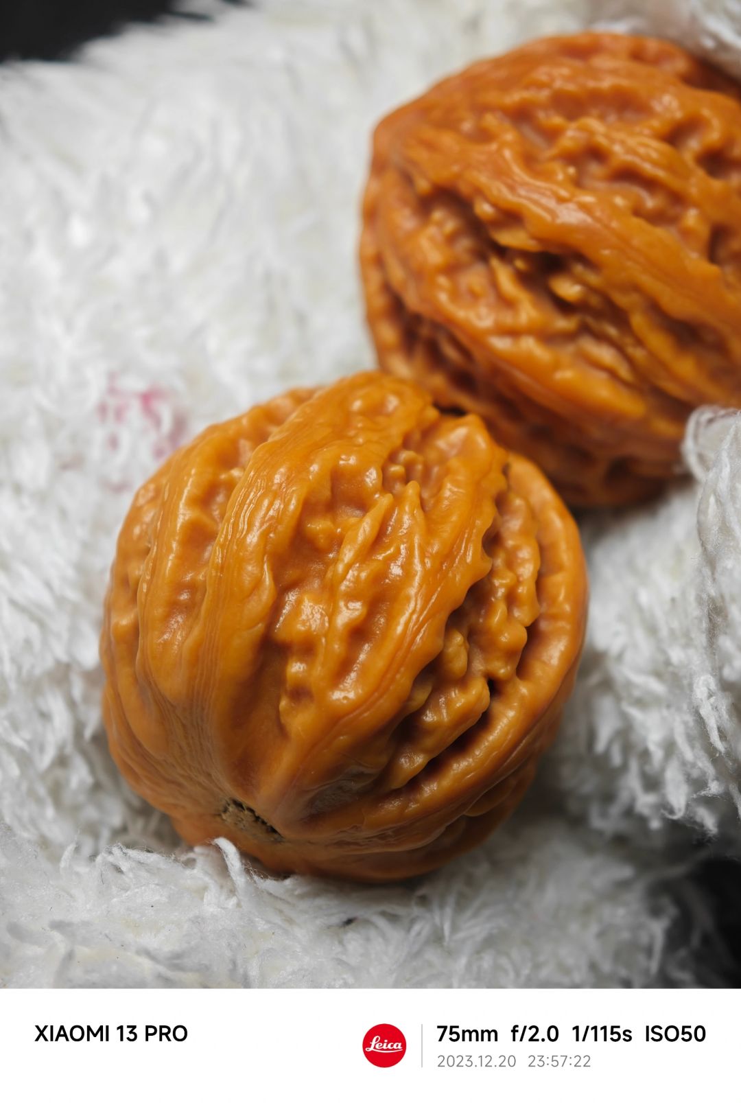 这对小核桃明显是泡药的(药水味儿都冲鼻了),不过目前很多商家小核桃的处理流程当中,大体(不敢说全部)已经带了泡药这个流程,尤其是清理的特别干净的。不过没办法,这是大批量处理最高效的办法了。 整体刷了一会,目前很是光溜,西瓜纹,圆滚滚,手感不错,感觉能红[大笑R] 挑战每天盘核桃一分钟,一年能不能红~